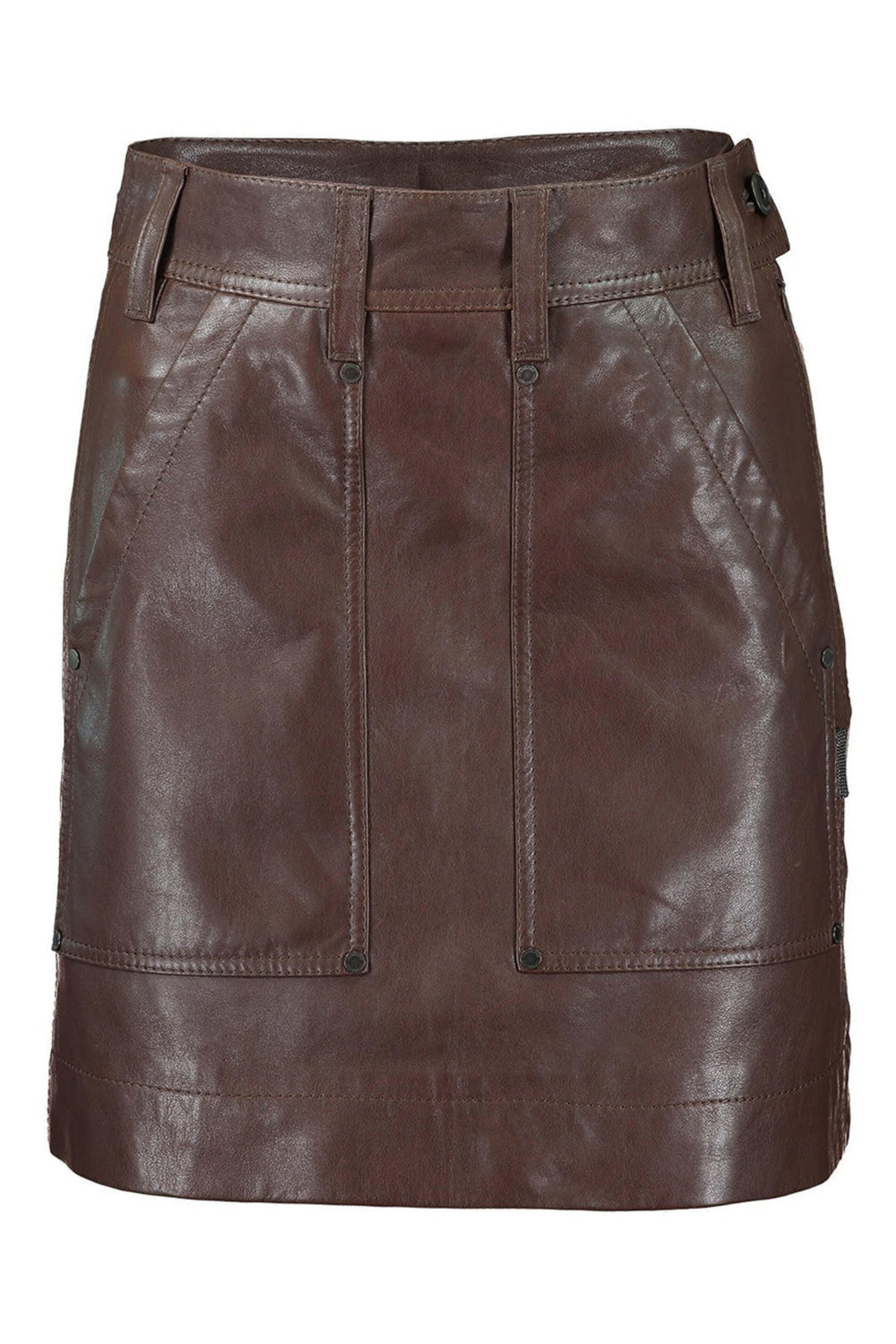- Brunello Cucinelli Brown Leather Patch Pocket Mini Skirt