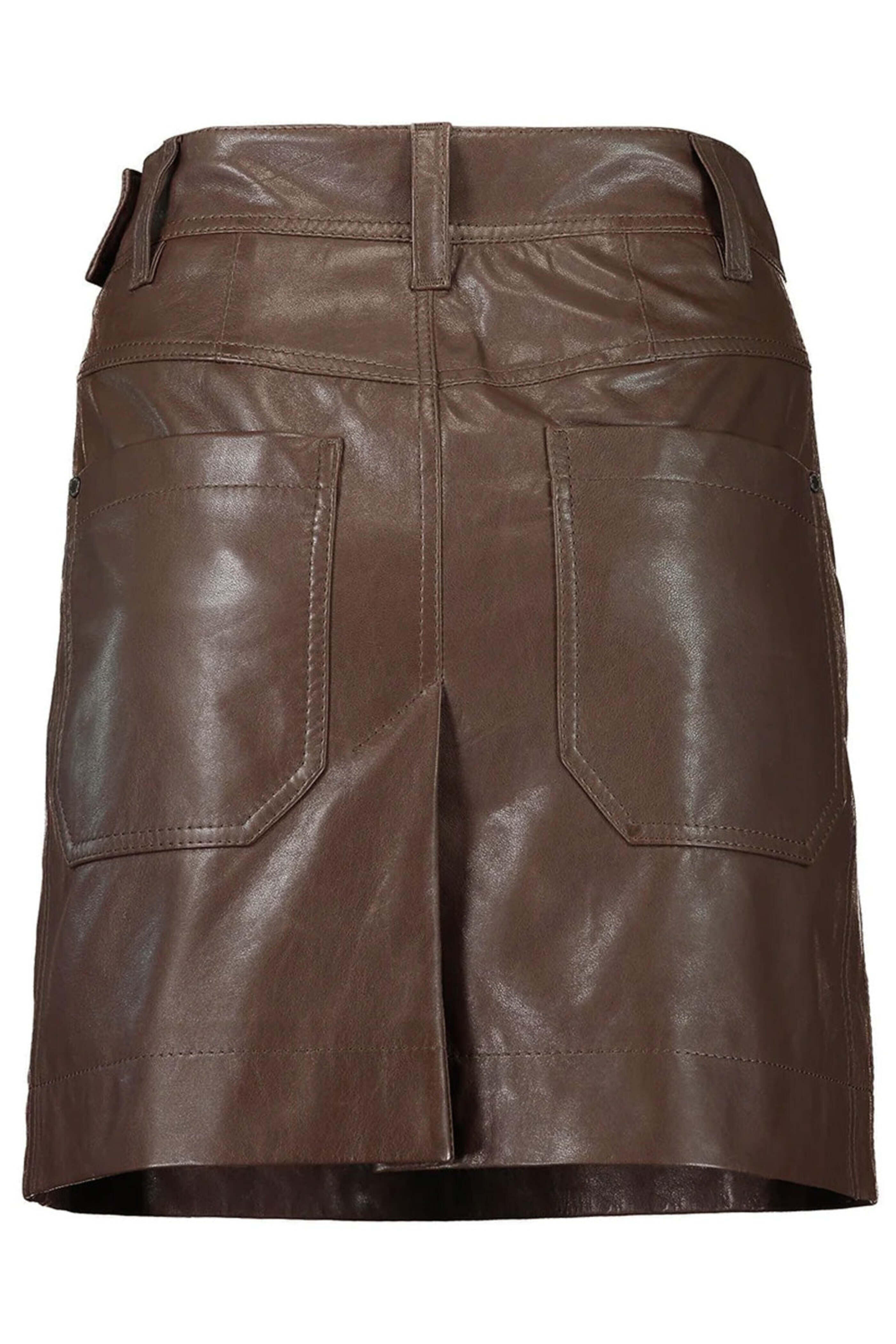 Brown Leather Patch Pocket Mini Skirt