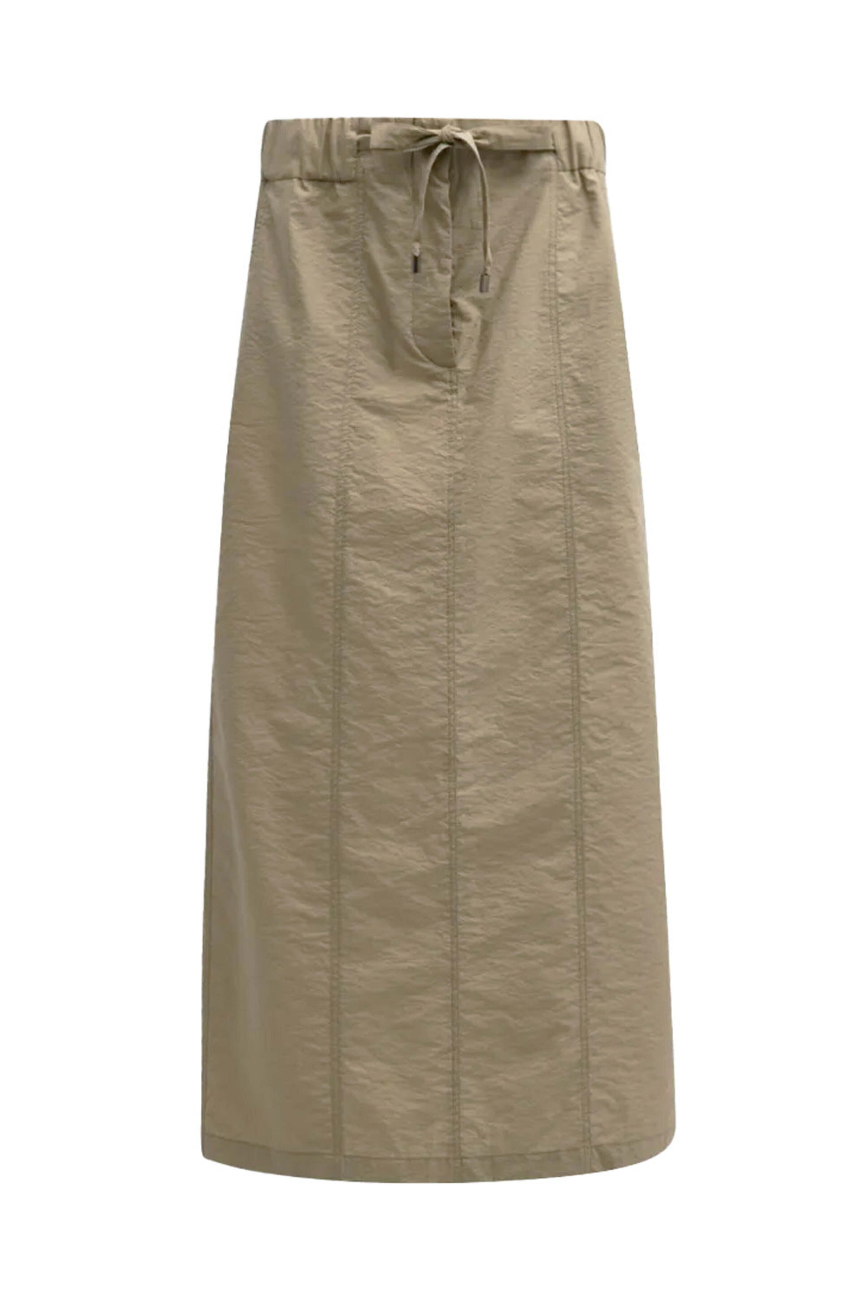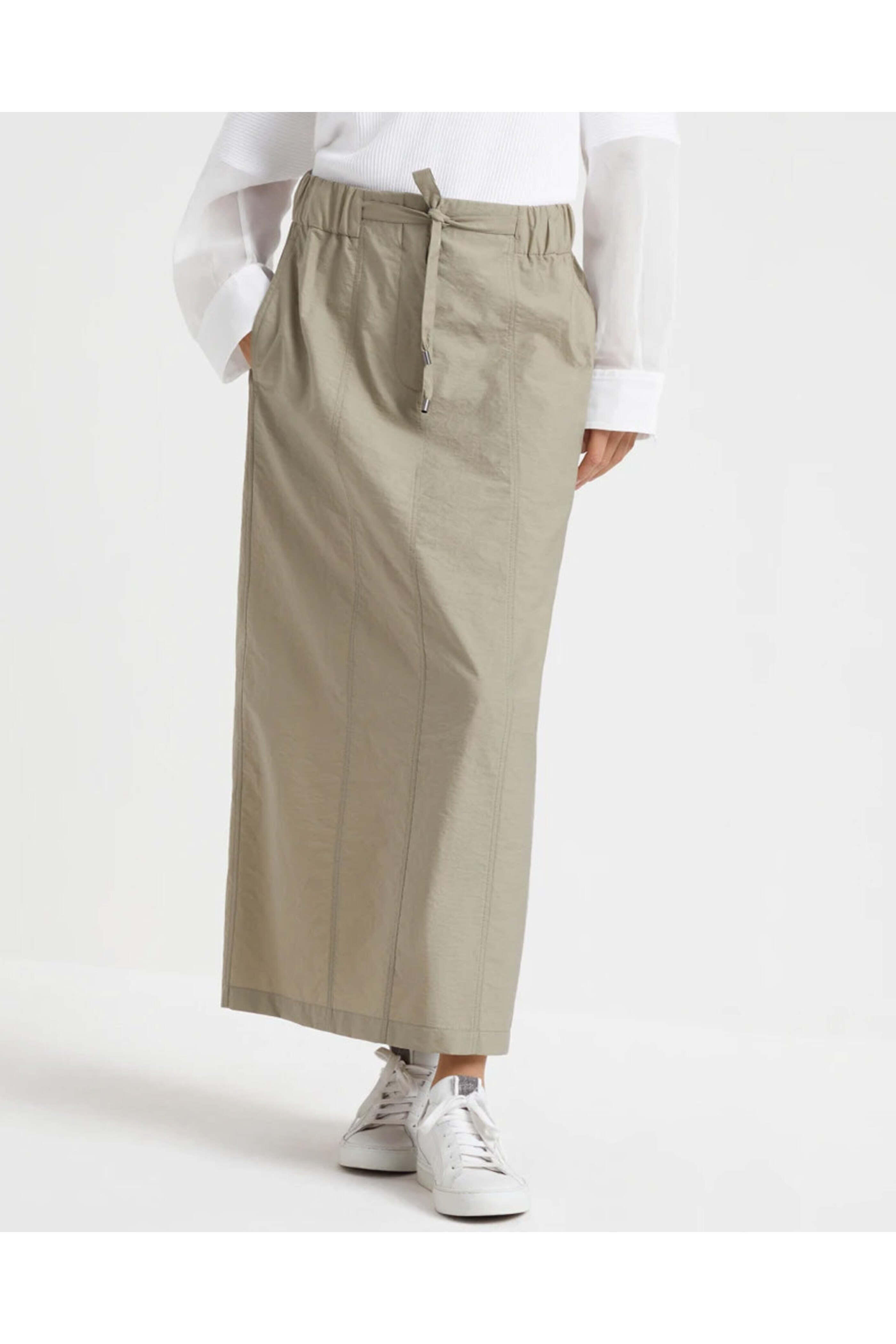 - Brunello Cucinelli Olive Techno Poplin Drawstring Skirt