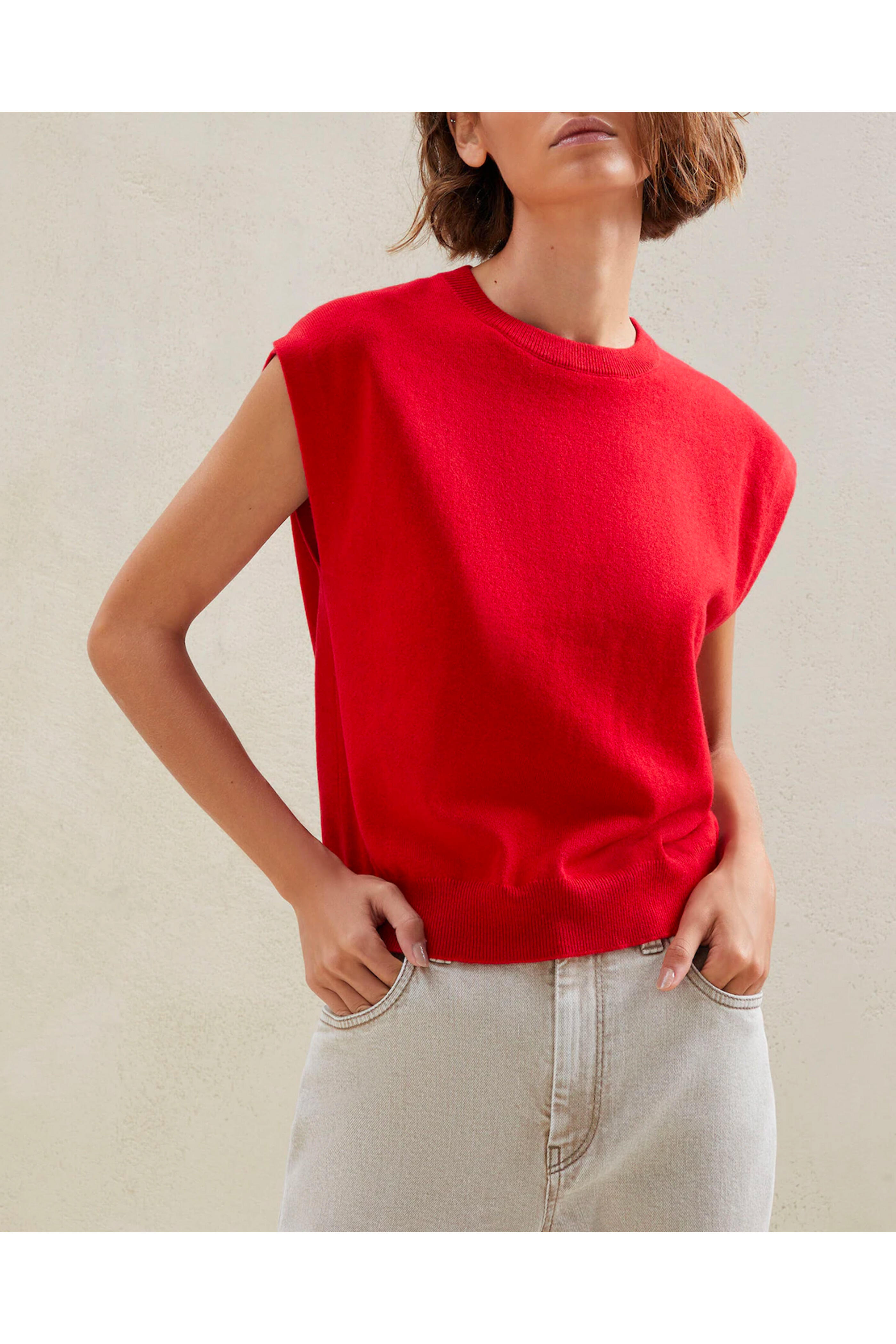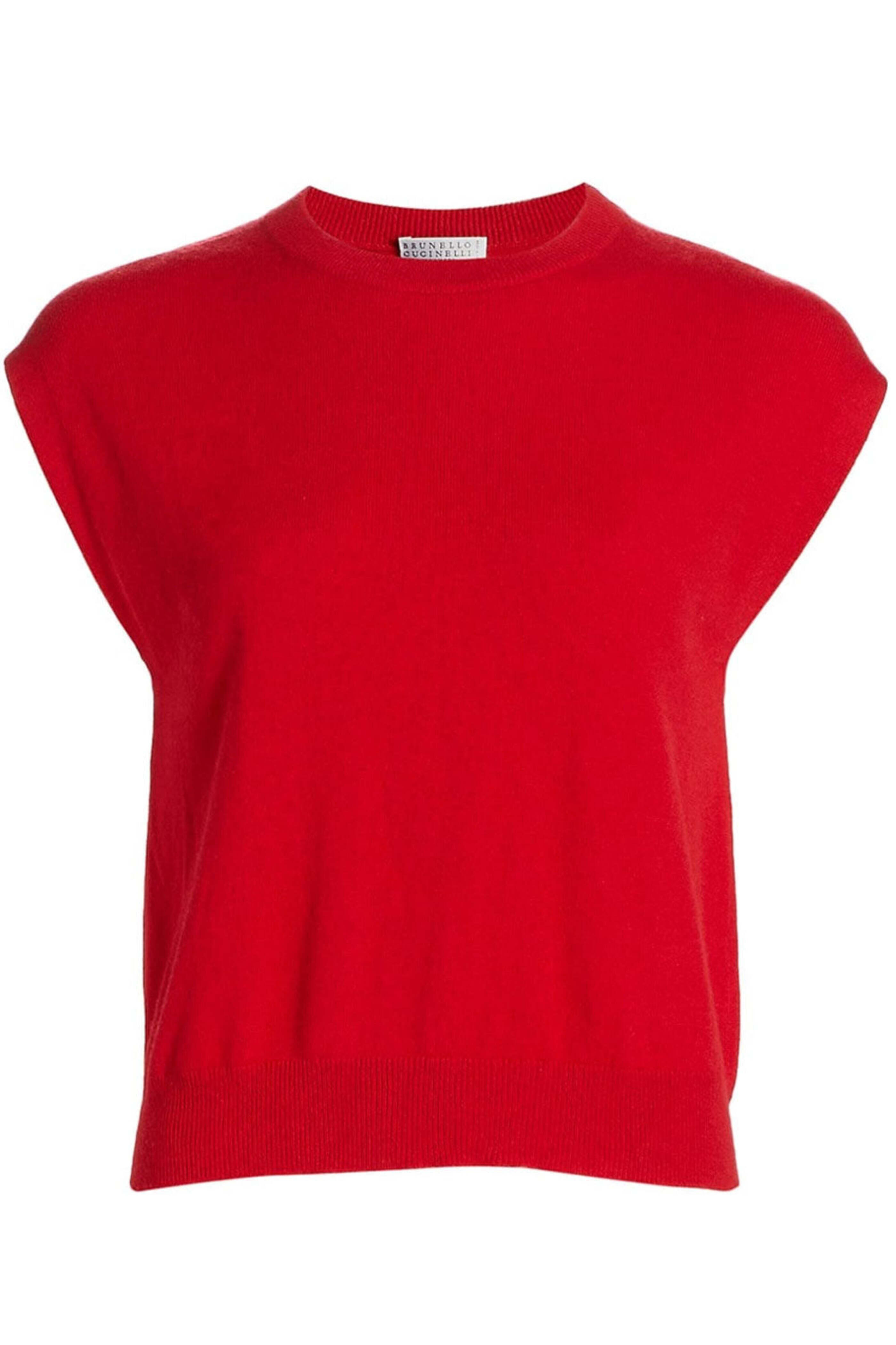 - Brunello Cucinelli Chili Red Cashmere Cap Sleeve Pullover