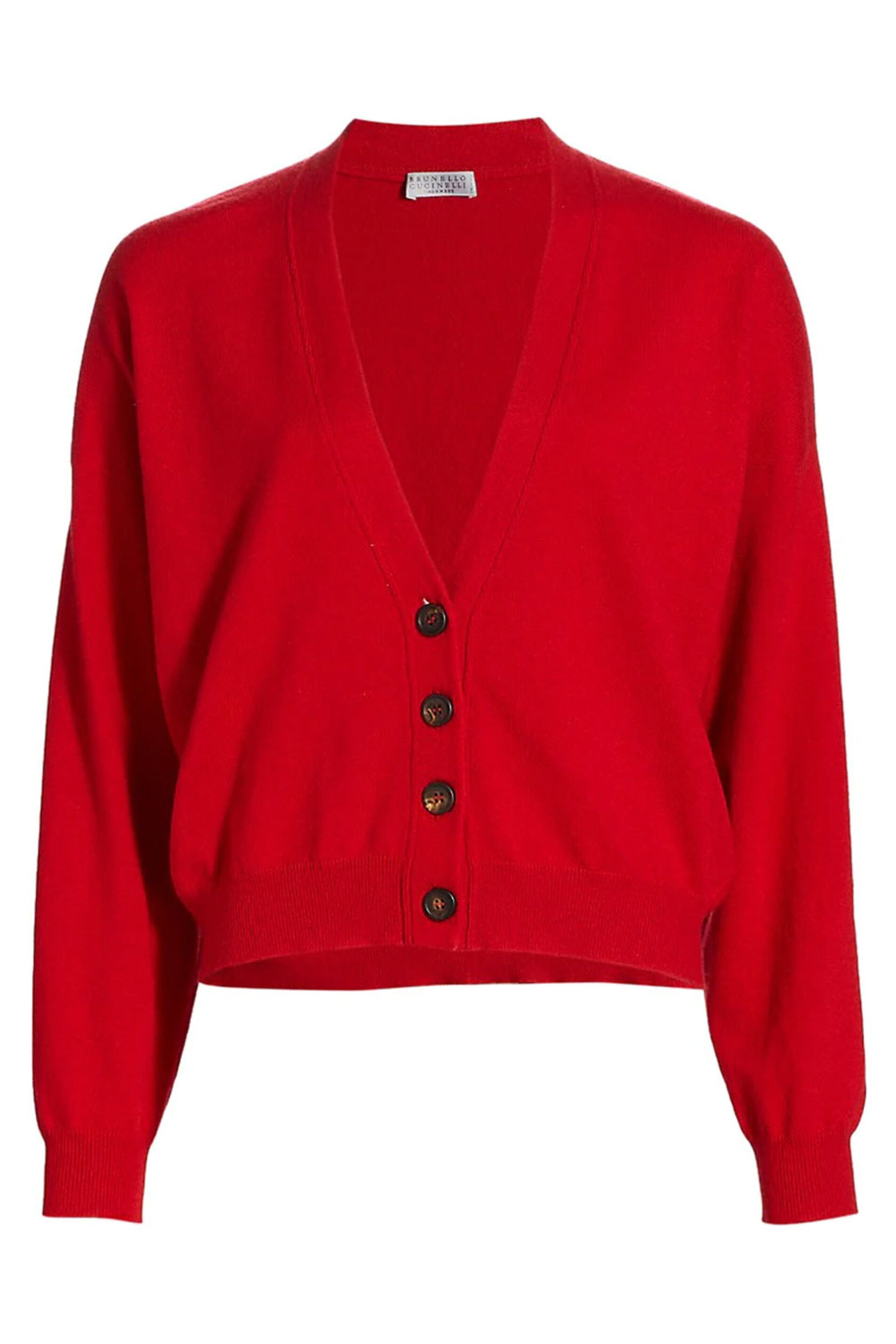 - Brunello Cucinelli Chili Red Cashmere Button Front Cardigan