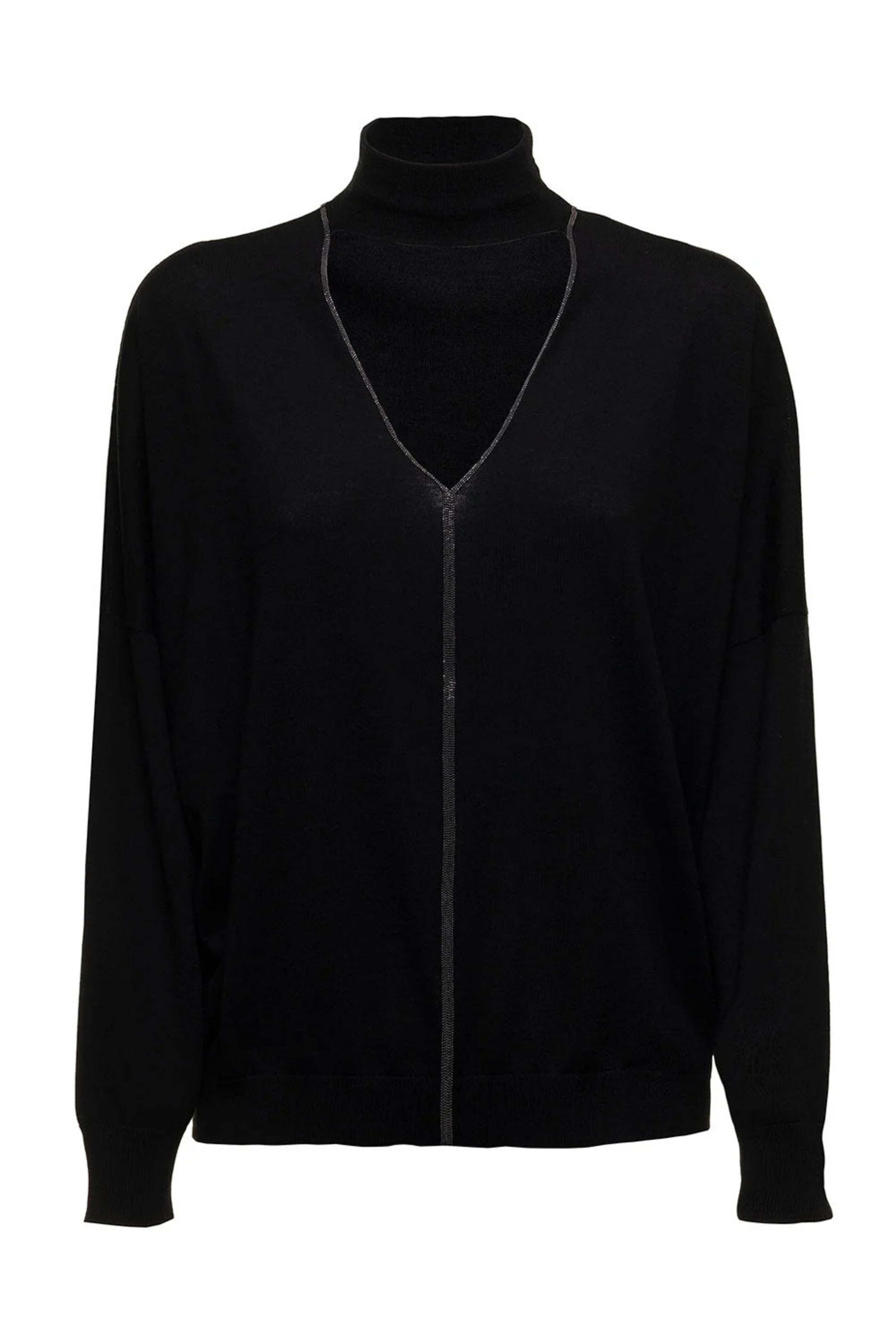 - Brunello Cucinelli Black Monili Open V Turtleneck Sweater