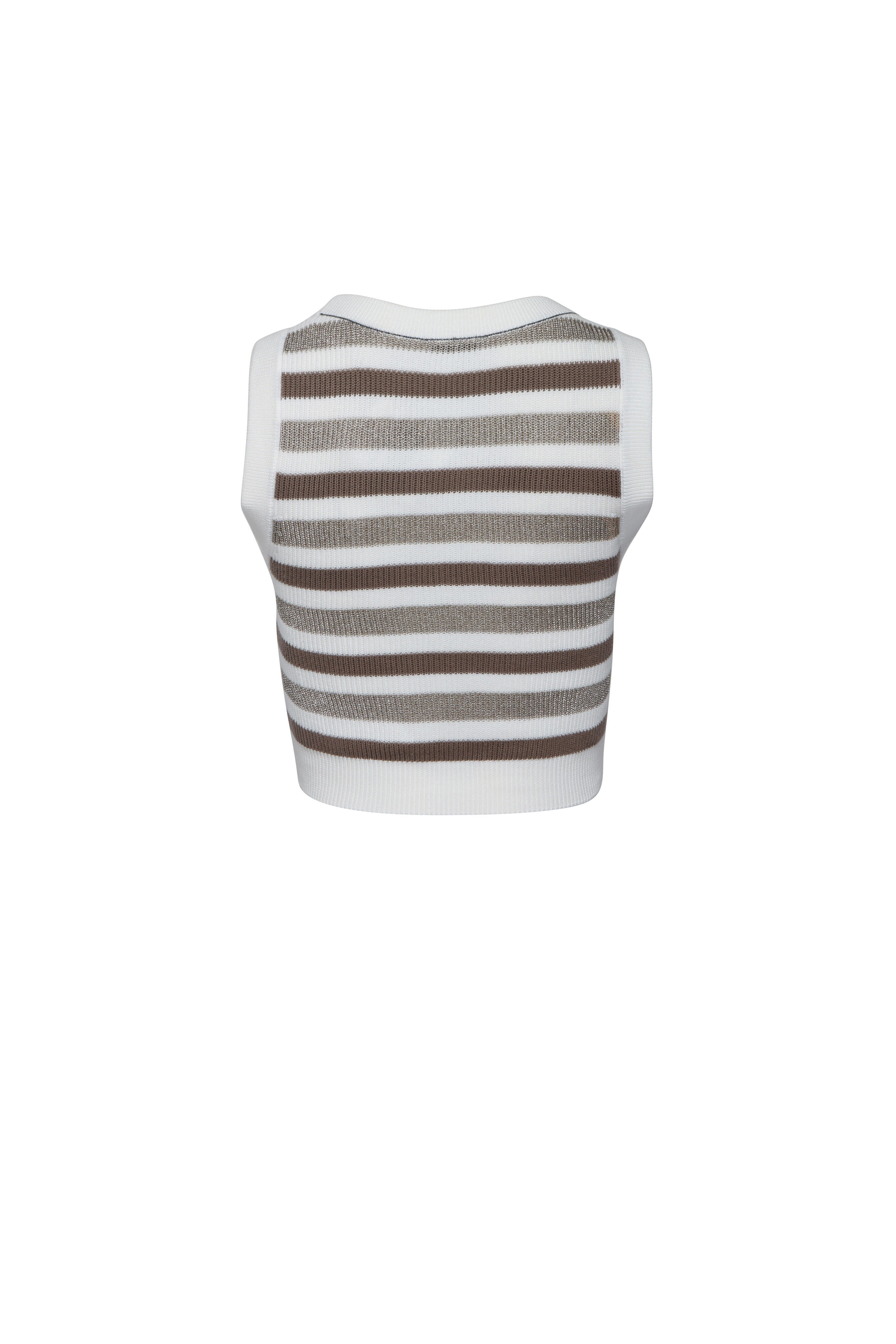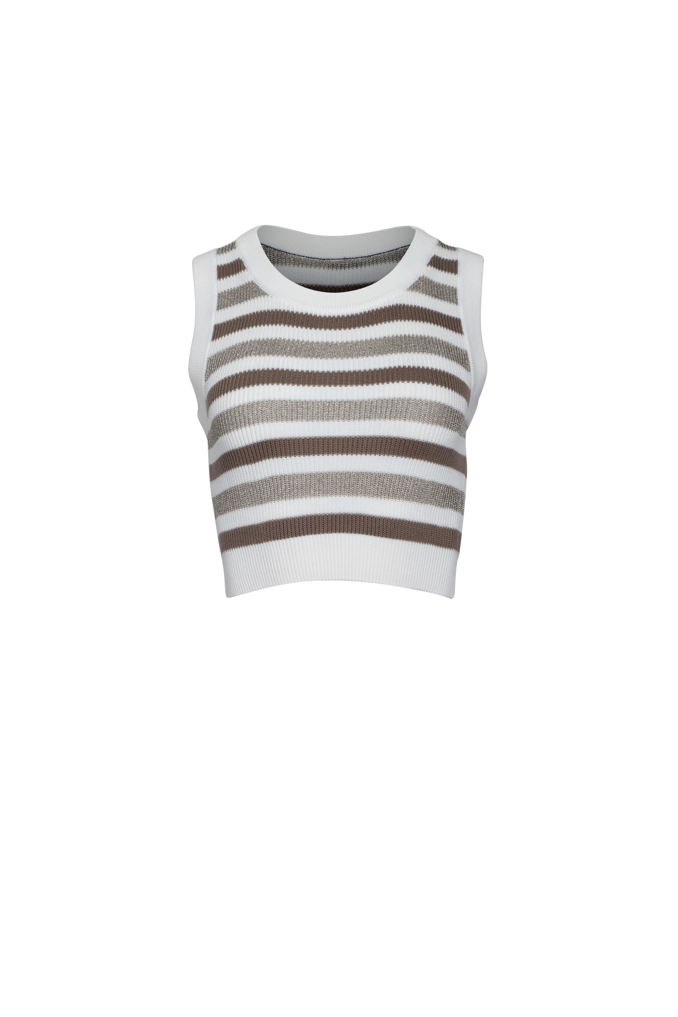 Round neck. Sleeveless. Slim silhouette. Rib throughout. Made in Italy. Cropped length. 100% cotton. Dry clean.
