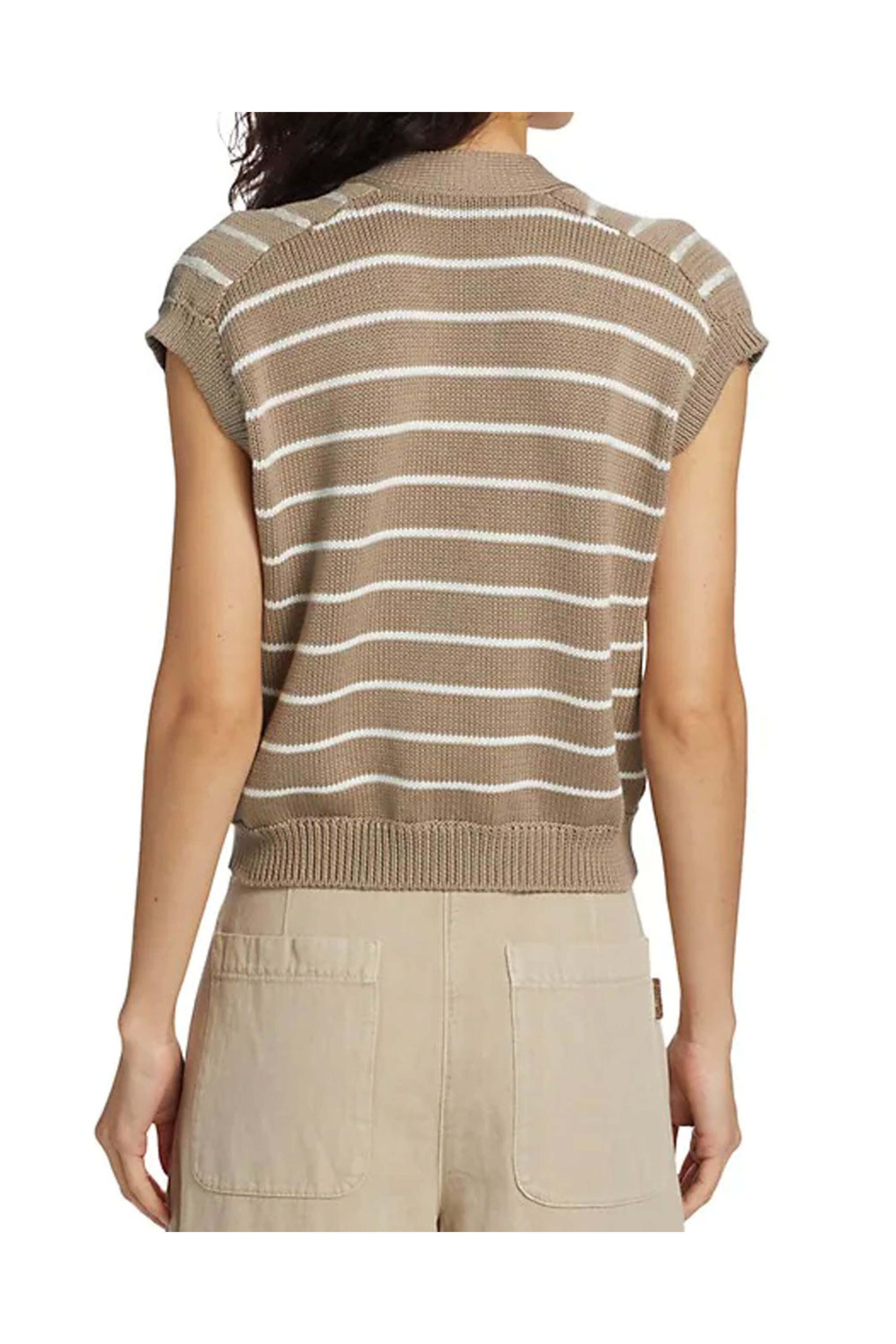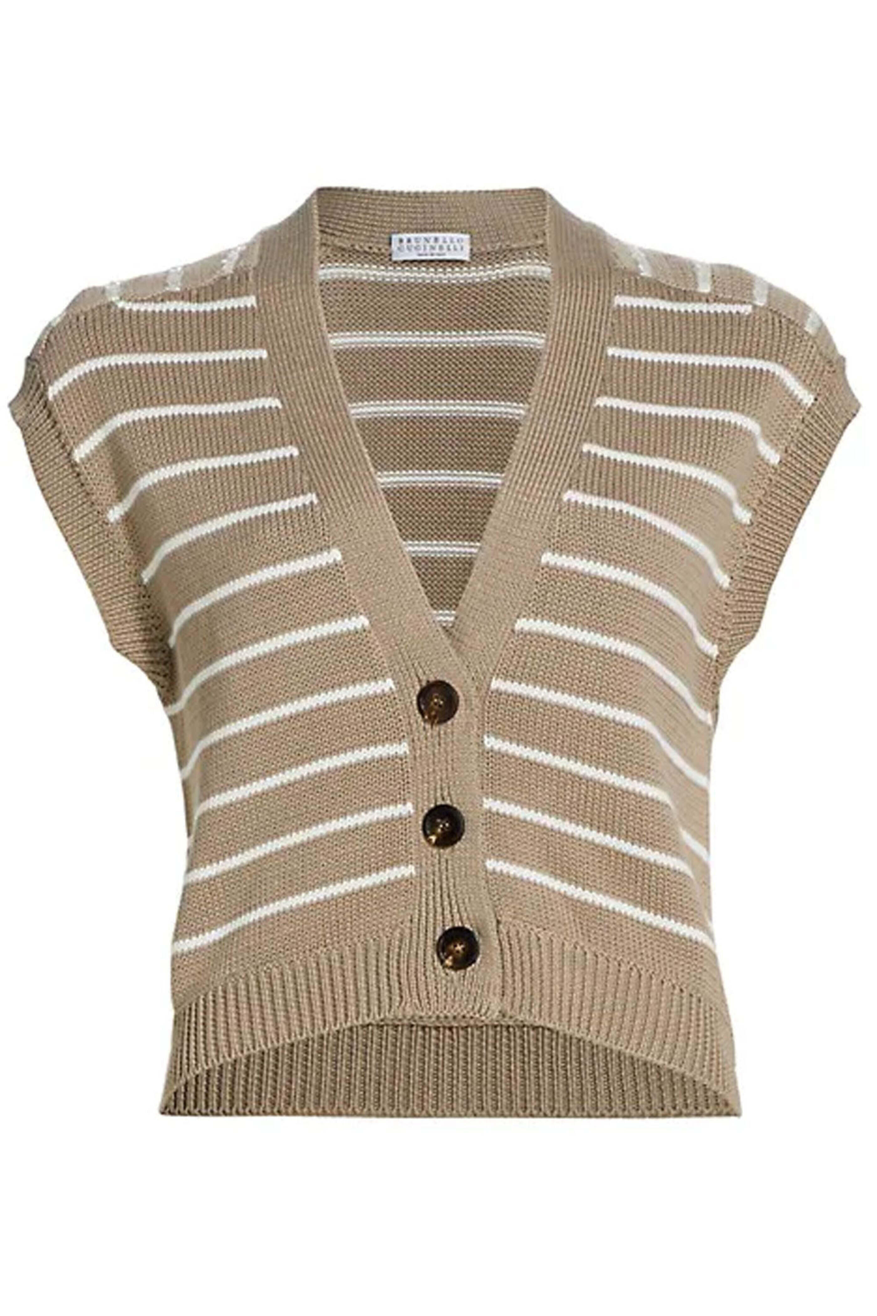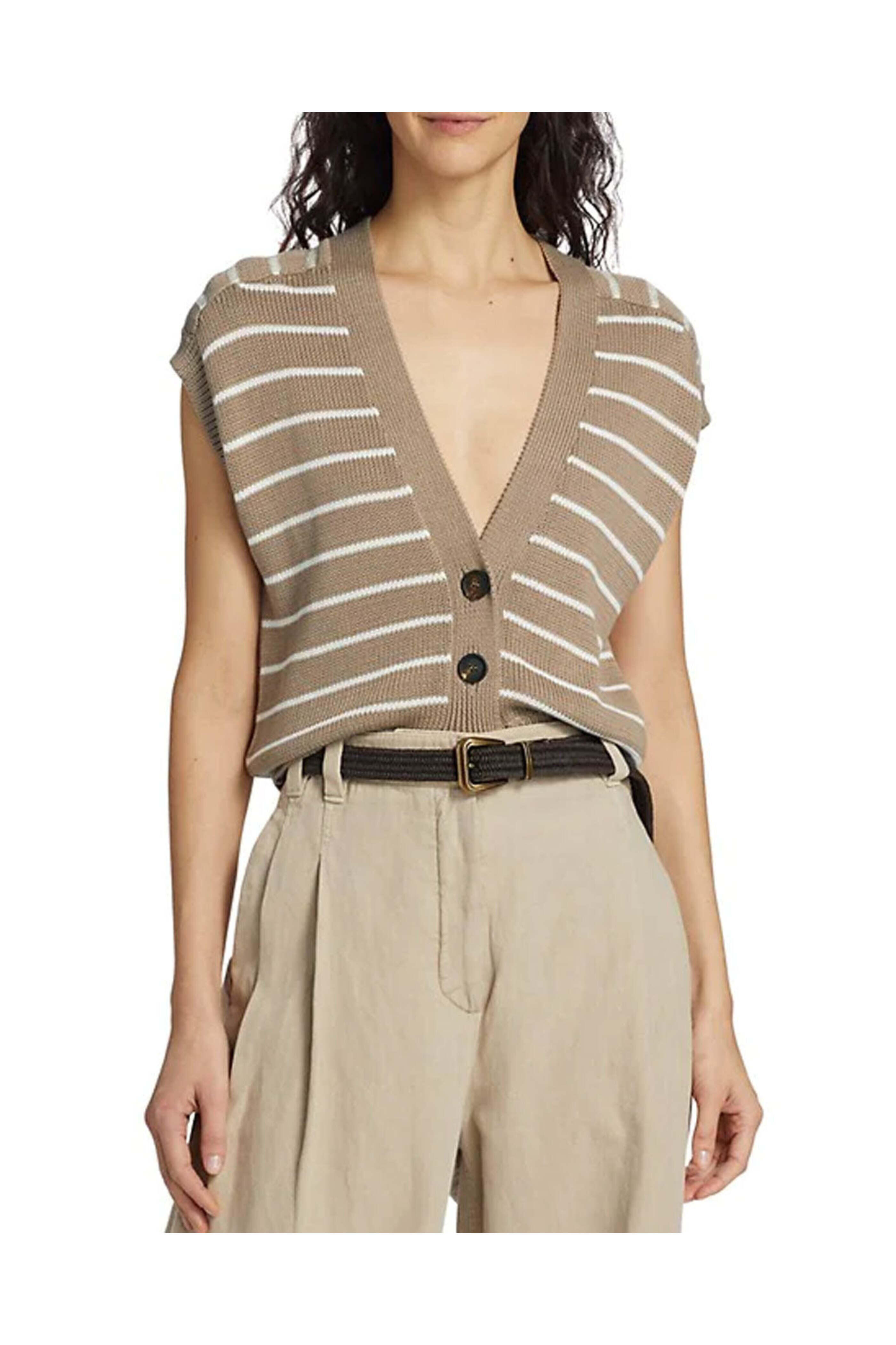 - Brunello Cucinelli Nutmeg and White Stripe Cap Sleeve Cardigan