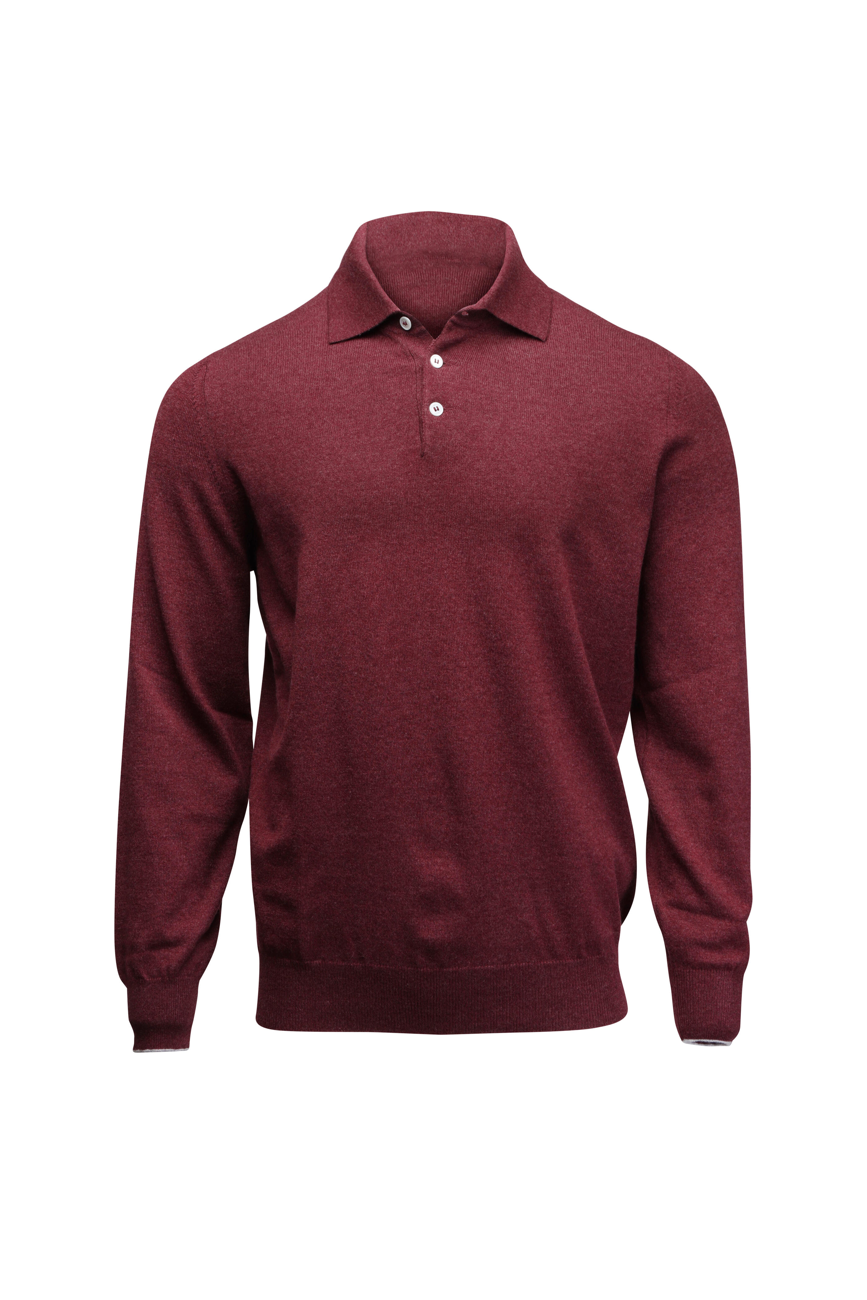 Spread collar. Three button placket. Ribbed trims. Made in Italy. 100% cashmere. Dry clean.