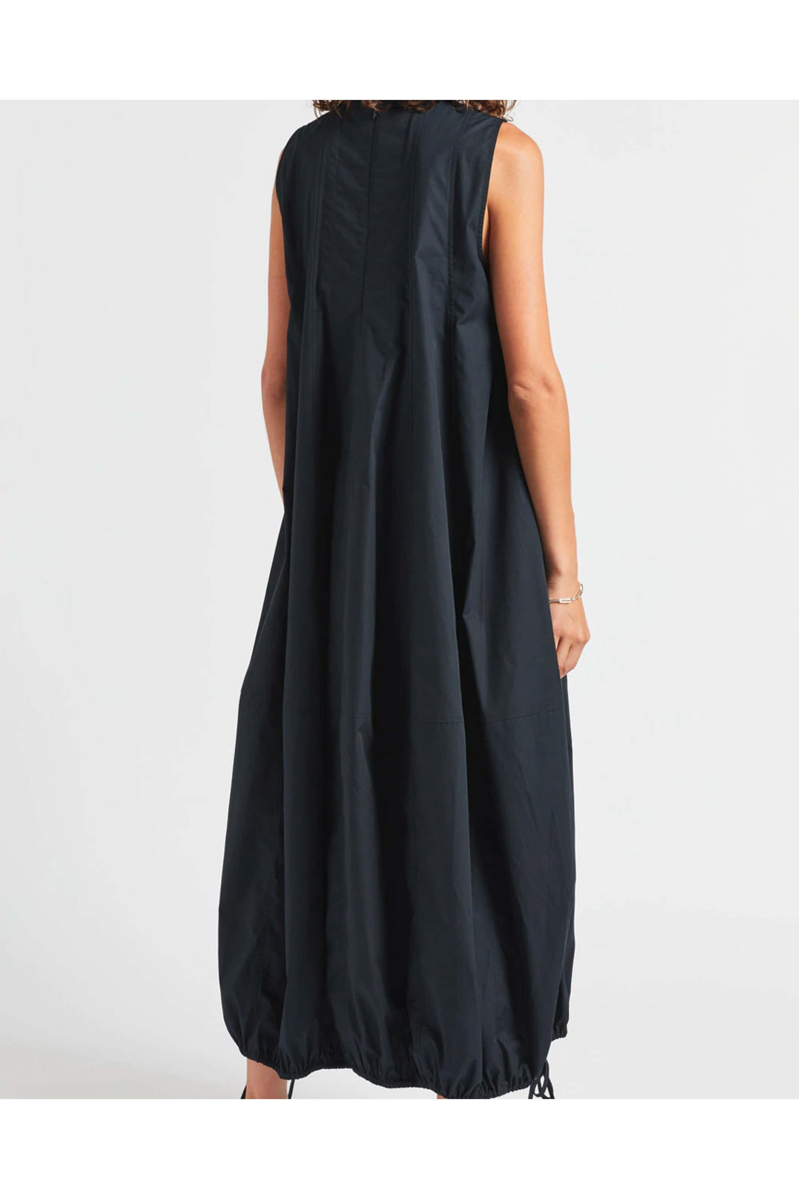 Lee Mathews Black Frankie Tank Dress. Crew neckline. Sleeveless. Maxi length. Bubble hemline with drawstring. Soft balloon silhouette. Relaxed fit. 100% cotton.
