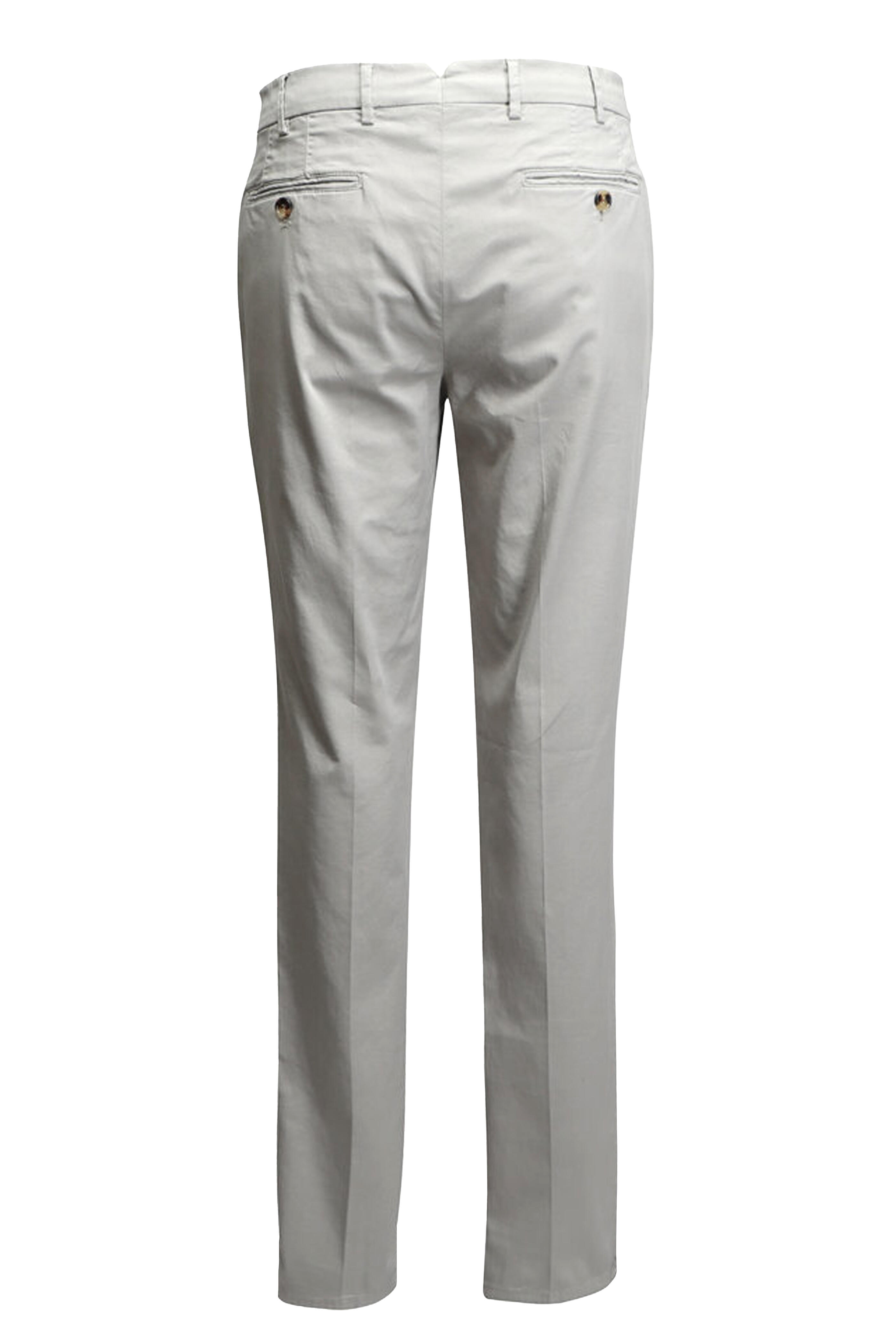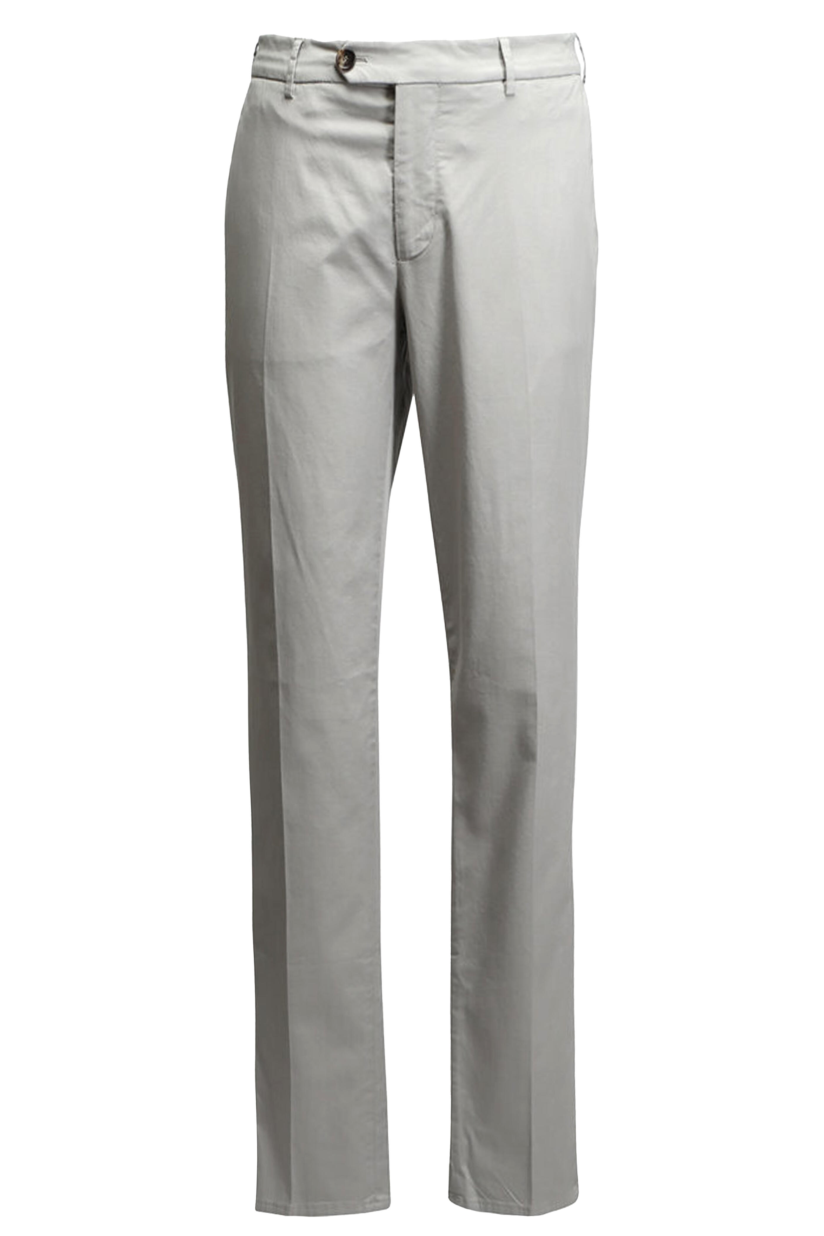 Zip fly; button tab closure. Banded waist; belt loops. Side slip pockets; back welt pockets. Straight hem. Made in Italy. 97% cotton, 3% elastane. Machine wash.