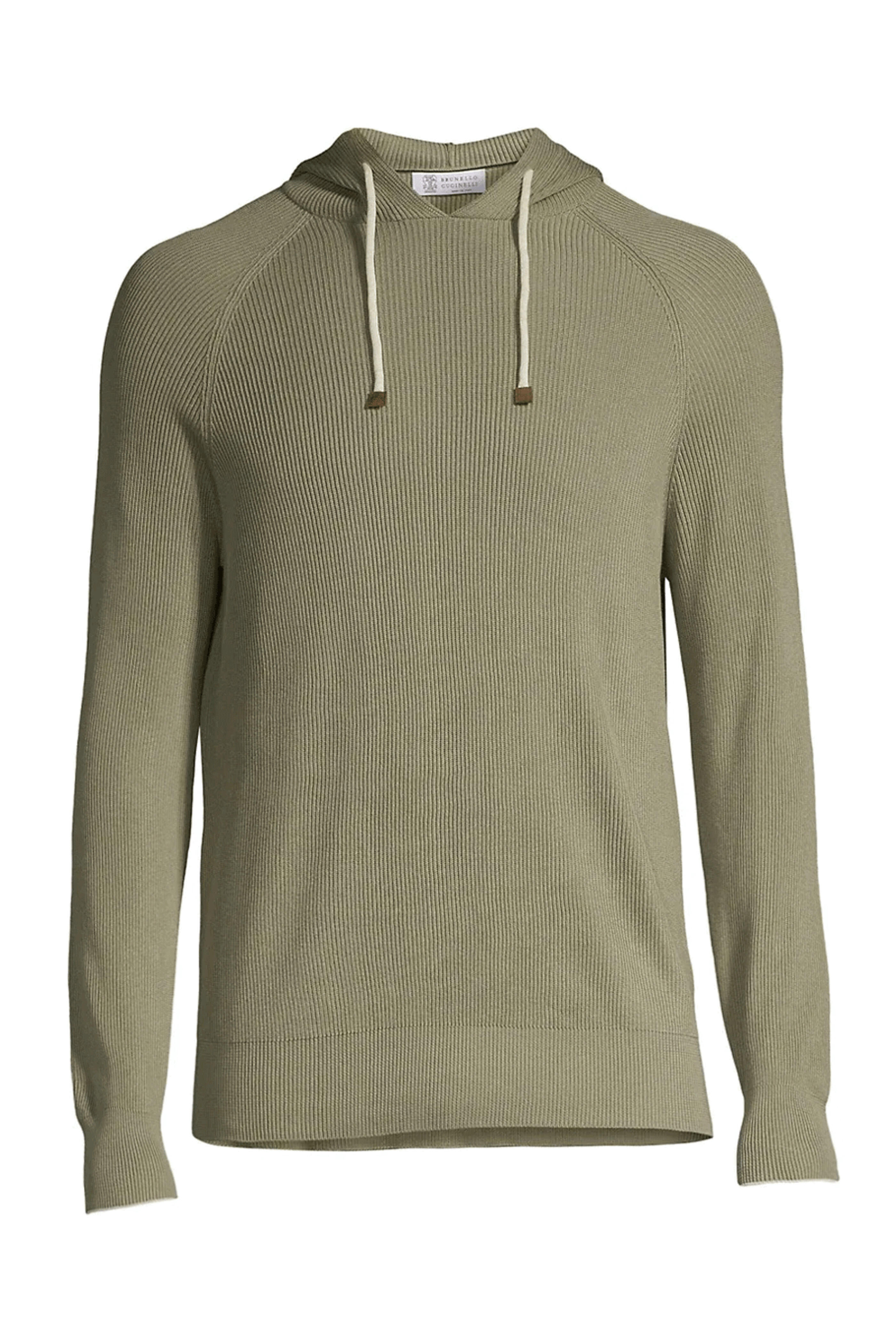 - Brunello Cucinelli Sage Green Ribbed Cotton Hooded Sweater