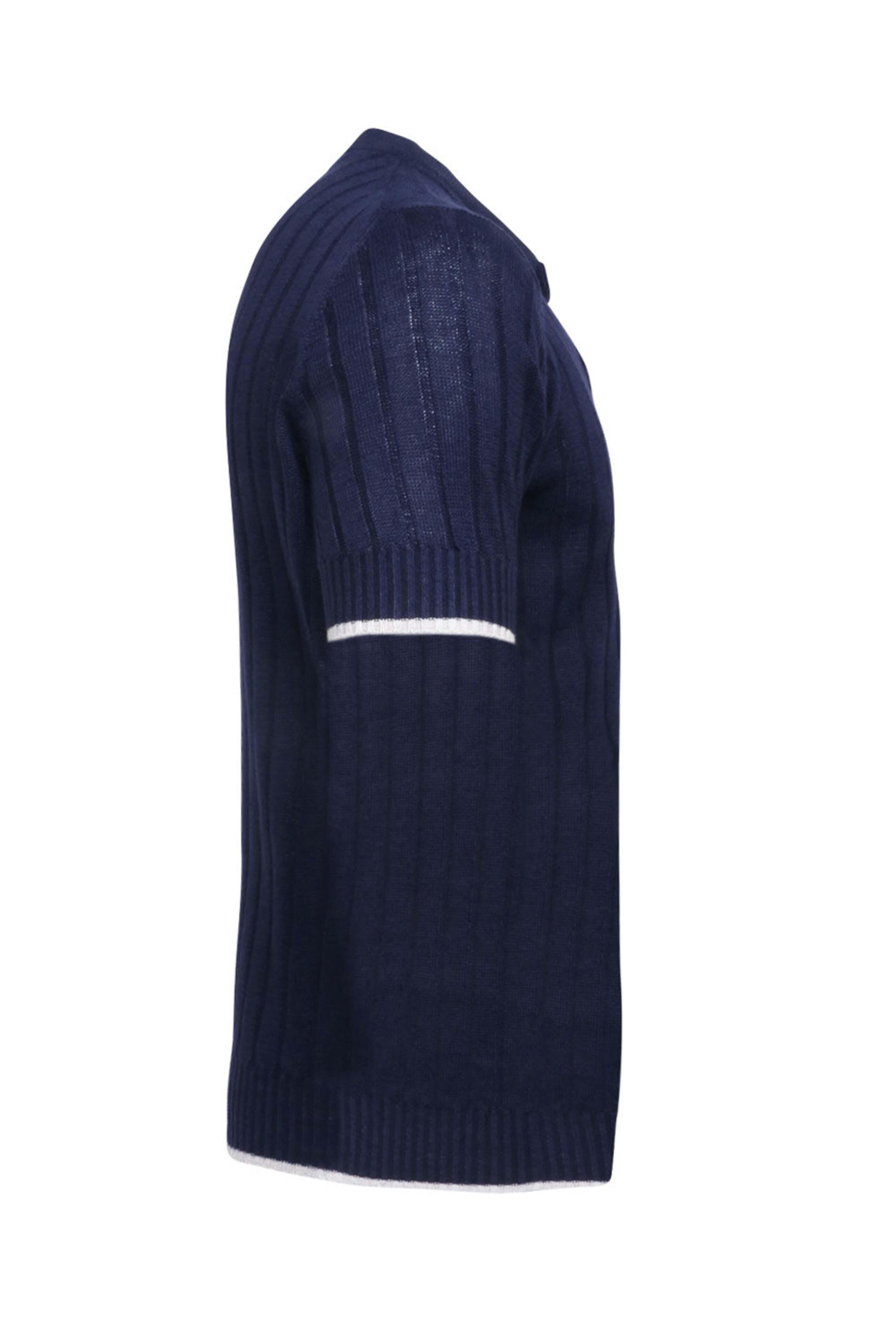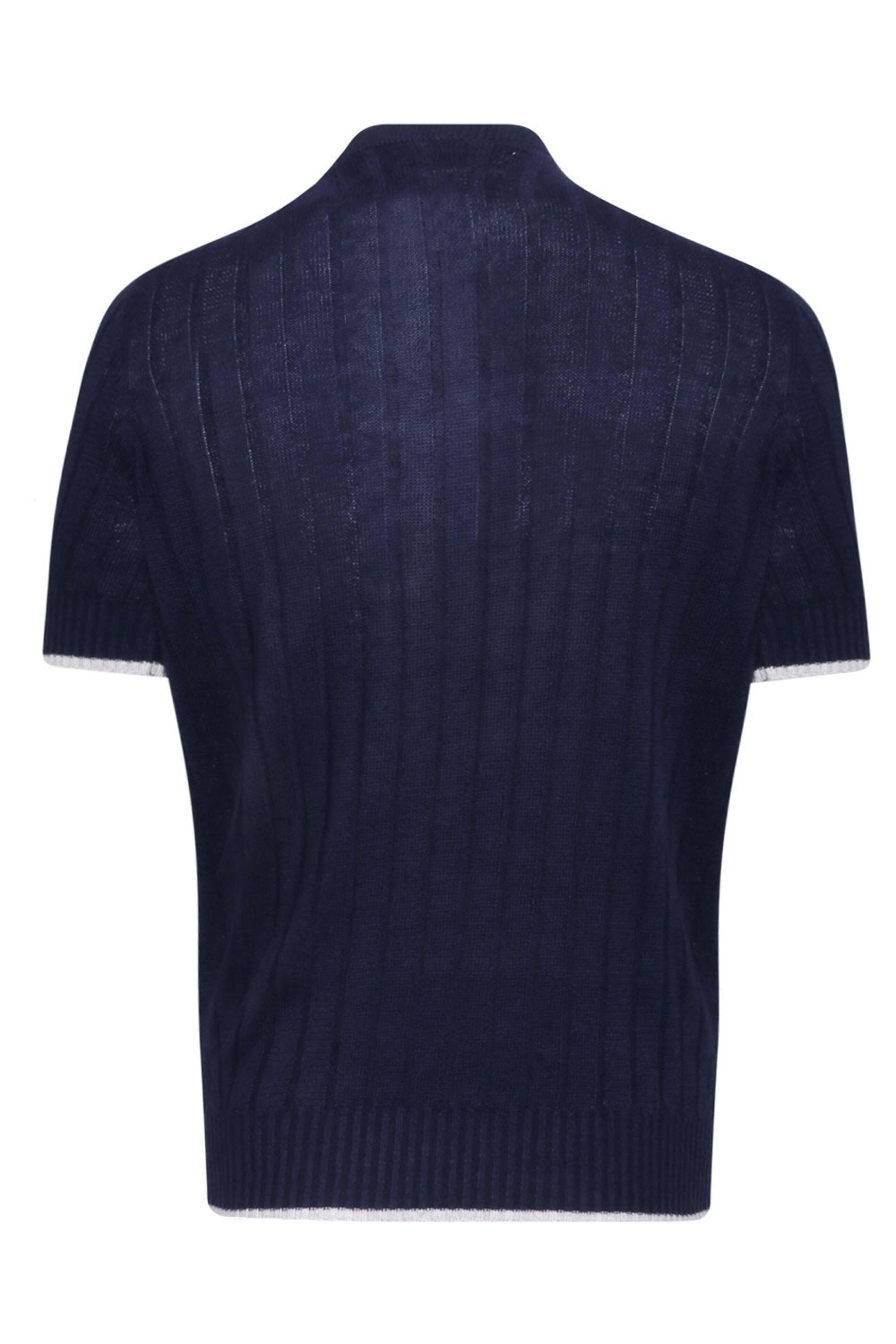 - Brunello Cucinelli Navy Henley Knit Short Sleeve