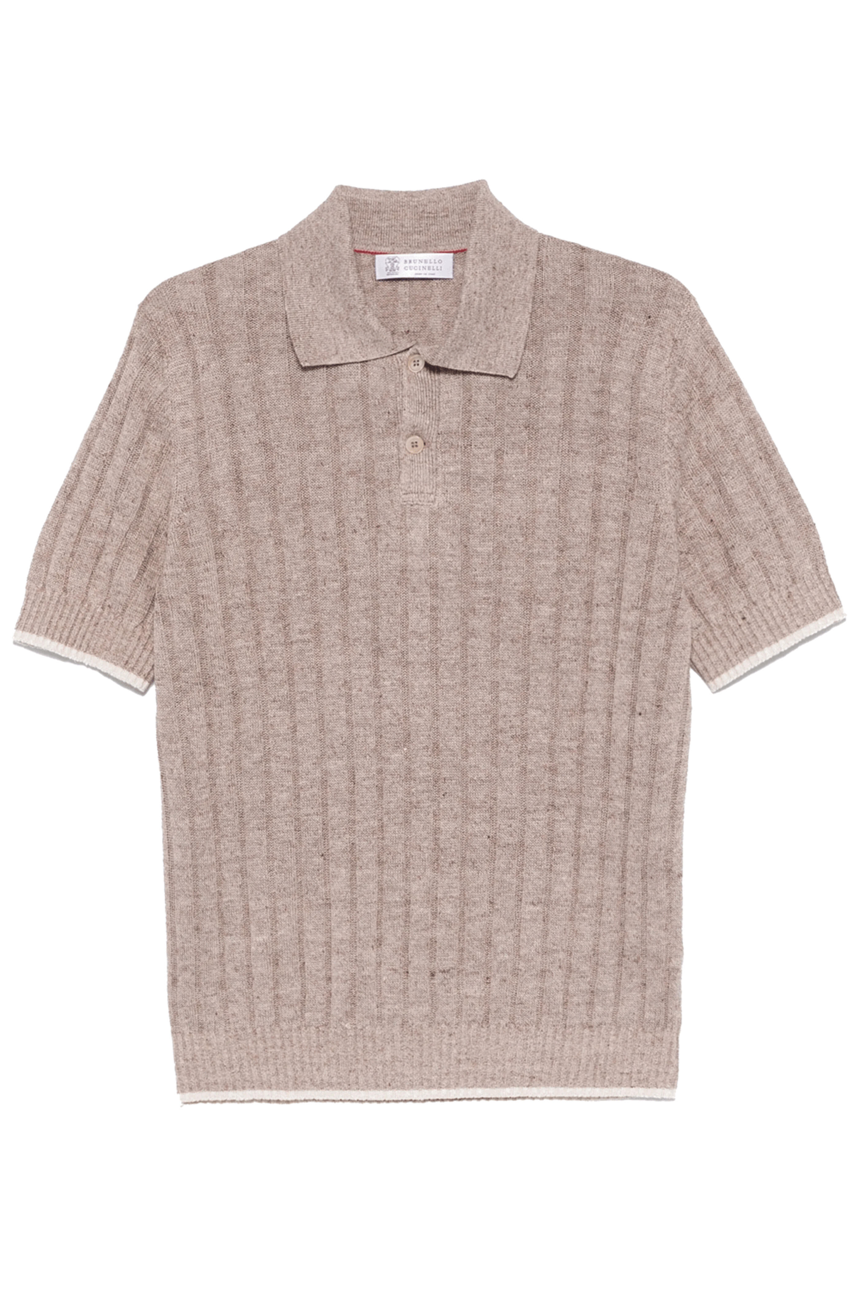 Brunello Cucinelli Bark Knit Polo. Spread collar. Two button placket. Short sleeves. Rib knit . Pullover style. Made in Italy . 77% linen, 23% cotton.