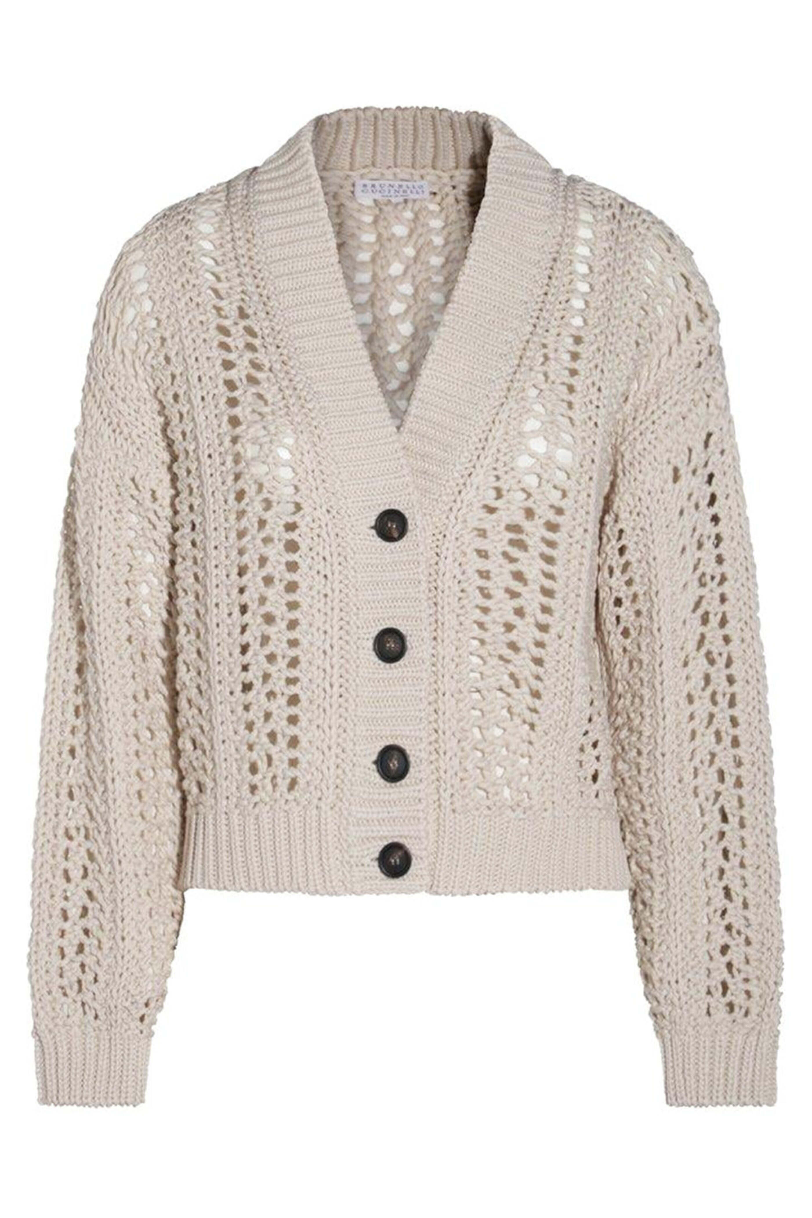 - Brunello Cucinelli White Beige V Neck Cardigan