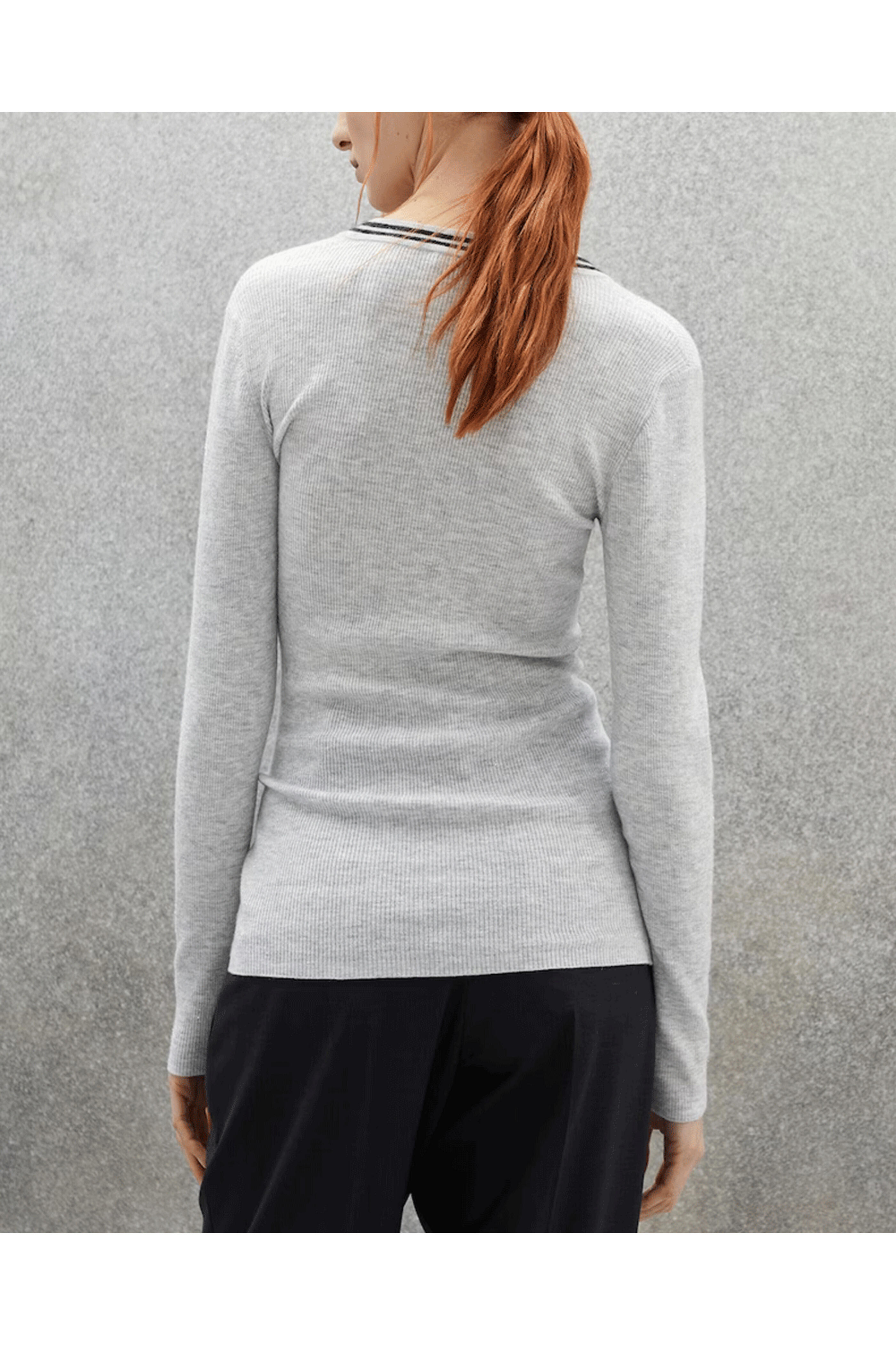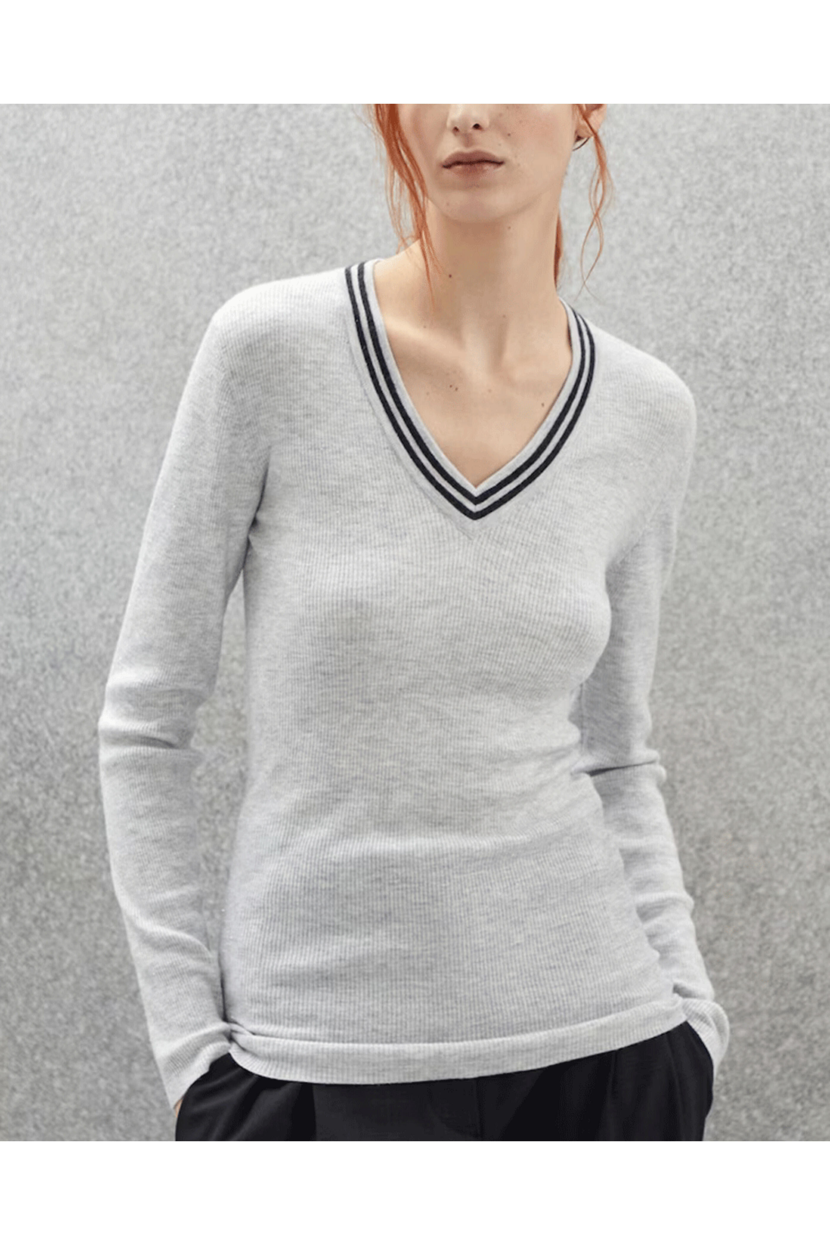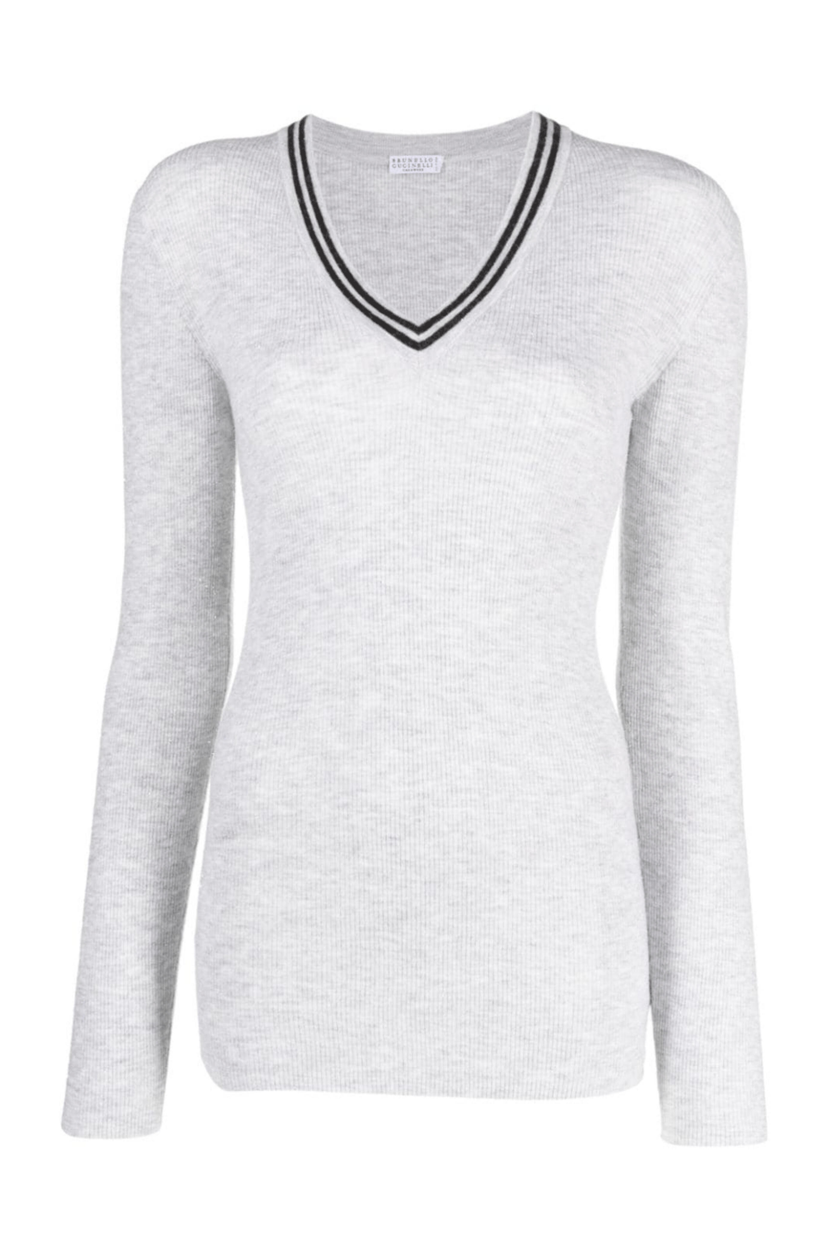 - Brunello Cucinelli Pebble Cashmere Silk Ribbed V Neck Sweater