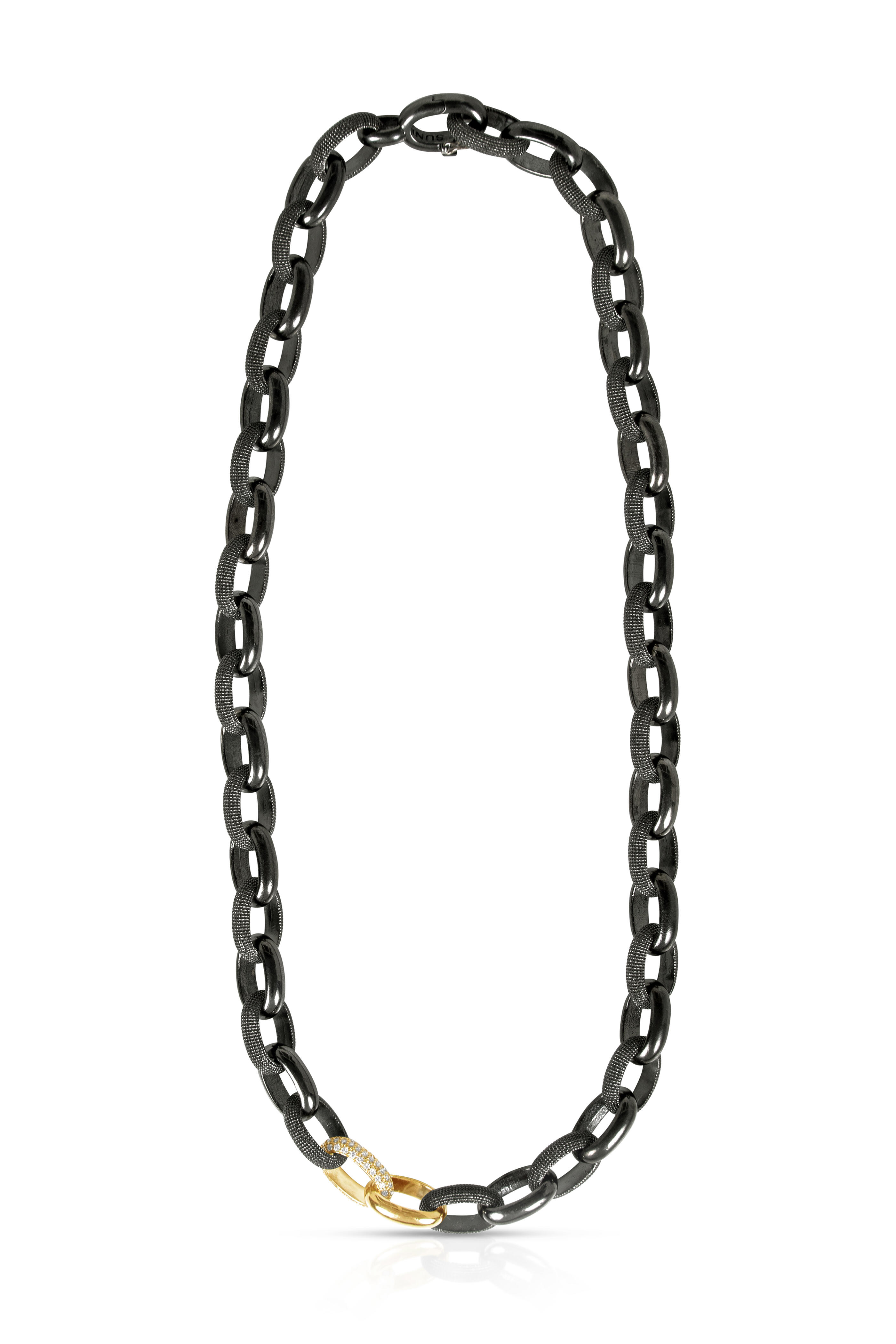 14k gold. 14k white gold. Sterling silver. Diamond 1.00 total carat weight. Alternating textured and brushed metal links. Single diamond link. Three gold links. Link clasps with locks. Handcrafted in L.A.