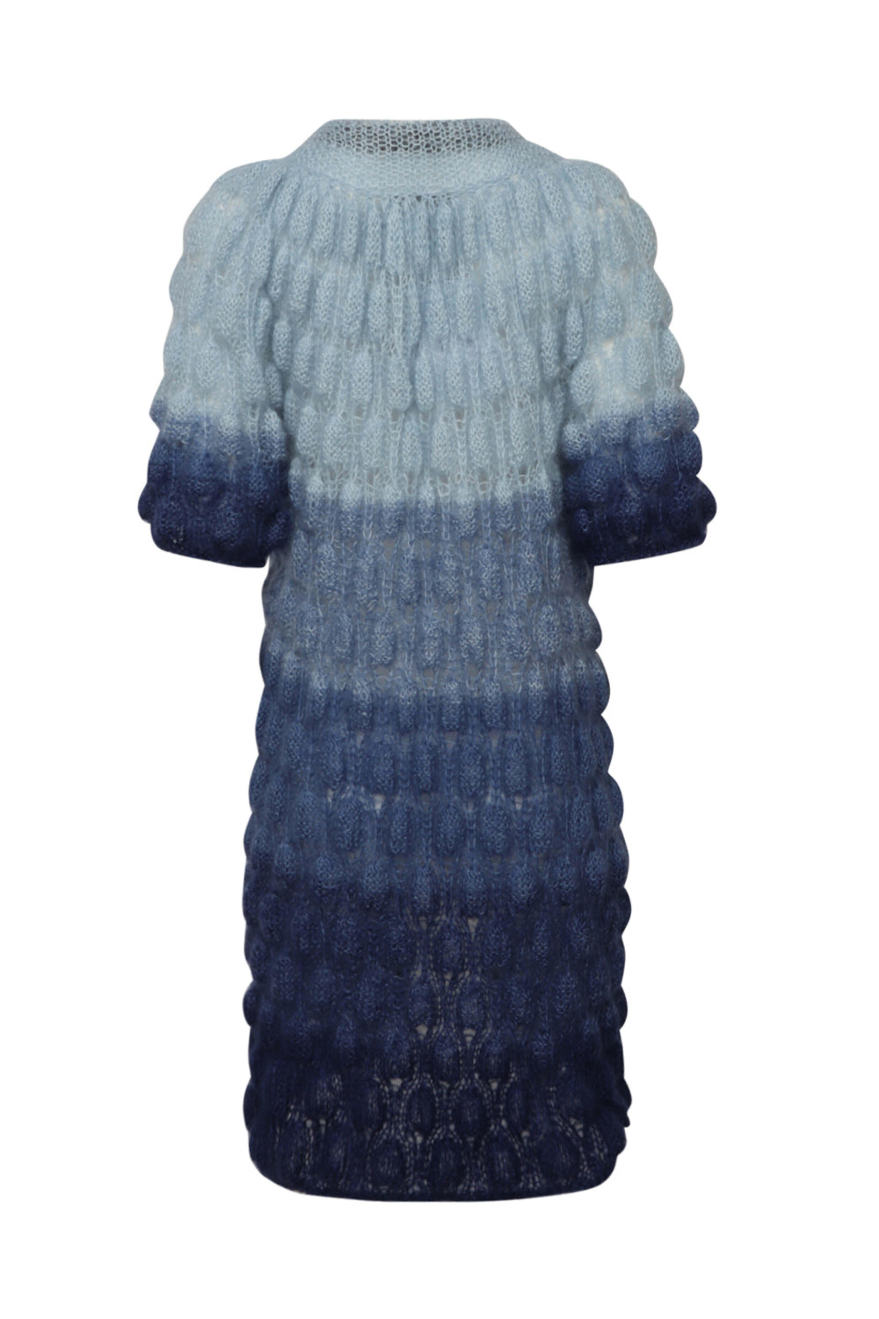 Self-tie bow closure at neck. Elbow length dolman sleeves. Long length. Handmade. 75% baby mohair, 25% silk.
