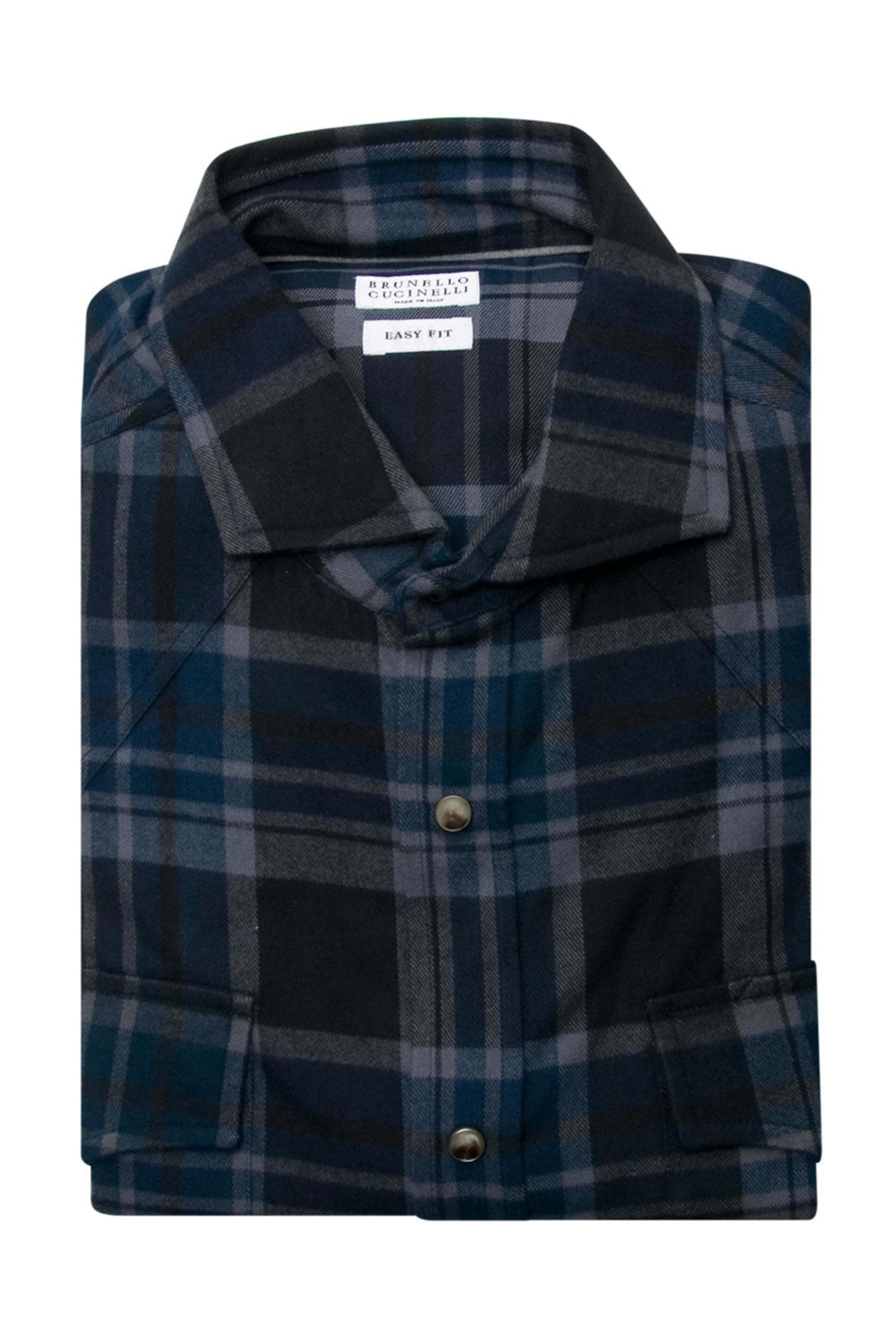 - Brunello Cucinelli Blue and Grey Plaid Flannel Sport Shirt