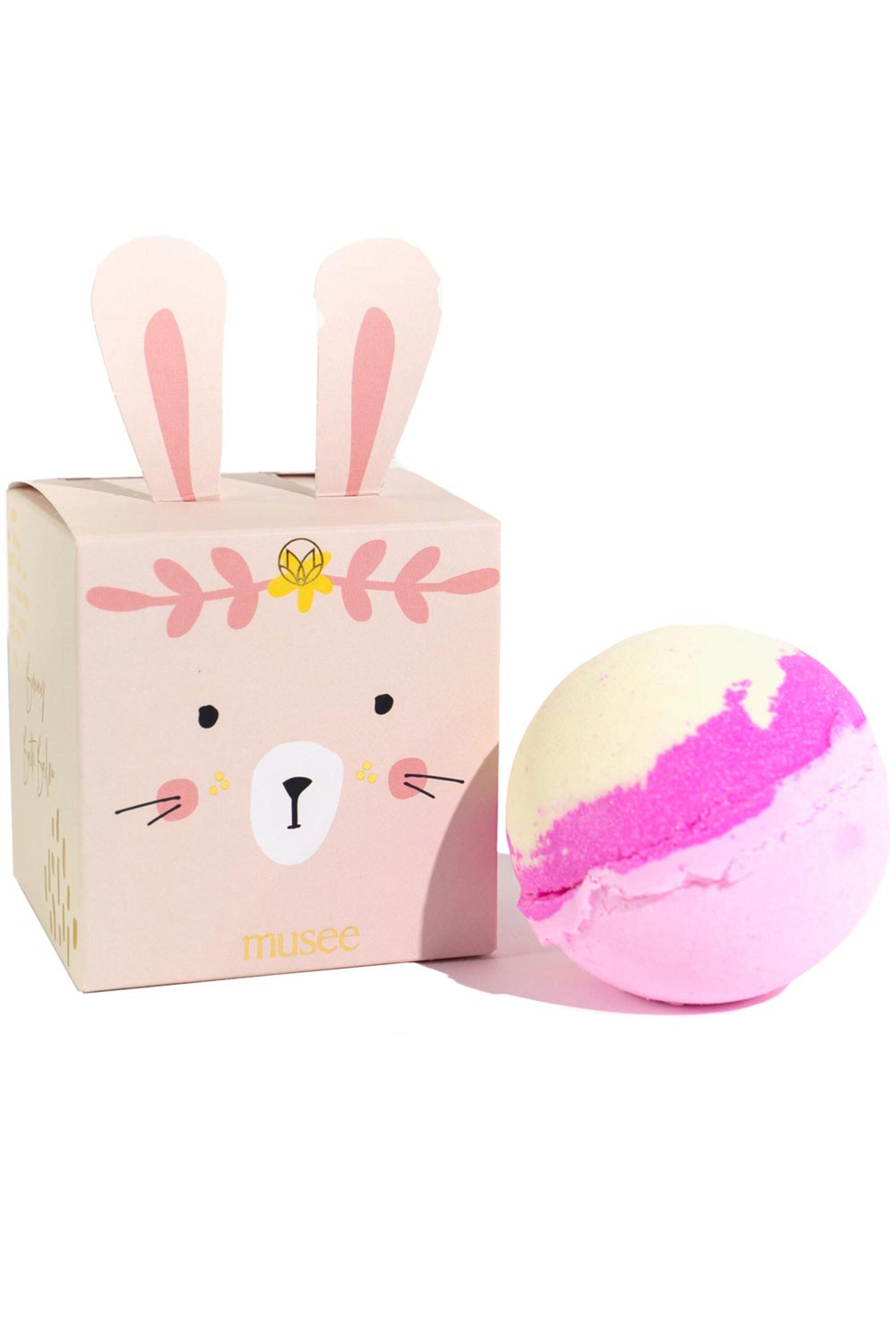- Musee Pink Bunny Bath Bomb Pastel colors with grapefruit essential oils Finger puppet inside 8 oz Made in USA