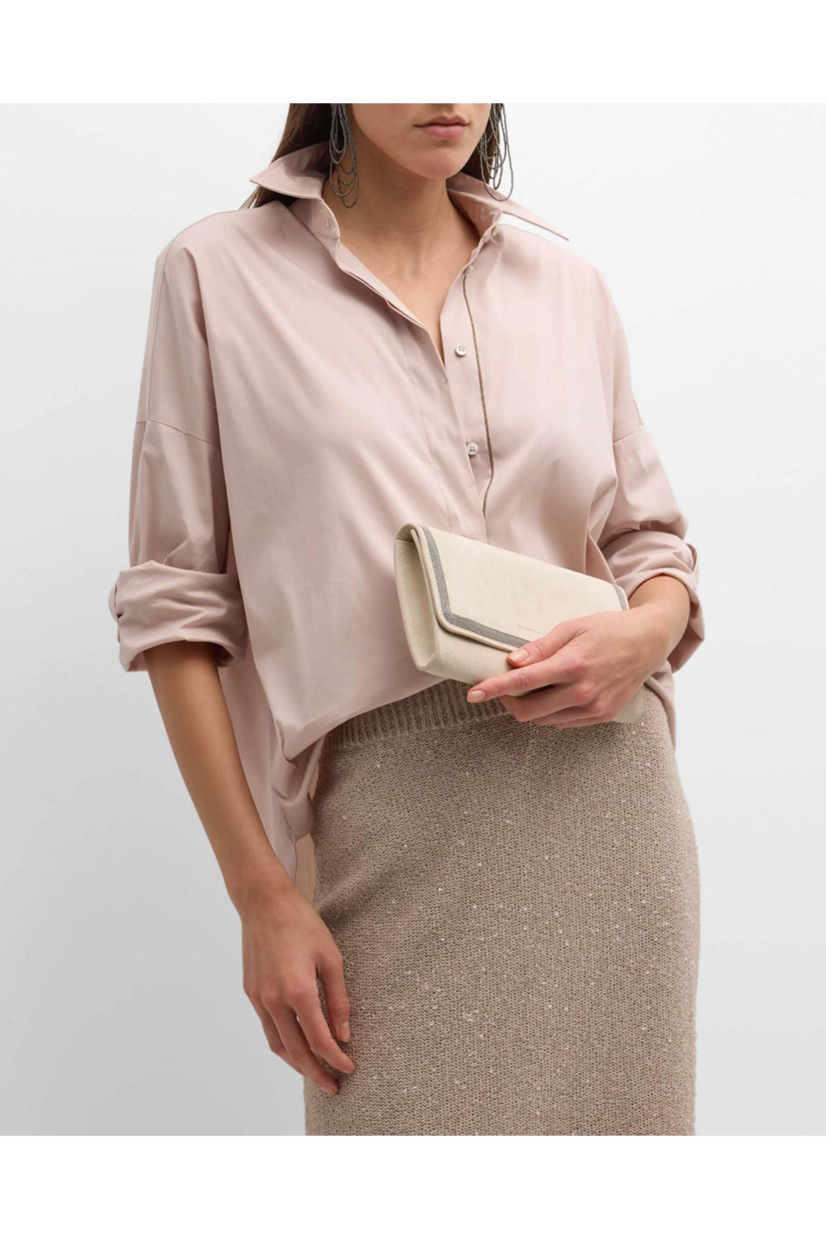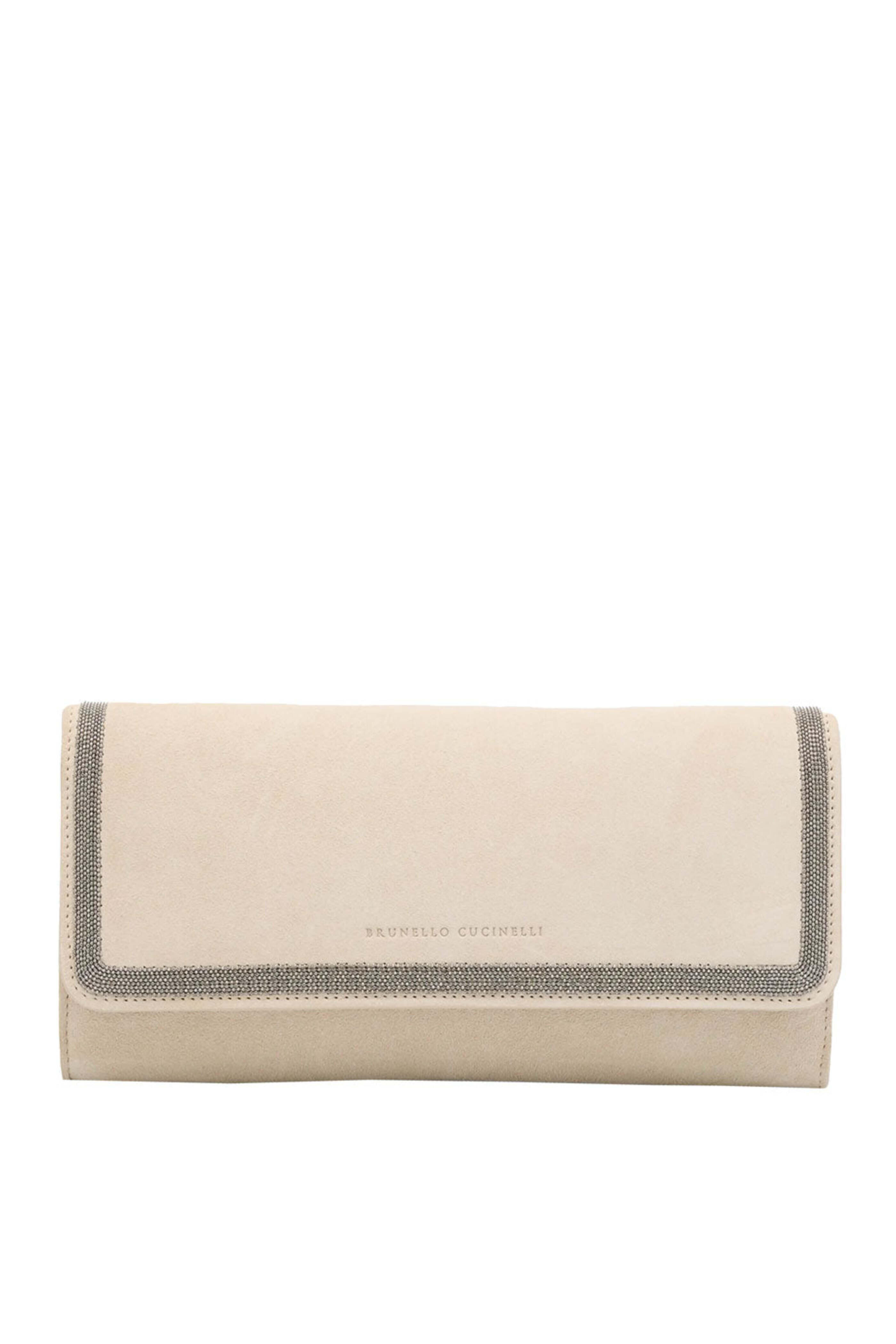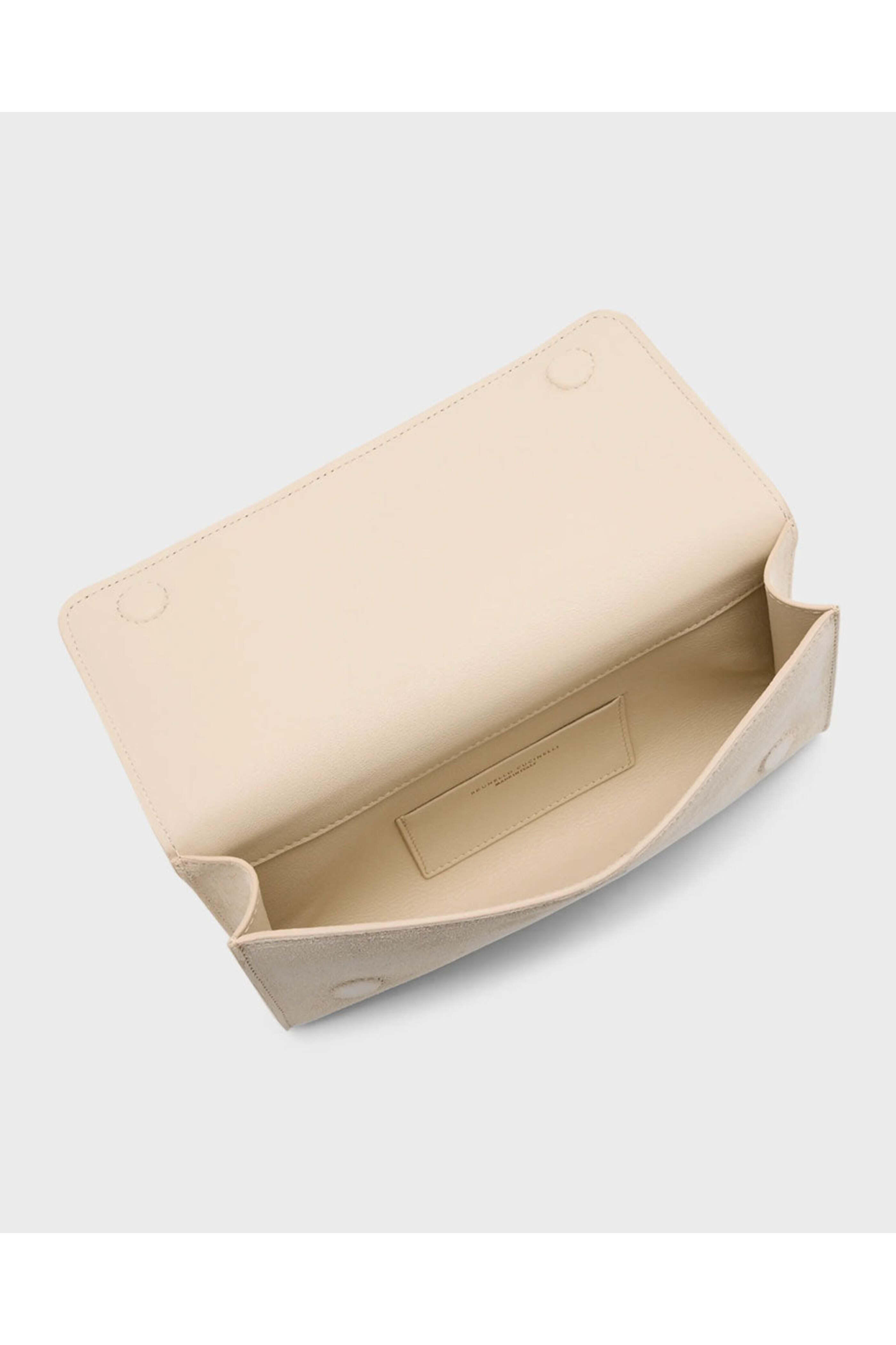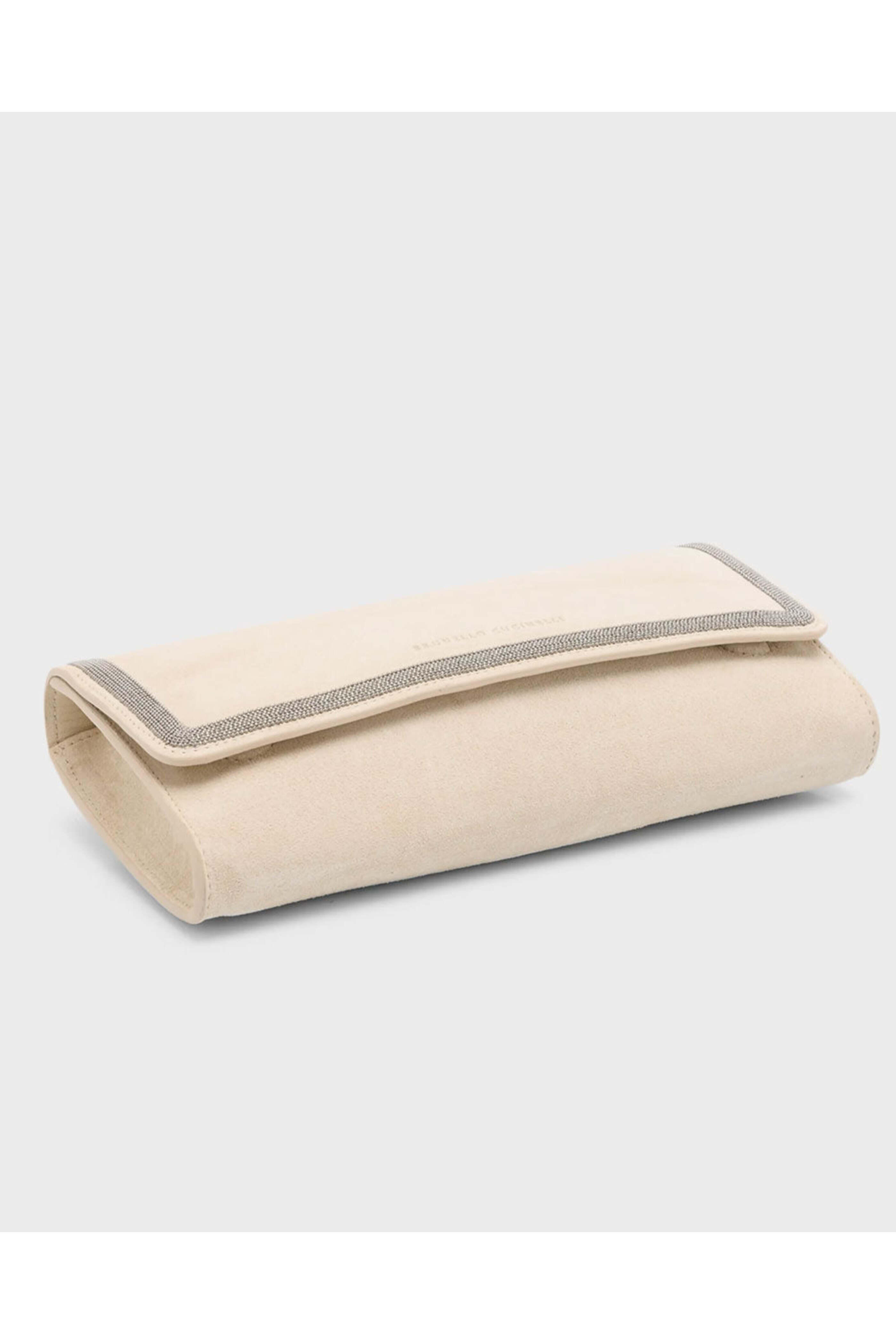 - Brunello Cucinelli Monili Flap Suede Clutch in Ivory