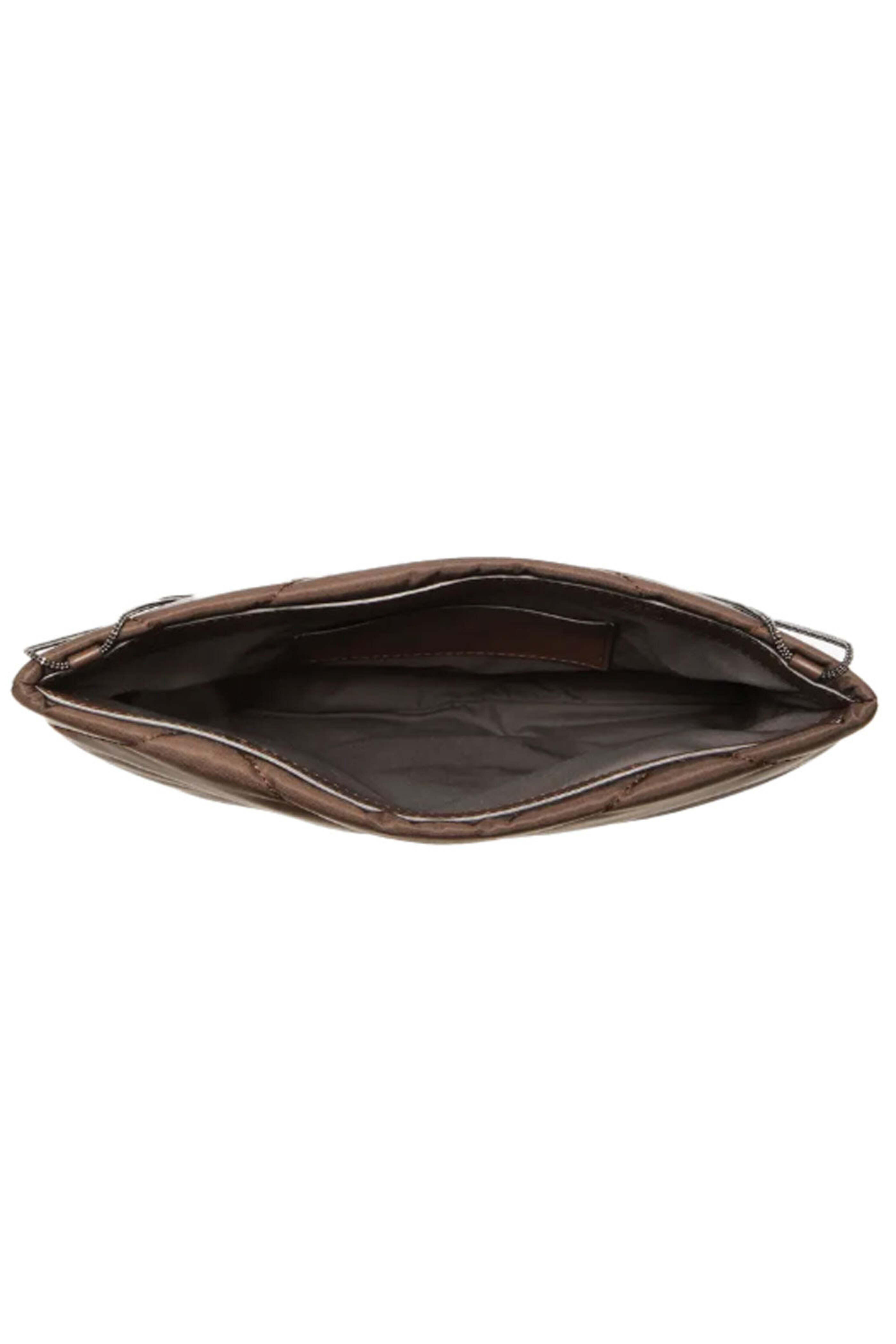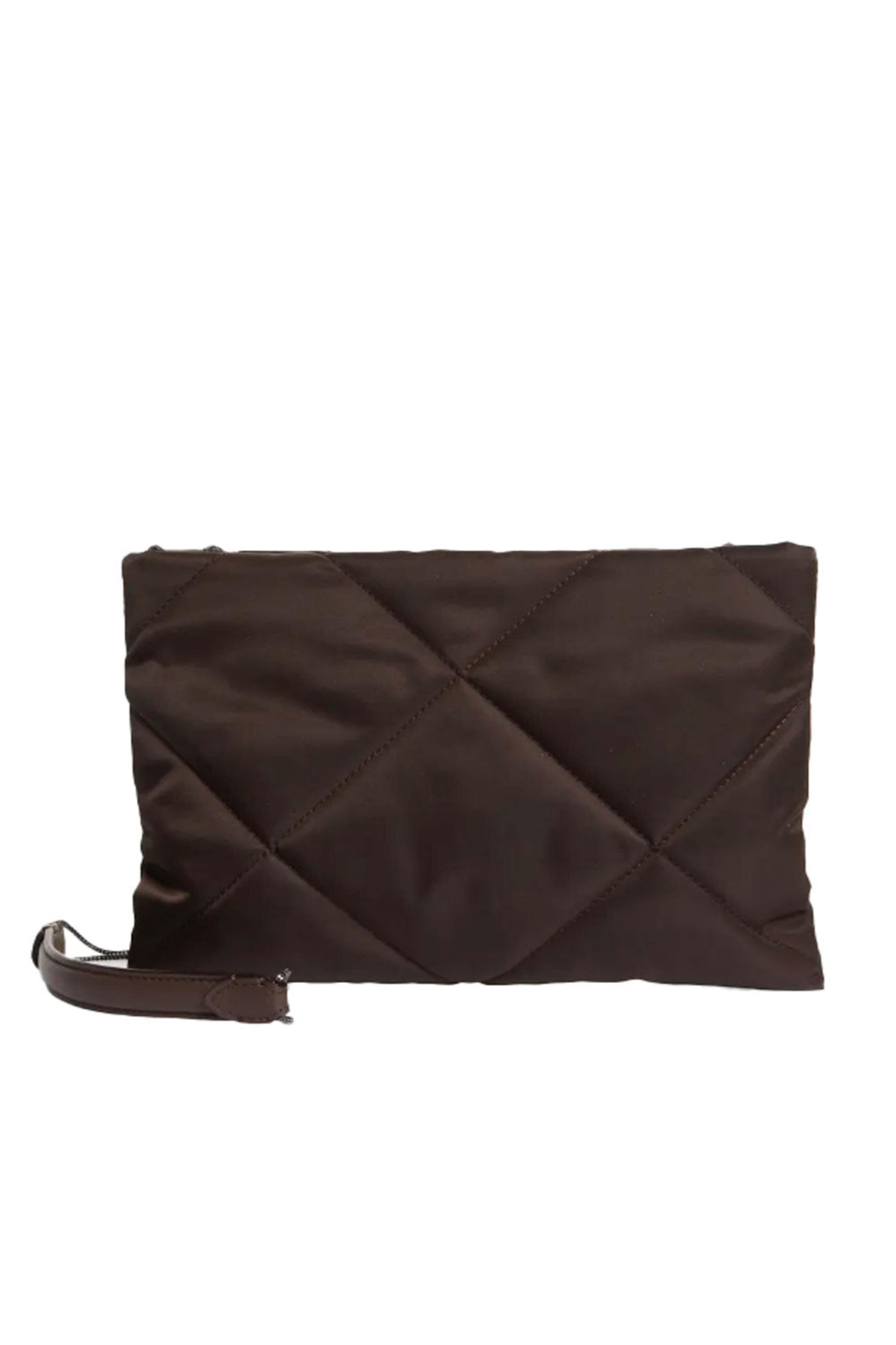 Quilted Taffeta Crossbody Pouch in Brown