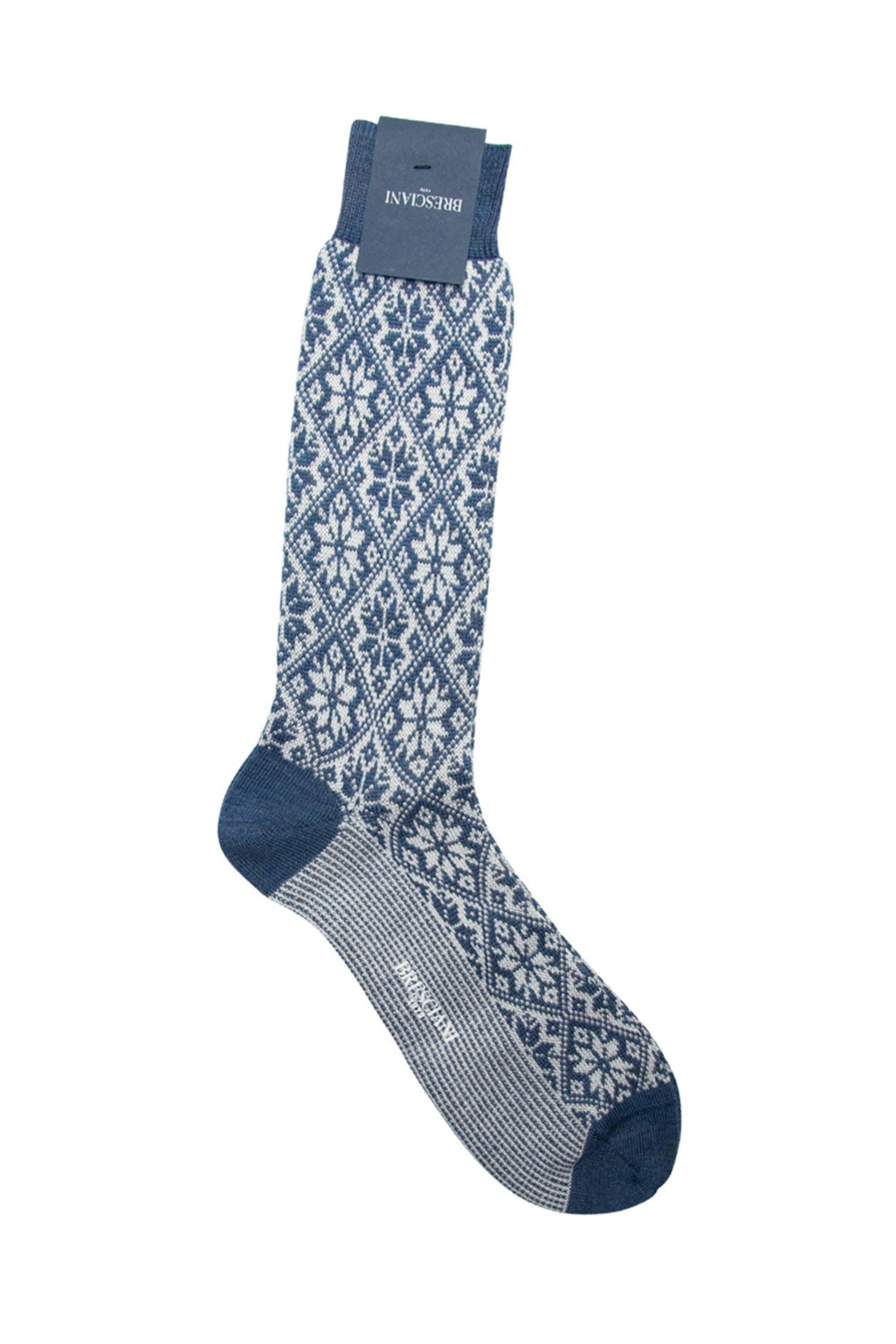 - Bresciani Blue and Cream Snowflake Midcalf Socks