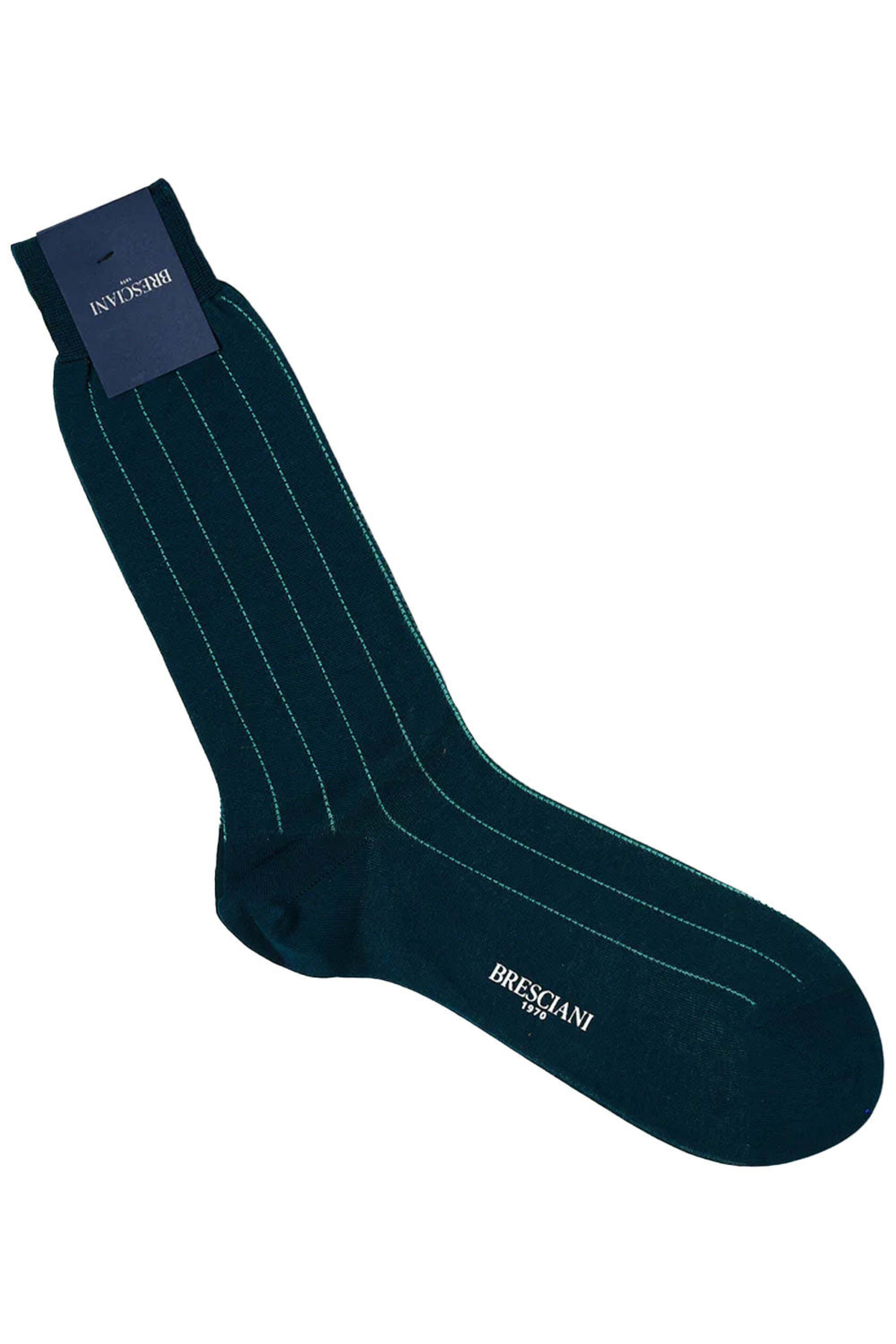 Bresciani Striped Mid Calf Sock in Green. Mid calf. One size fits most. Made in Italy. 100% cotton.