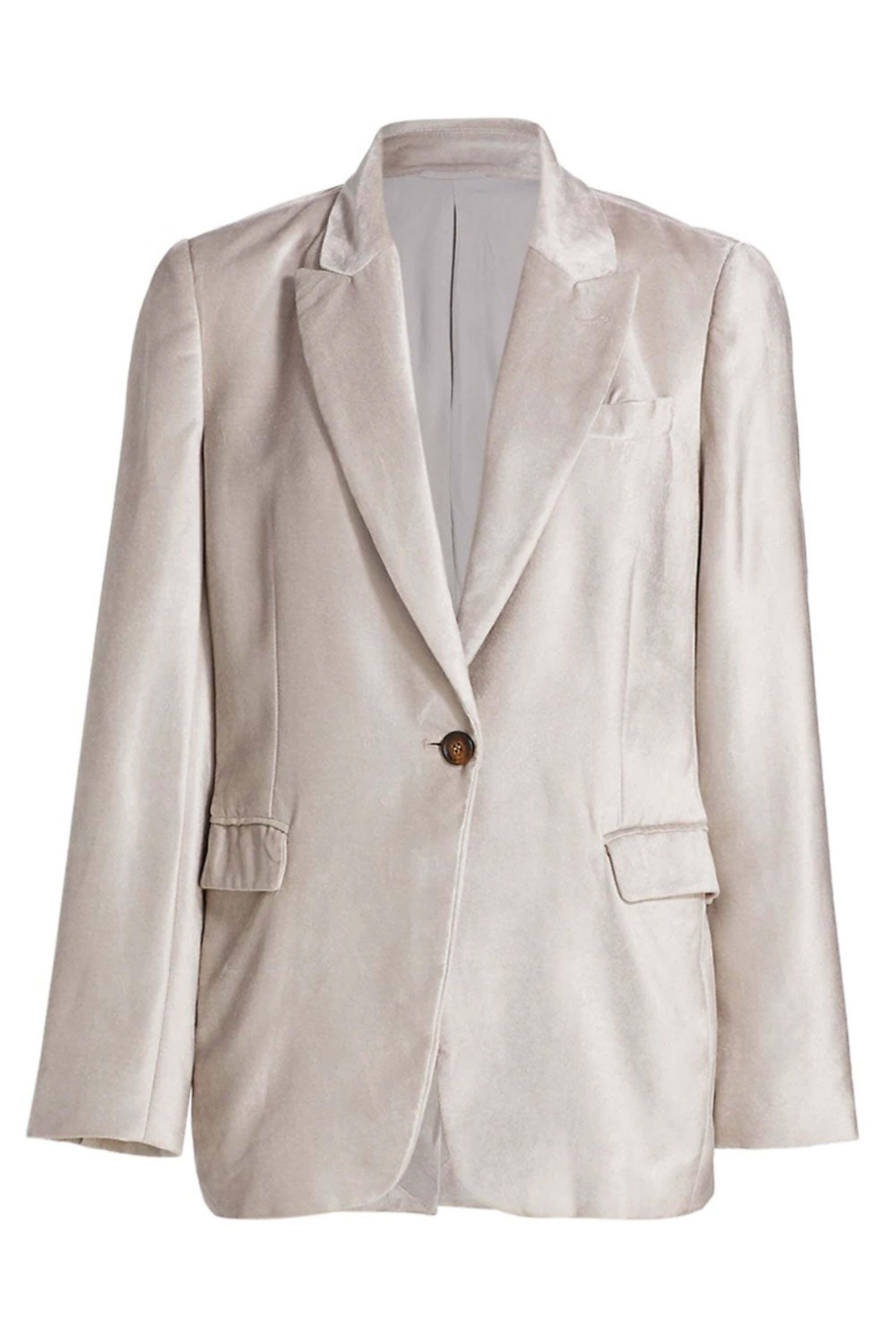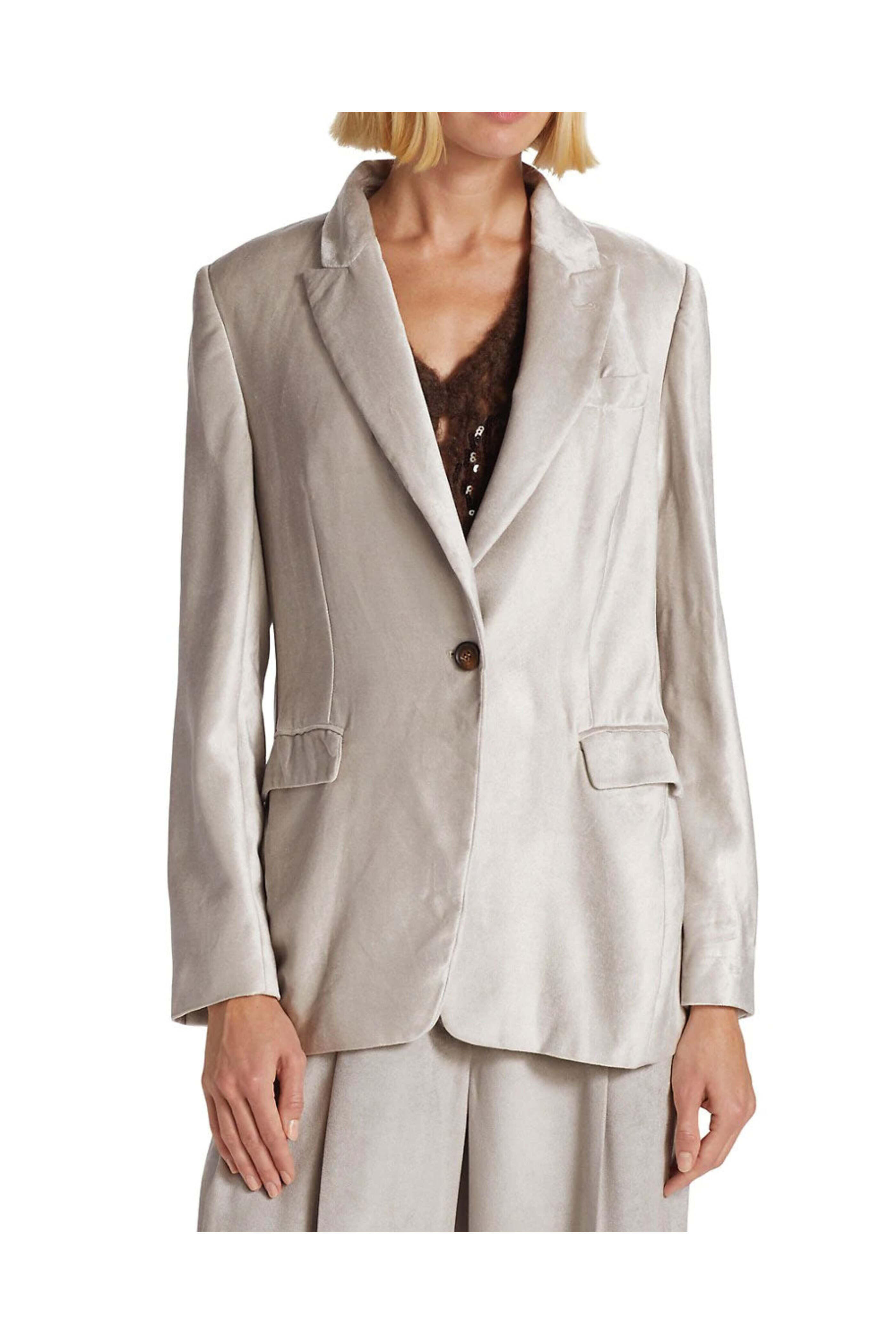 - Brunello Cucinelli Grey Velvet Single Button Jacket