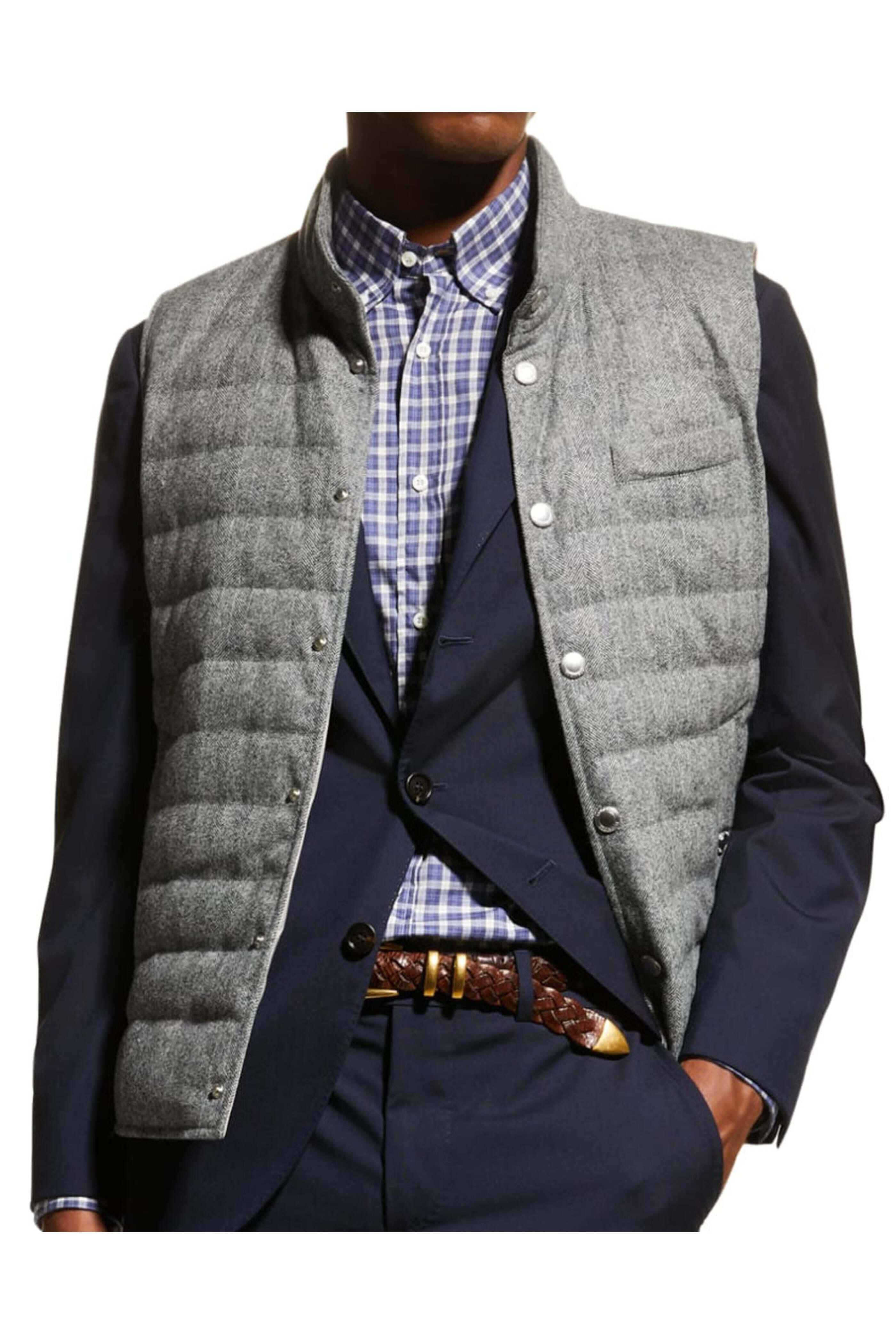 - Brunello Cucinelli Medium Grey Chevron Snap Vest