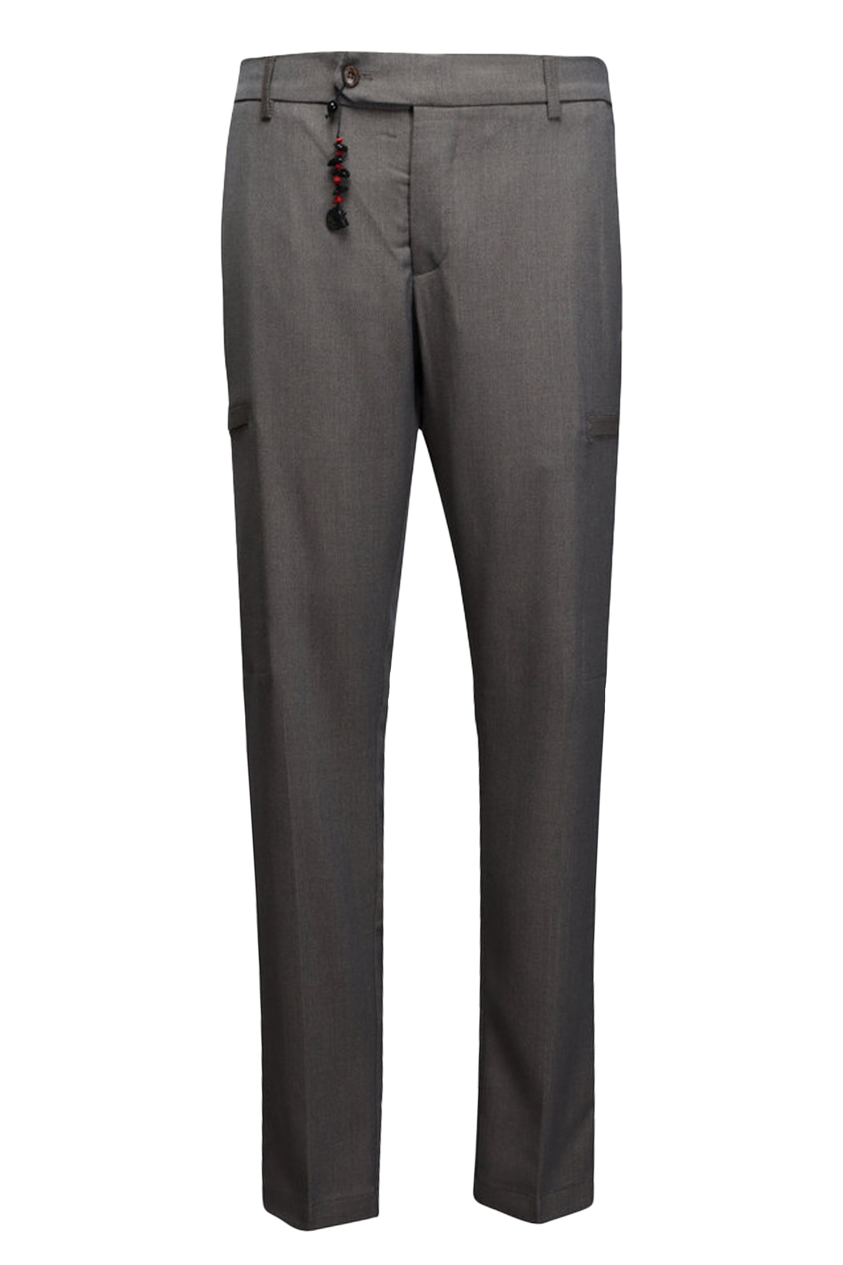 Zip fly; extended button tab. Elasticized waist; belt loops. Side slash pockets; back zip pockets; cargo zip pockets. Made in Italy. Inseam 33". 98% virgin wool, 2% elastane. Dry clean.