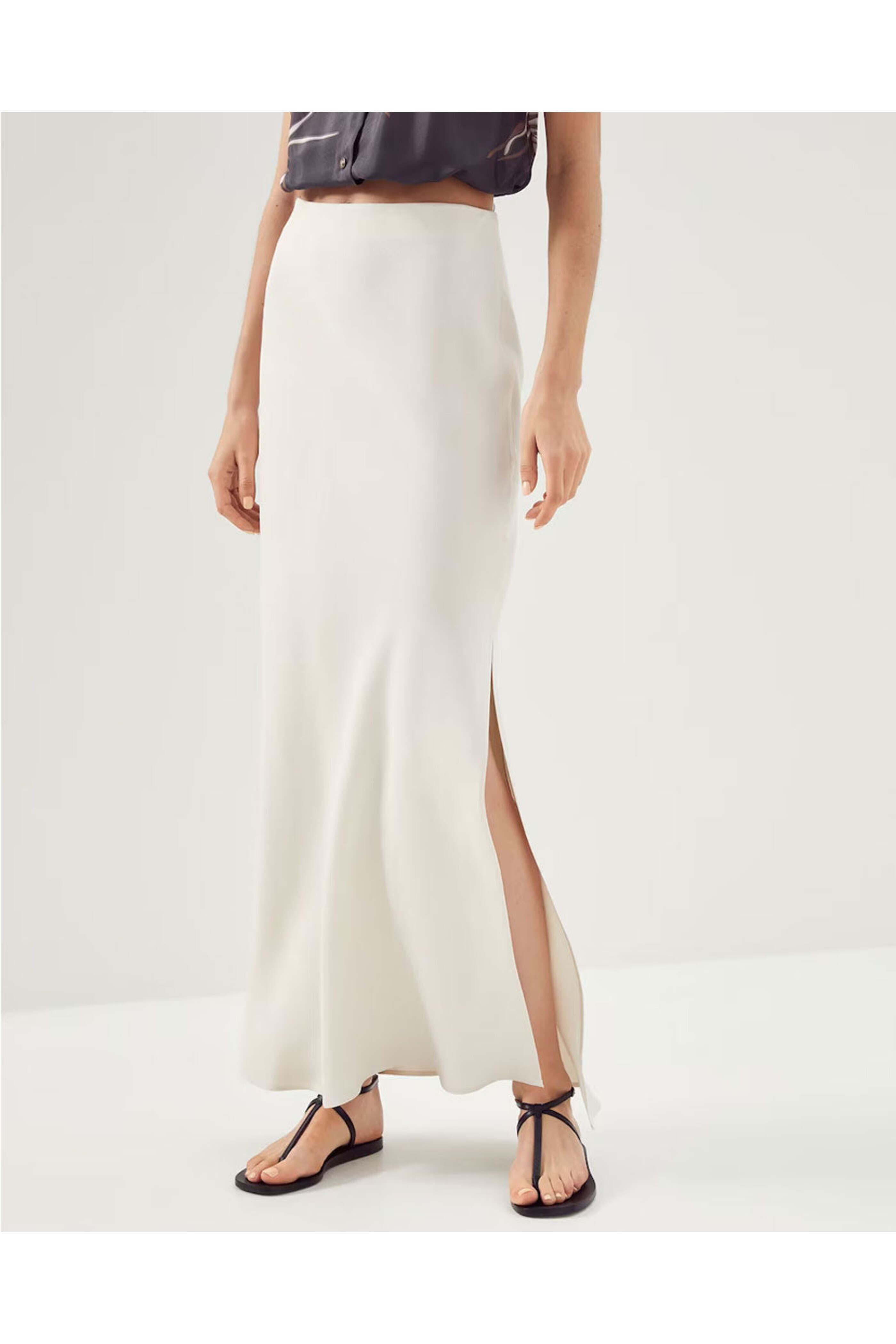 - Brunello Cucinelli Panama Fluid Linen Skirt