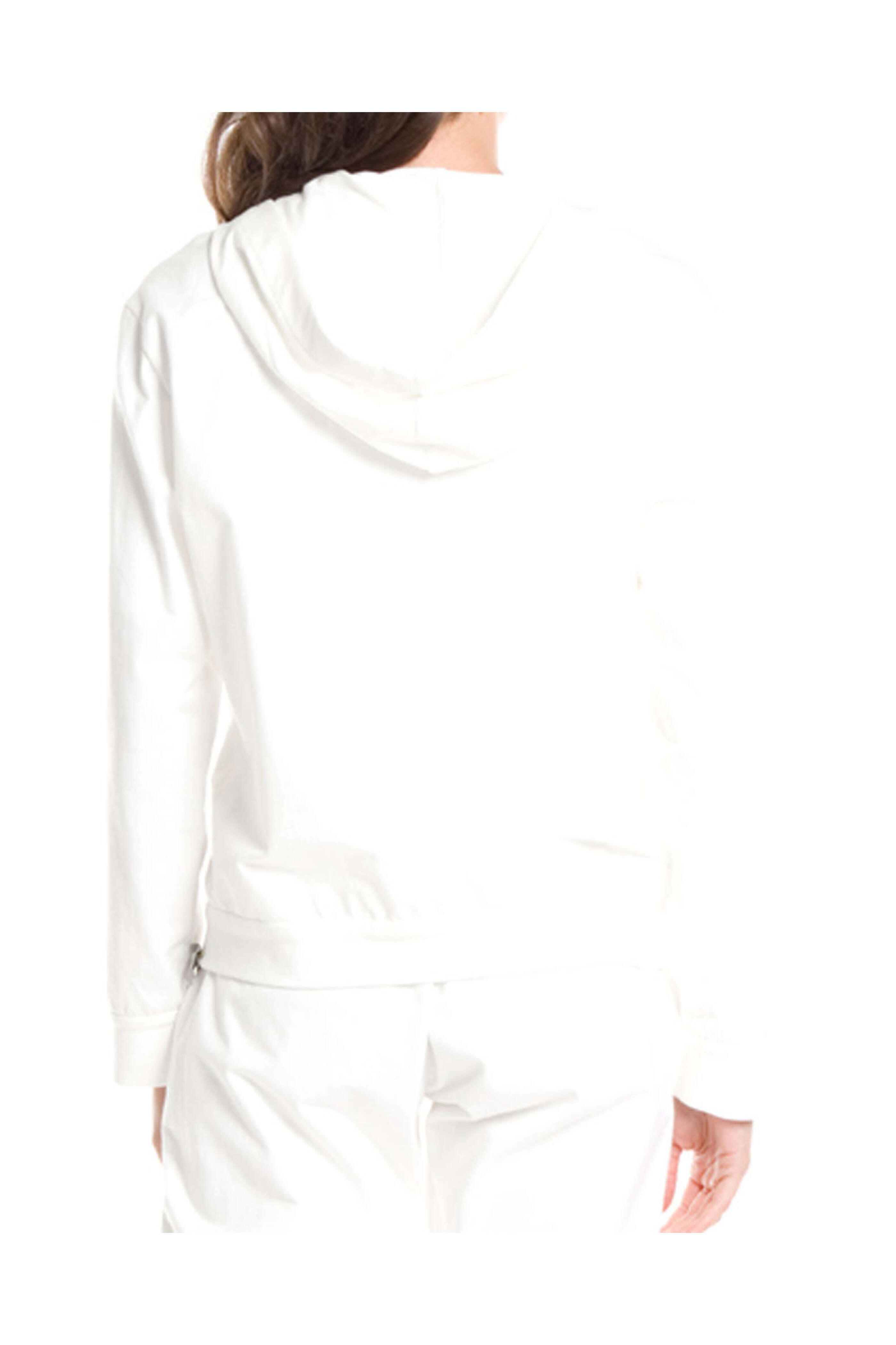 Brunello Cucinelli White Cotton Jersey Monili Jacket. Long sleeves. Zip closure at front. Monili detail at front. Pockets at front. Drawstring hood at back. Ribbed trims. Made in Italy. 98% cotton, 2% elastane.
