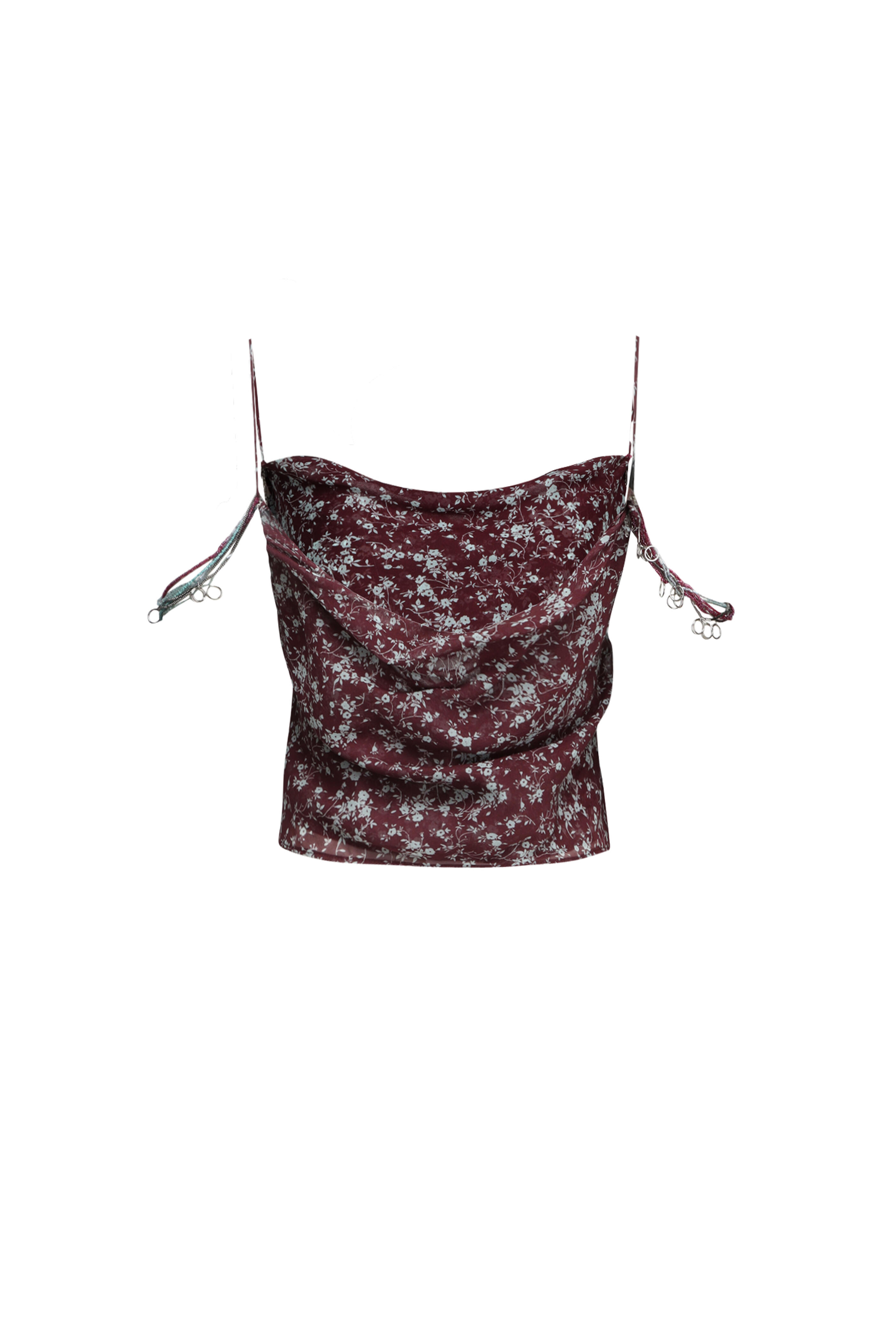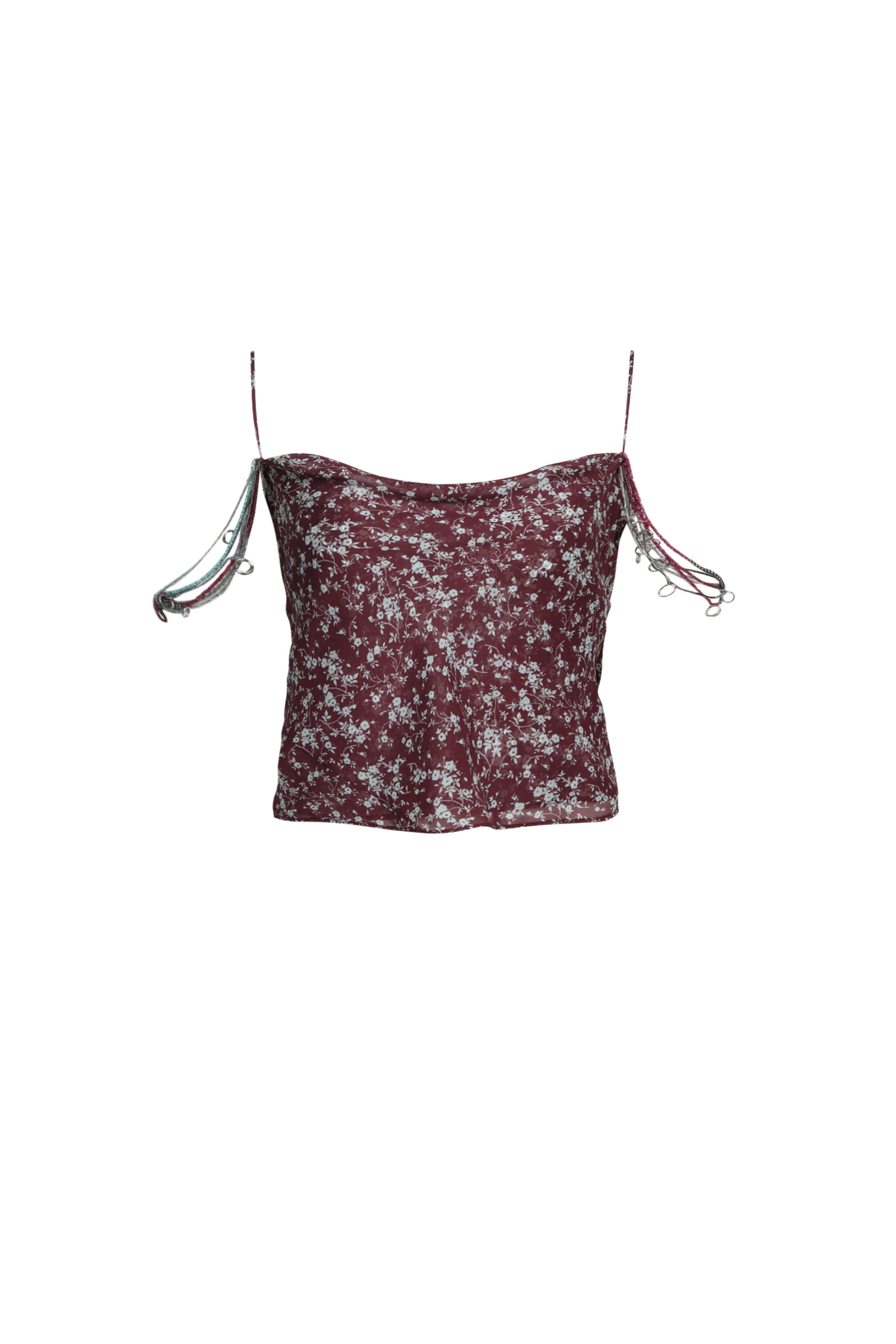 Cowl, square neck. Sleeveless; thin shoulder straps. Beaded off the shoulder detail. Imported. Relaxed fit. Cropped length. 100% silk. Dry clean.