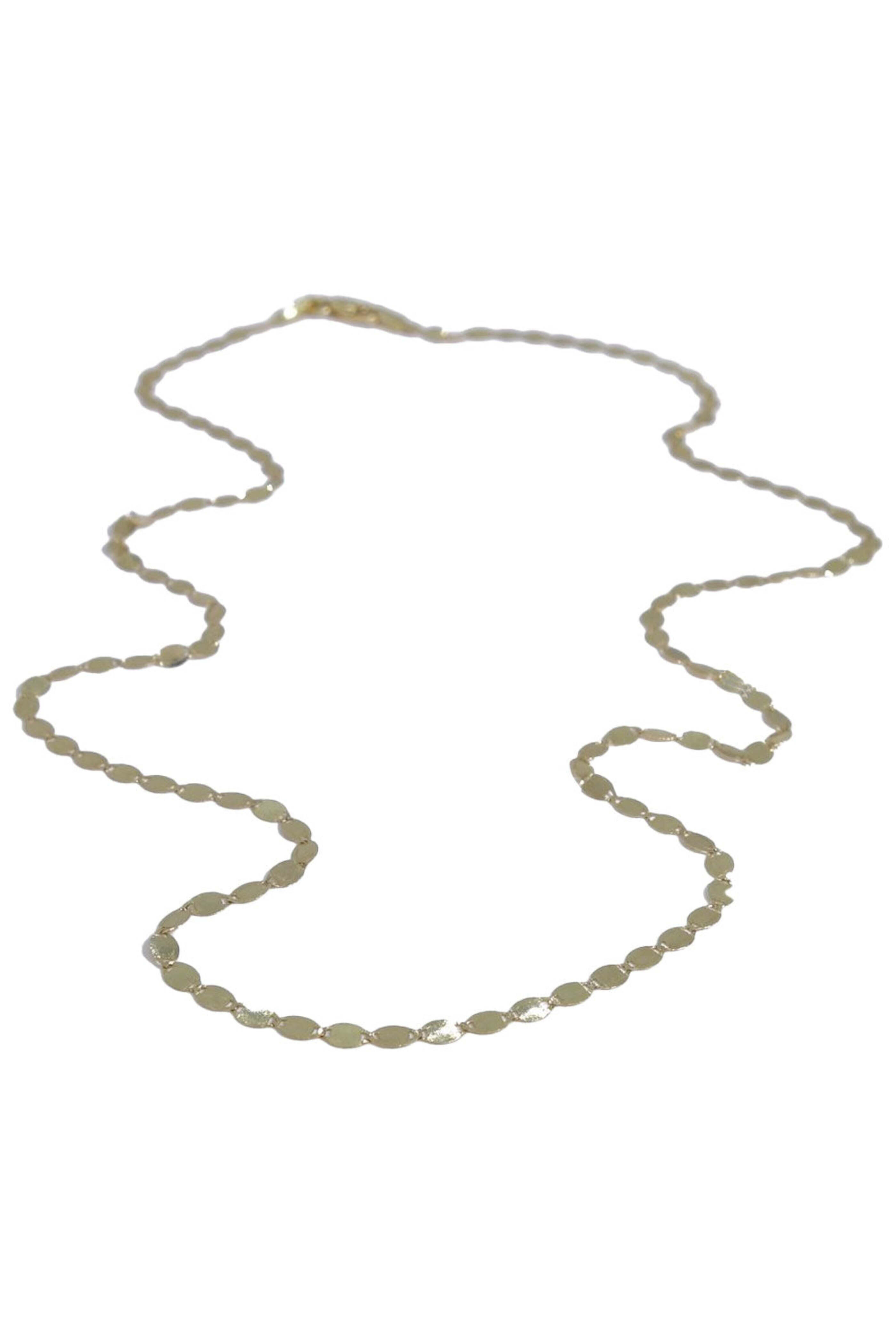Talisman Fine Jewelry 24 Mirror Eye Chain. 14k yellow gold. Mirror chain. Perfect simple accent alone, or layered in a stack. 2mm W. 24 L. Spring ring closure. Handmade.