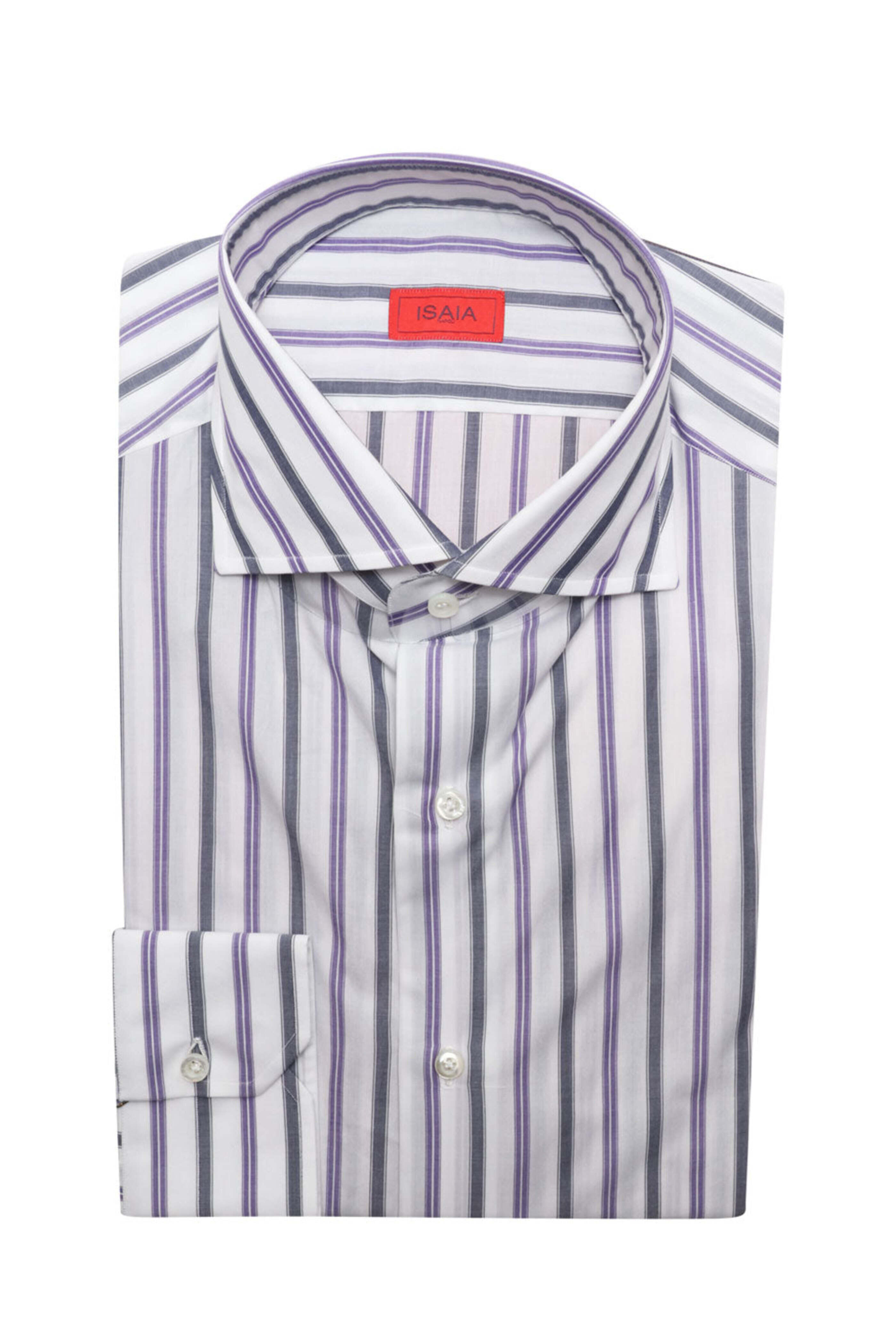 - Isaia White and Purple Dual Stiped Cotton Sportshirt