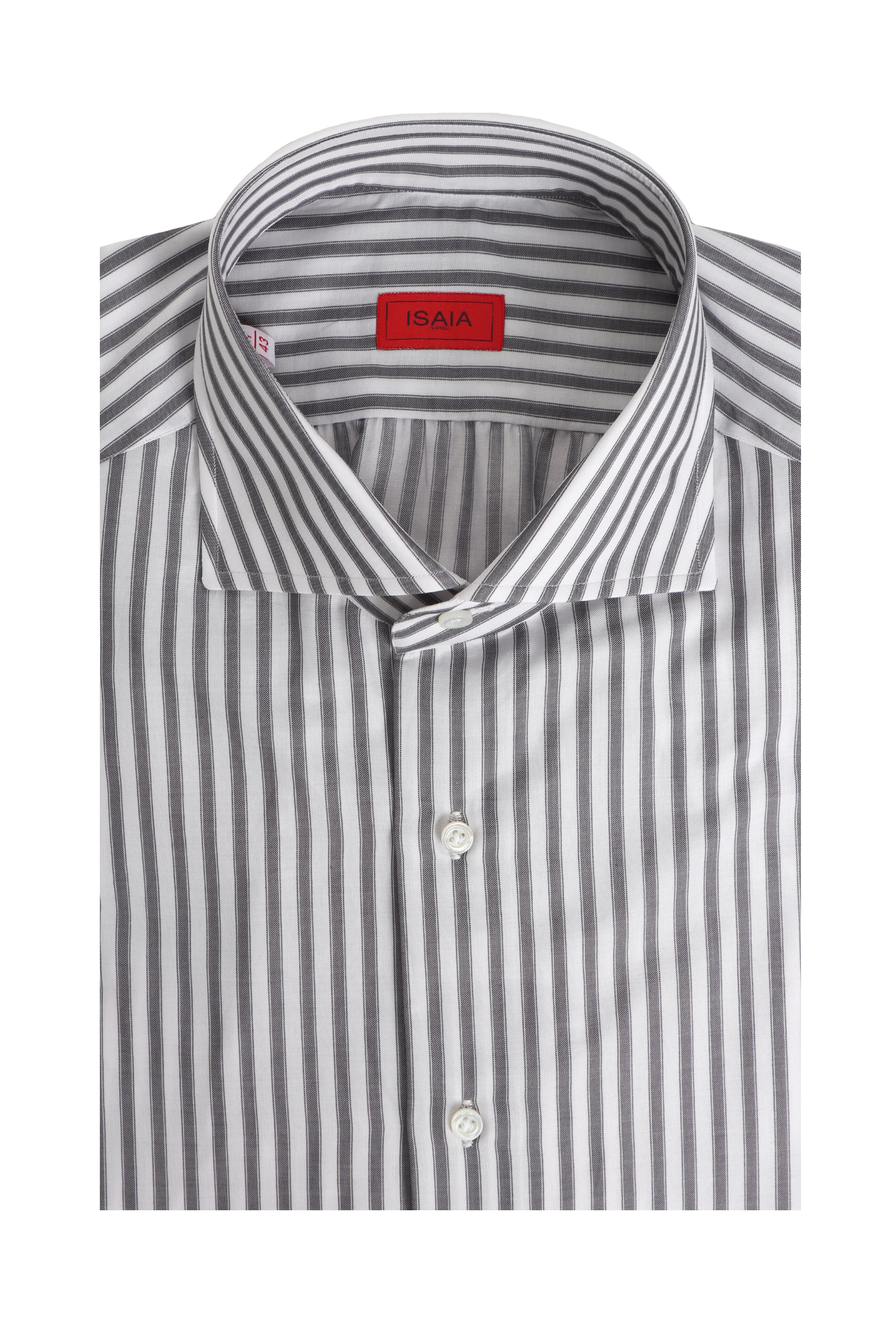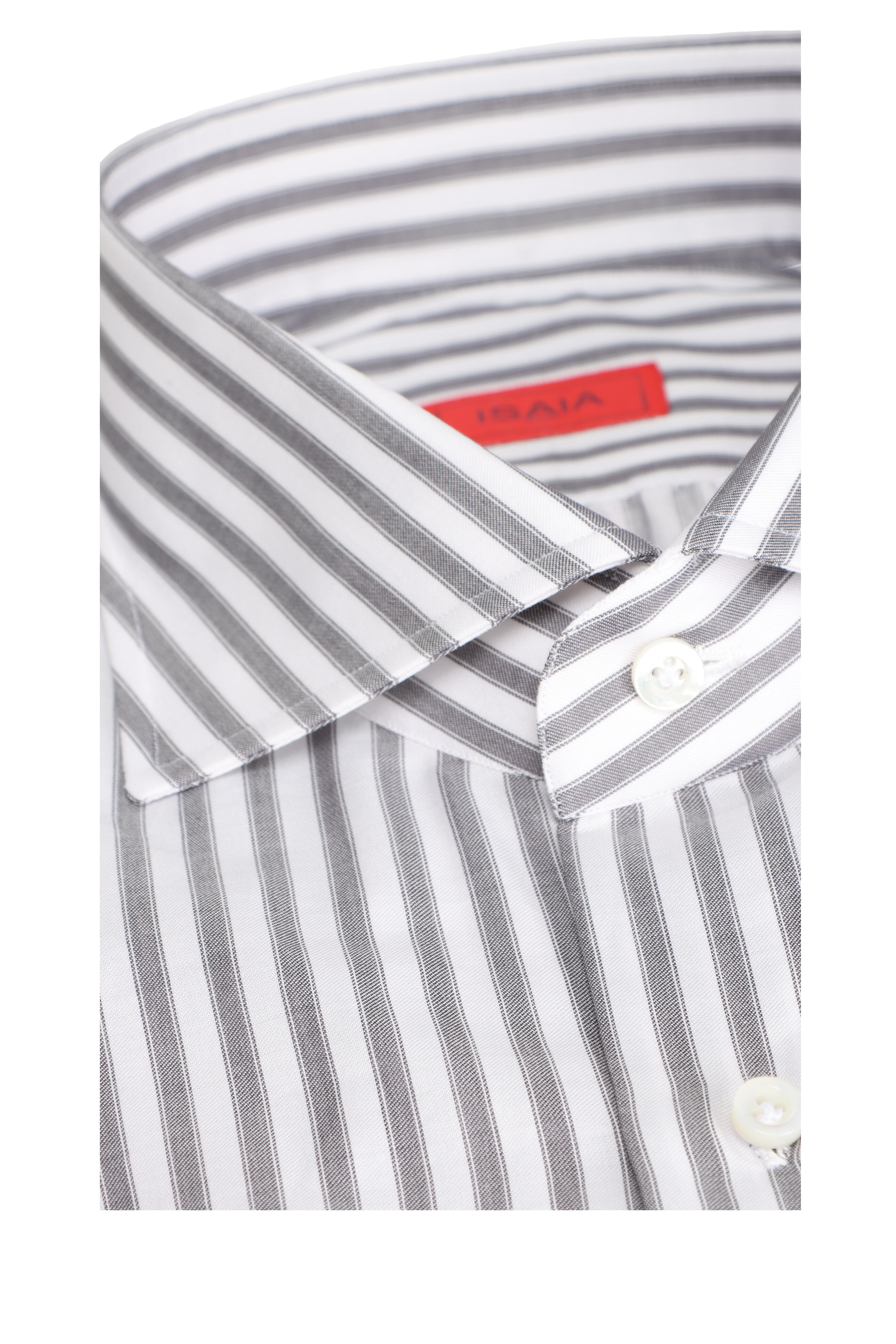 Spread collar. French placket. Single button mitered cuffs. Made in Italy. 100% cotton.