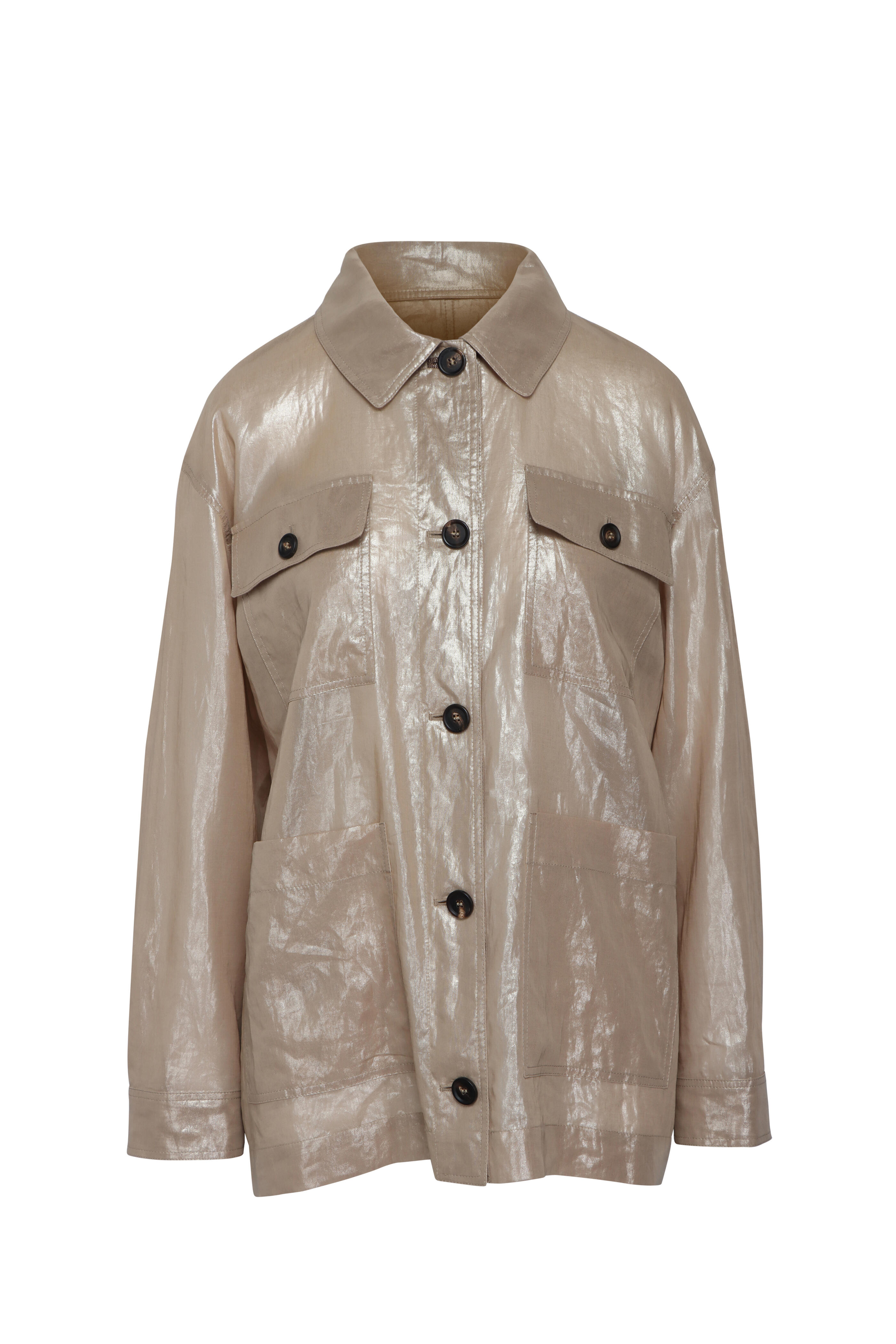 Camel Metallic Gauze Shirt Jacket