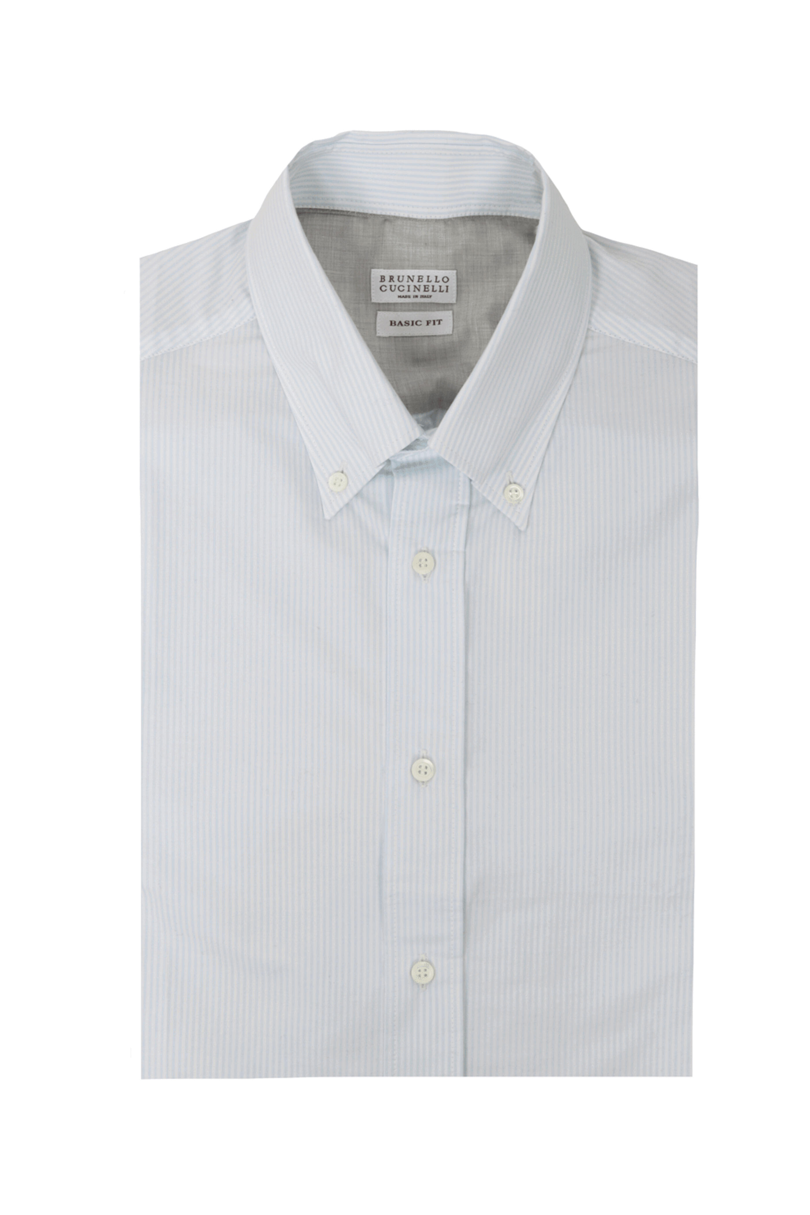 Button down spread collar. Button down front closure. Long sleeves. Round barrel cuffs. Curved hem. Made in Italy . Basic fit. 100% cotton.