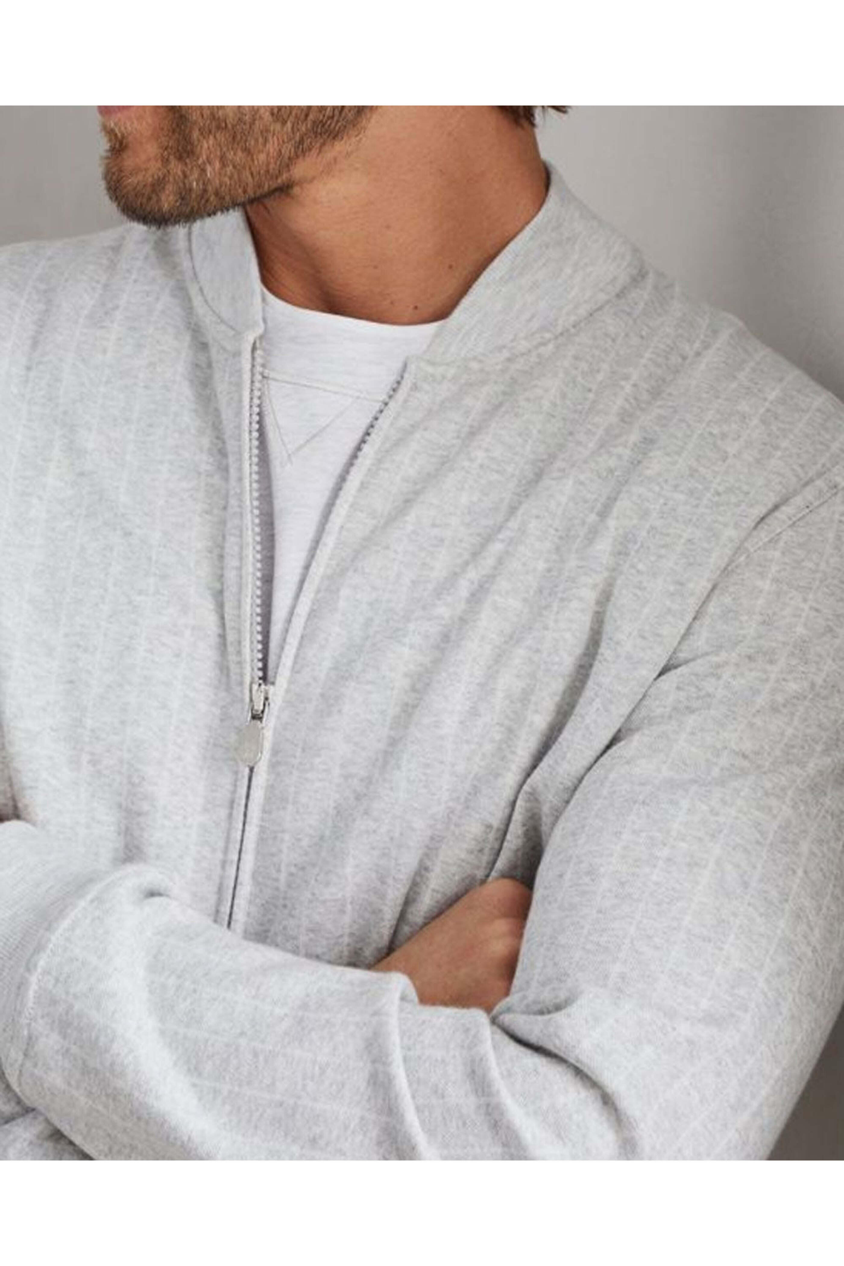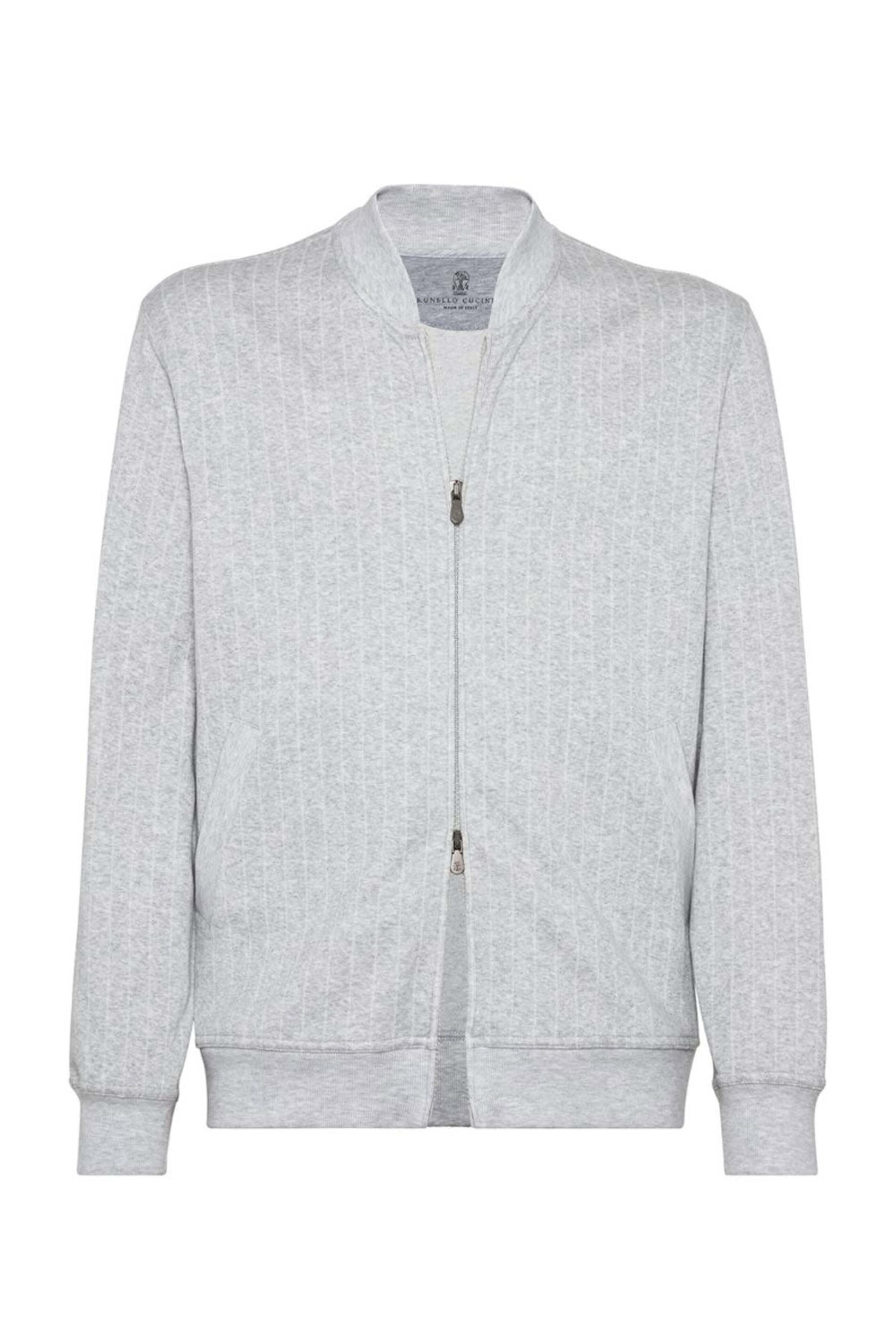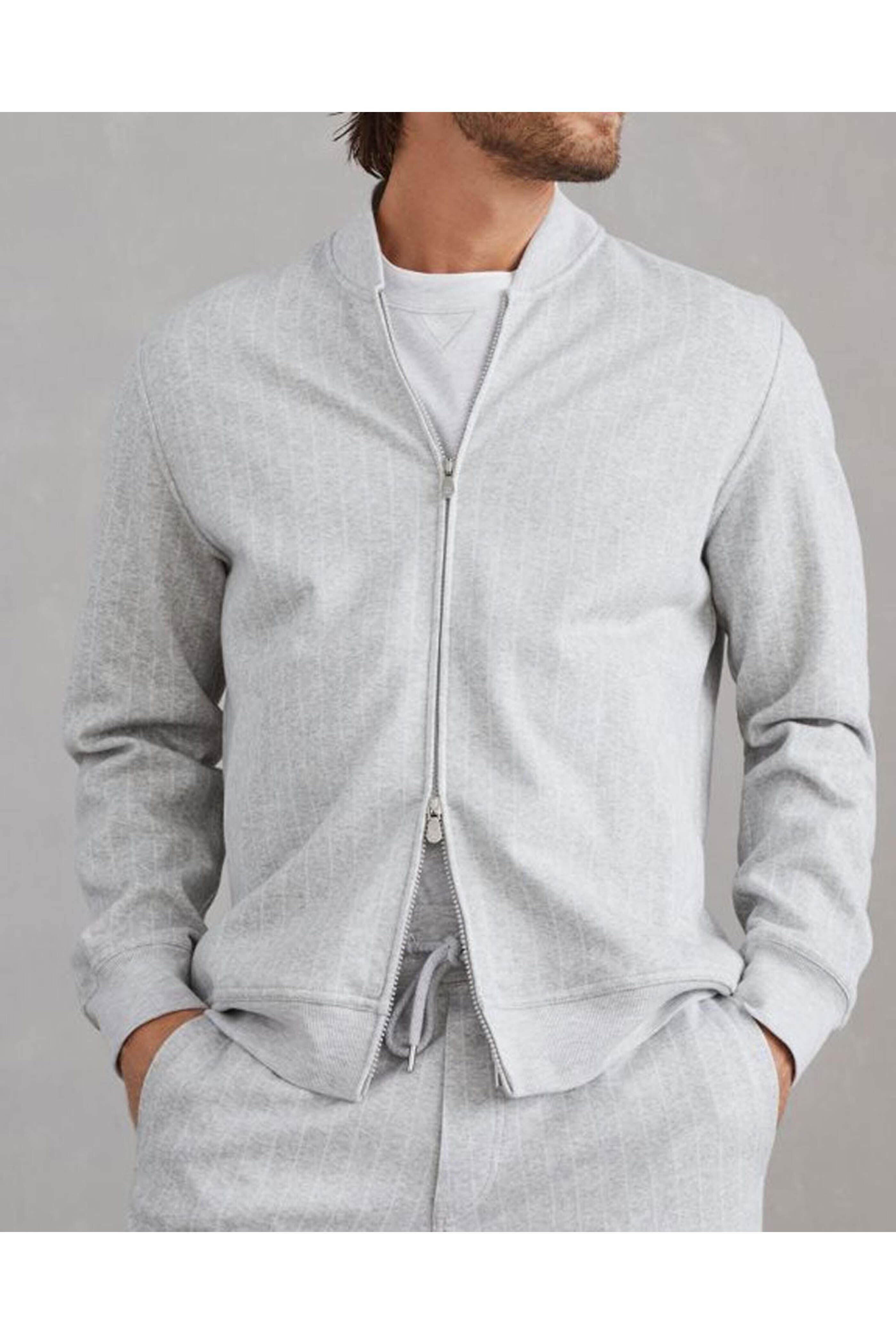 - Brunello Cucinelli Pearl Grey Pinstripe Zip Jacket
