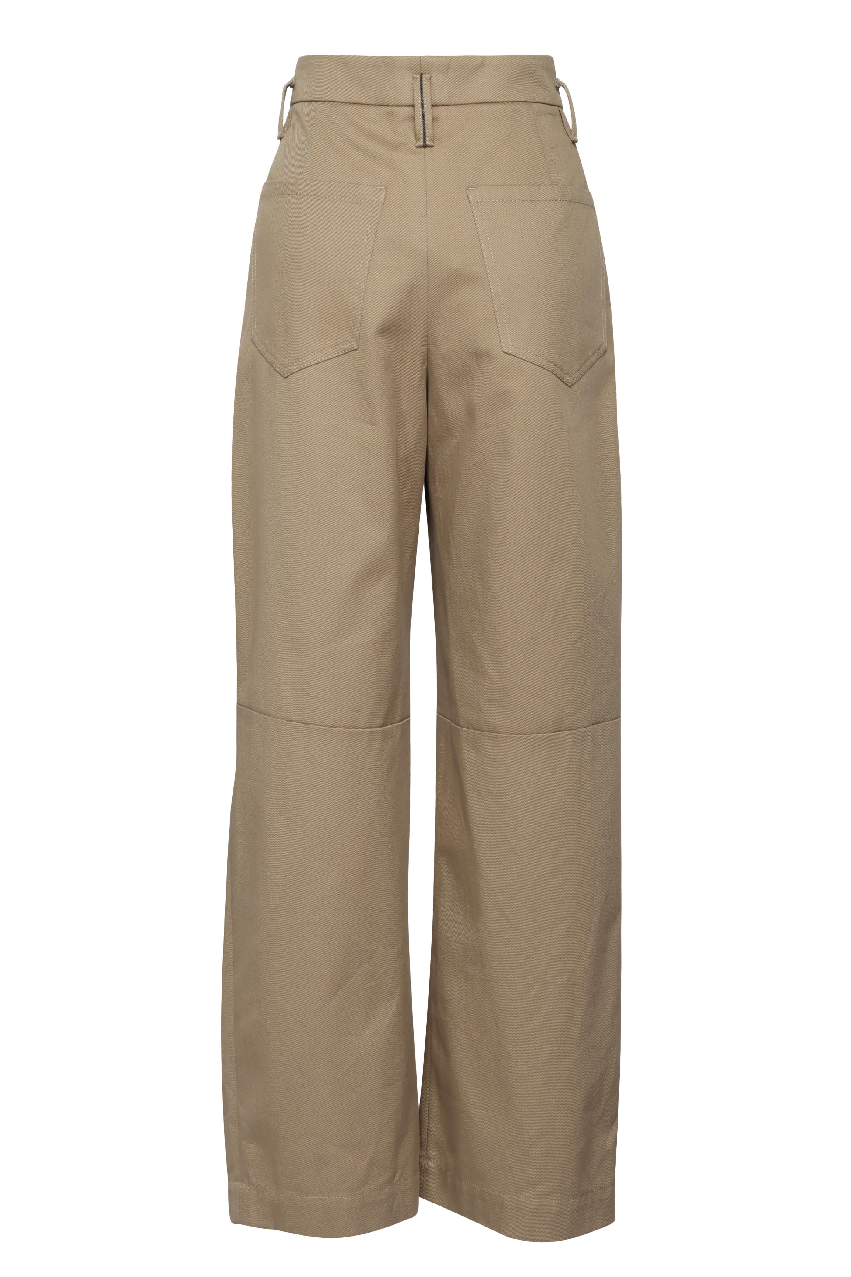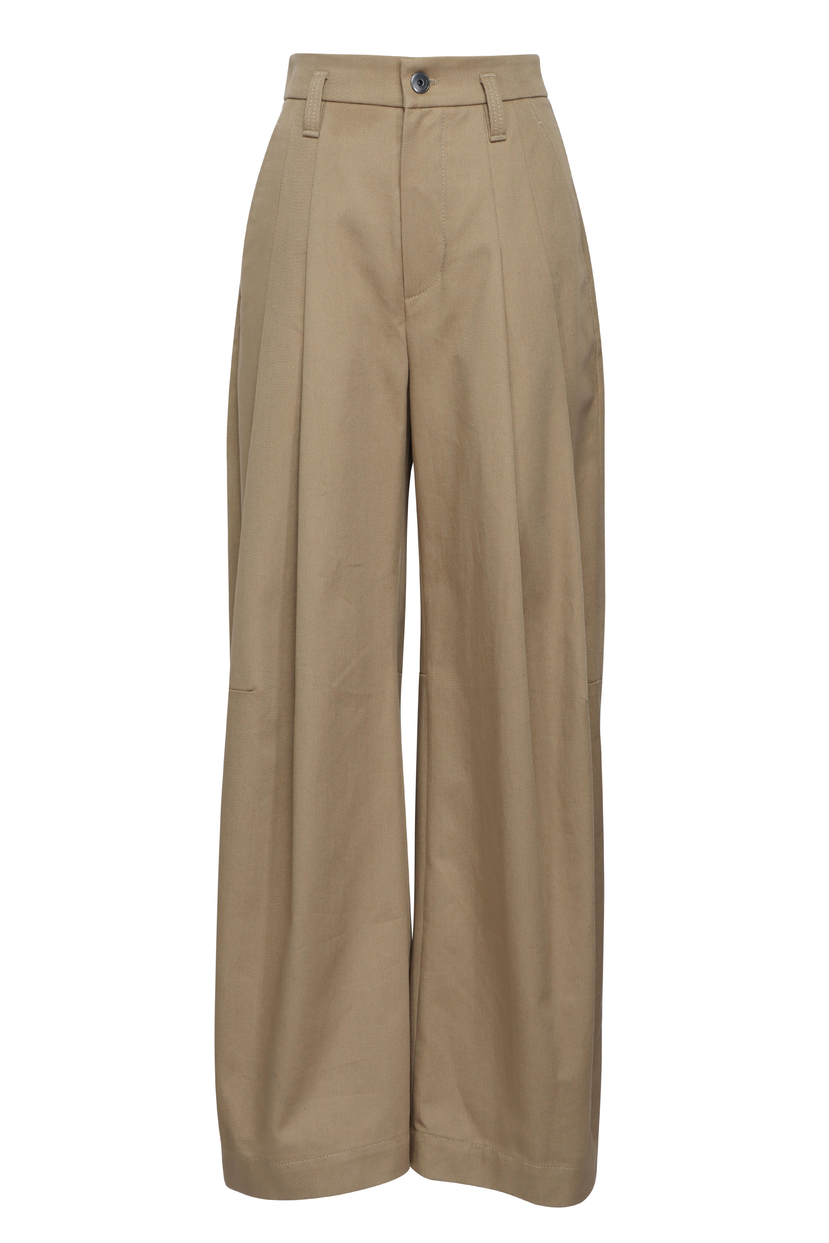 High rise. Button closure. Zip fly. Belt loops. Pleated detail. Barrel silhouette. Wide through leg. Made in Italy. Full length. 100% cotton; lined. Dry clean.