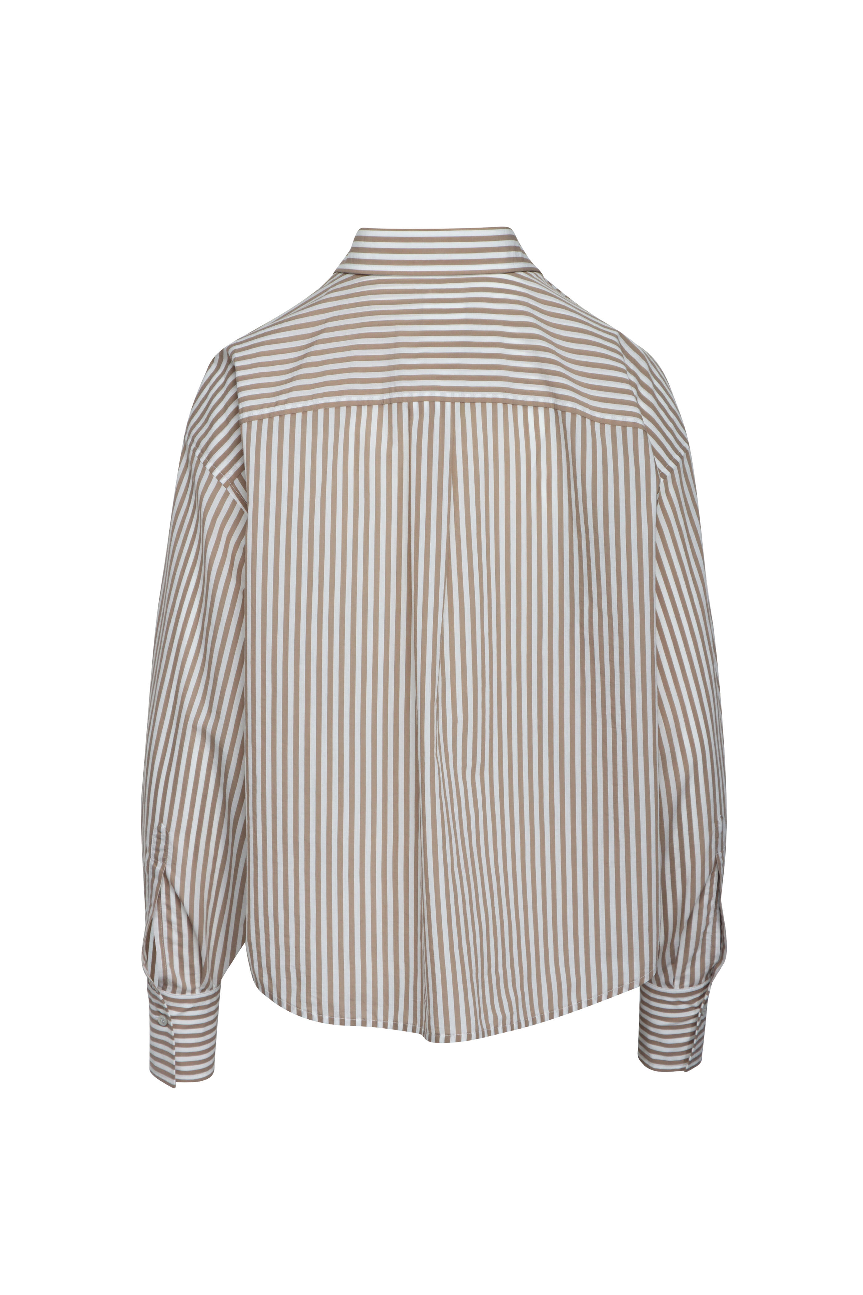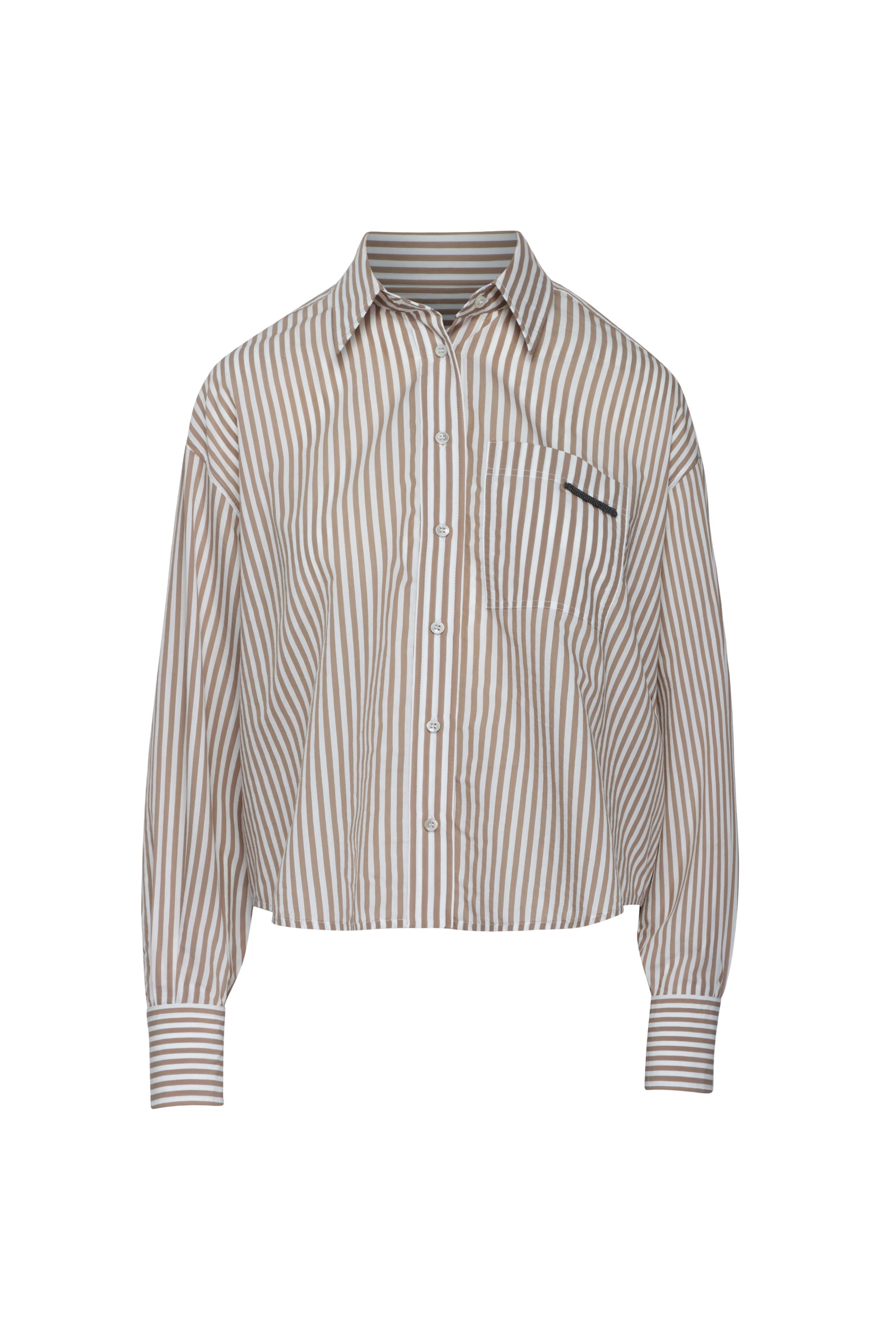 Collar. Long sleeves; button cuffs. Button front closure. Single chest patch pocket; monili tab detail. Boxy fit. Made in Italy. 100% cotton.