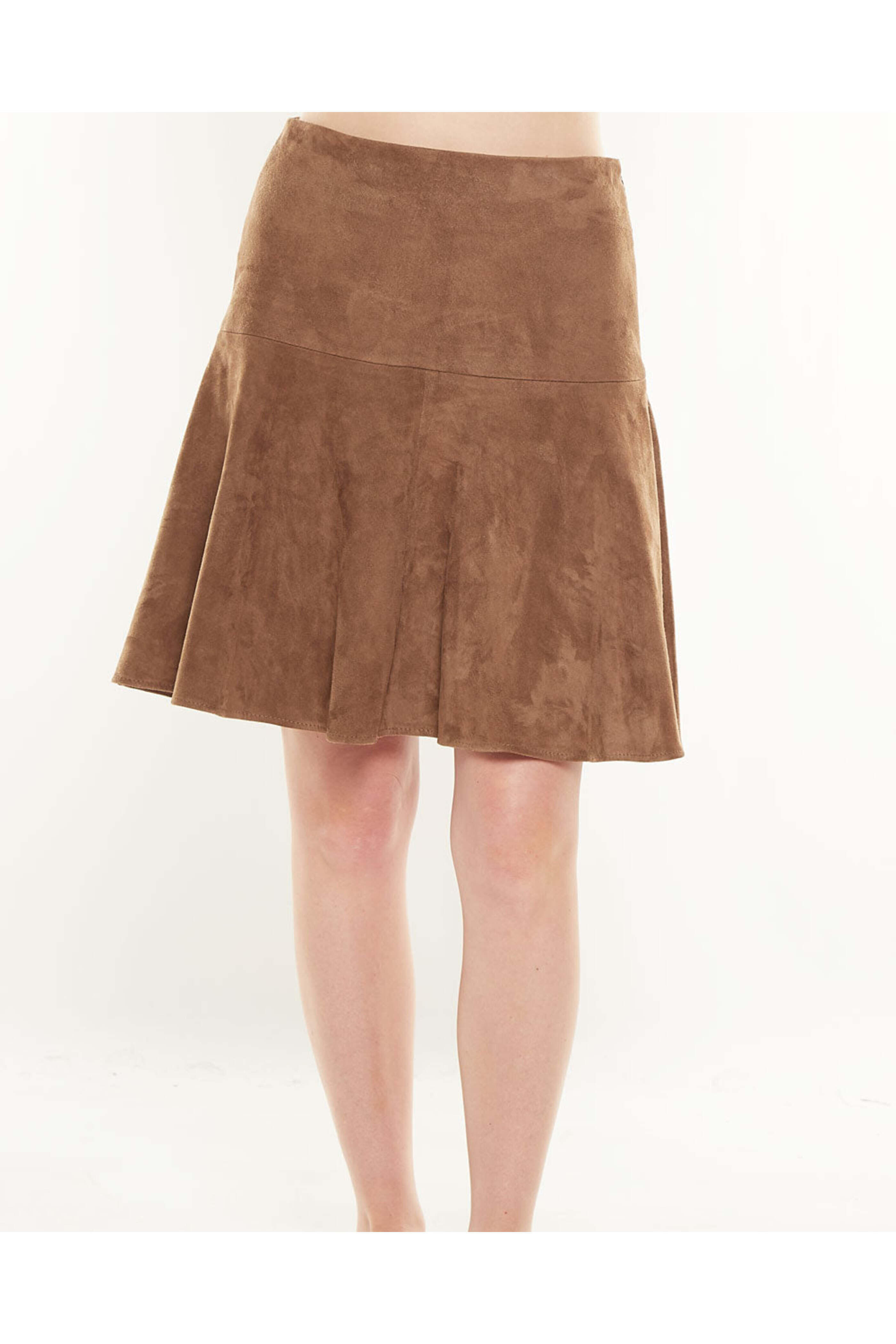Mocha Suede Fit and Flare Mini Skirt