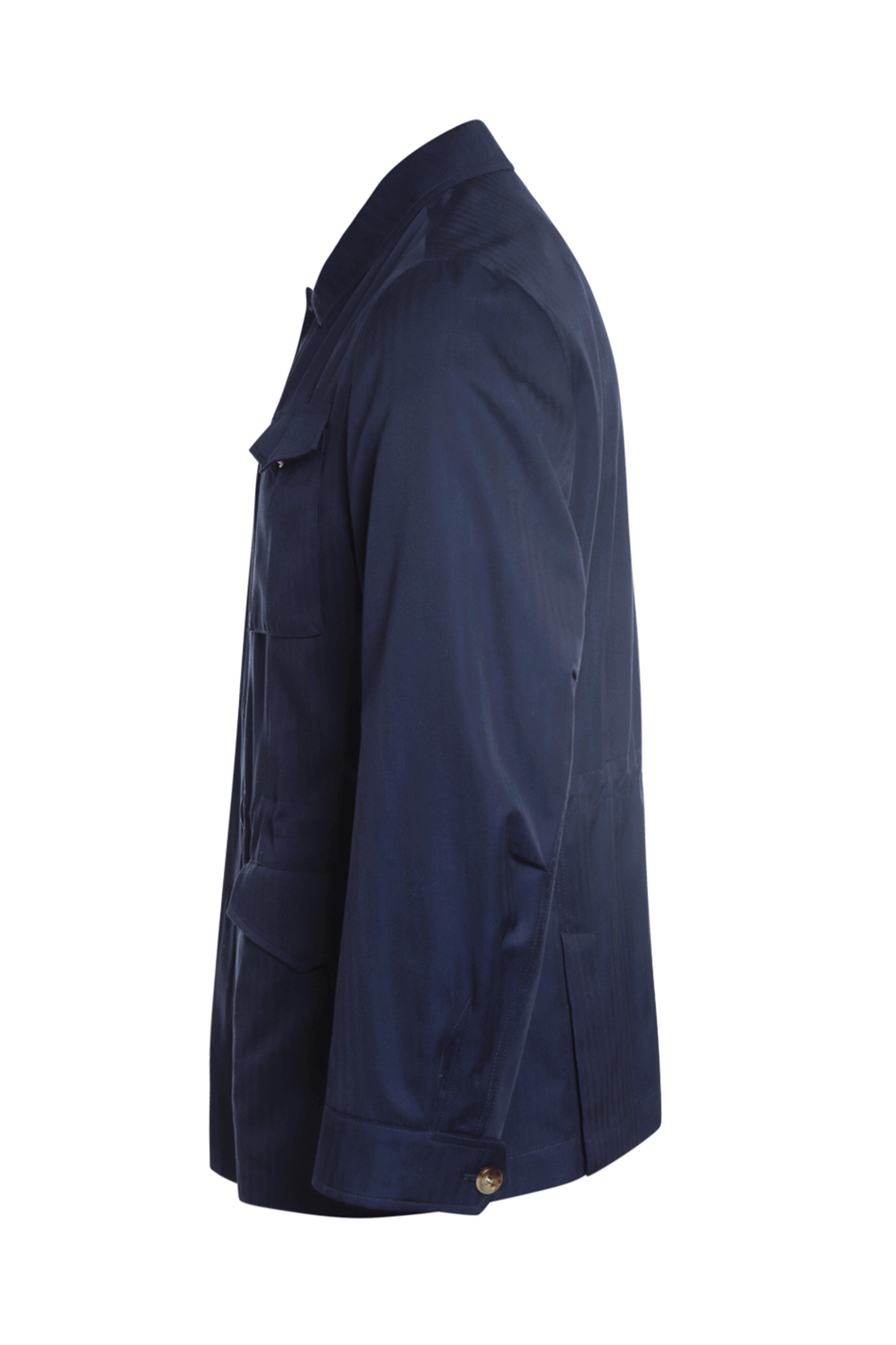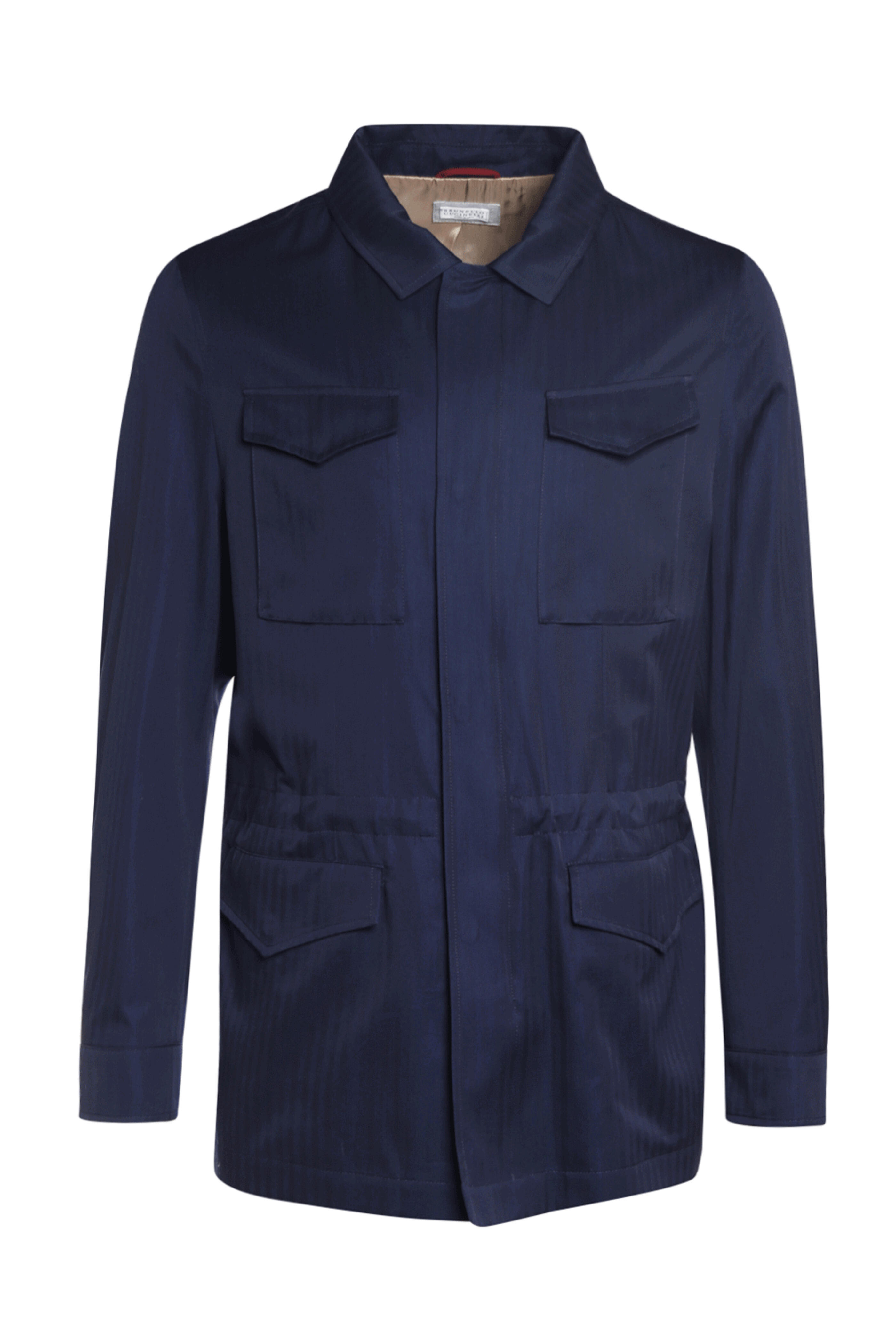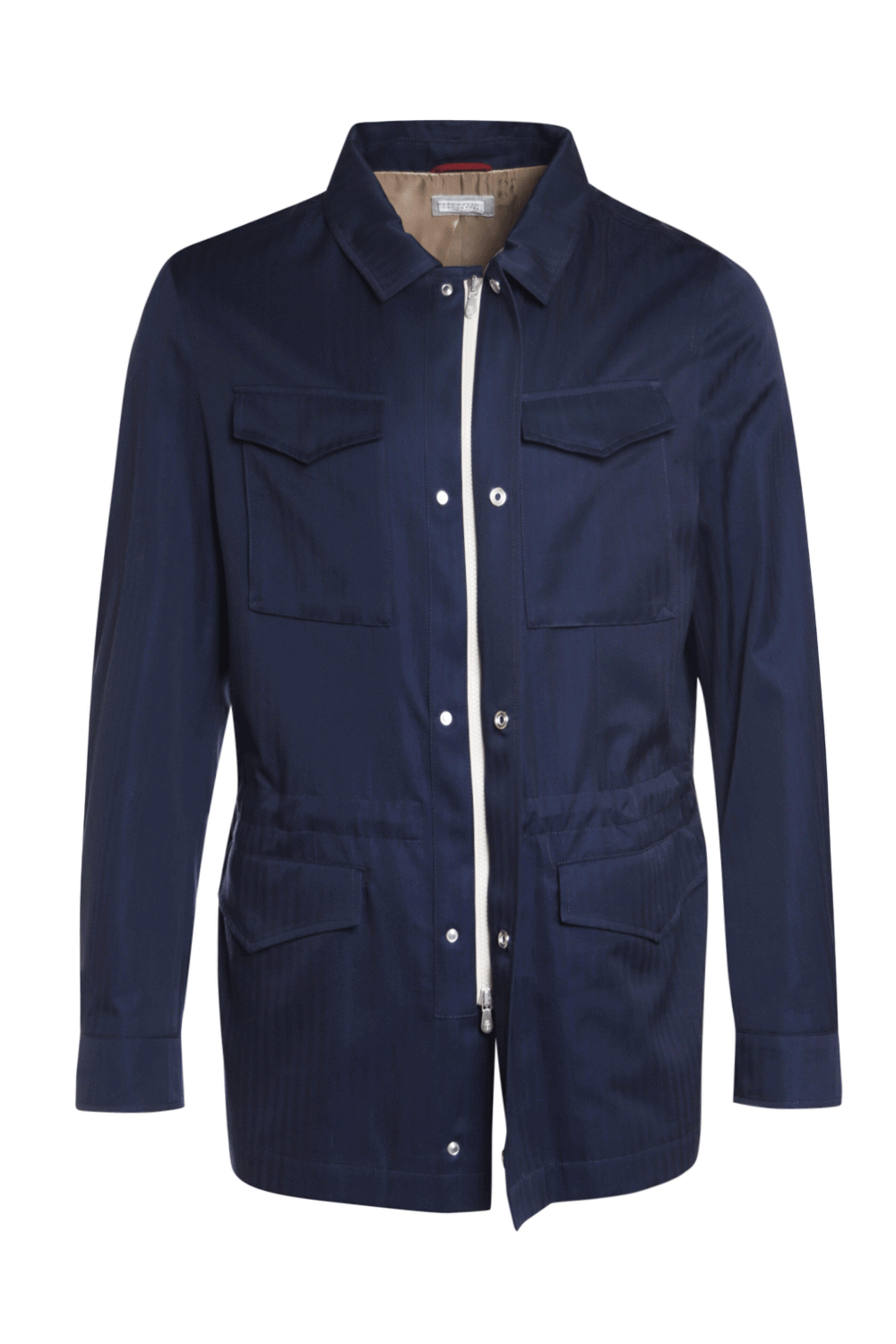 - Brunello Cuccinelli Navy Tonal Striped Cotton Work Jacket