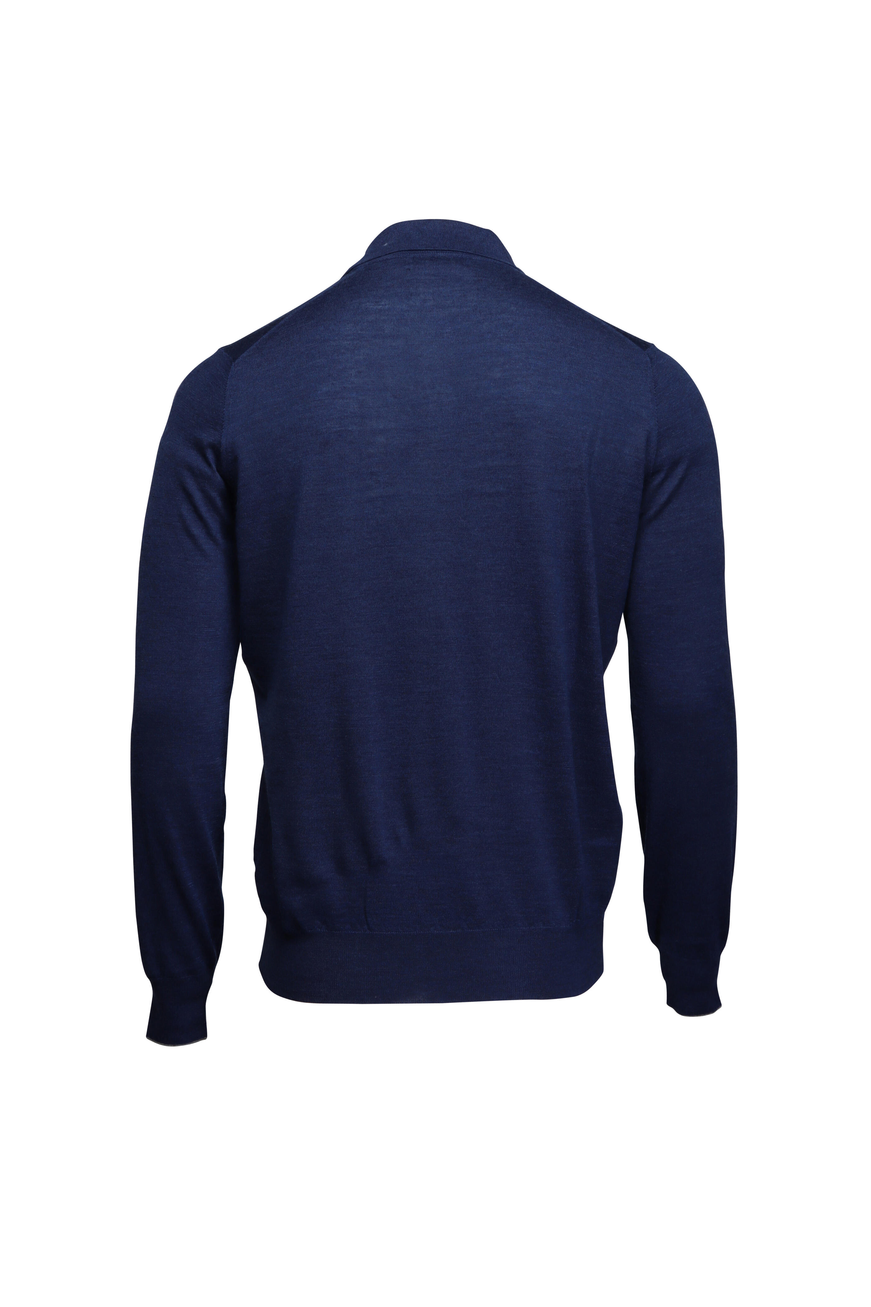 Spread collar. Three button placket. Ribbed trim. Made in Italy. 42% cashmere, 36% silk, 22% linen. Hand wash.