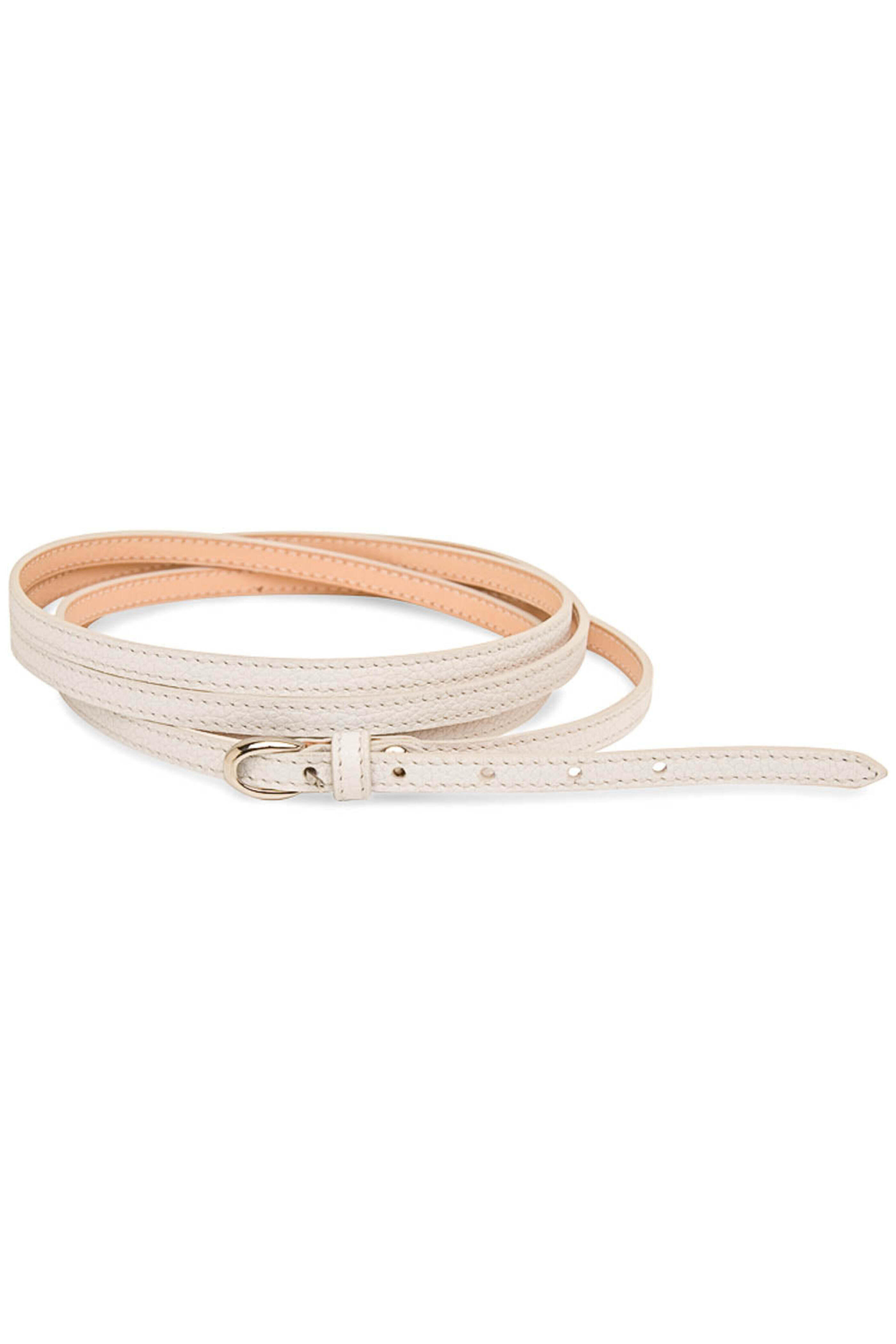 - Maison Vaincourt Blanc Grainy Leather Cuir De Vachette Belt Double wrap style Buckle closure Five hole adjustable style Silver tone hardware 1 cm thickness 100% leather