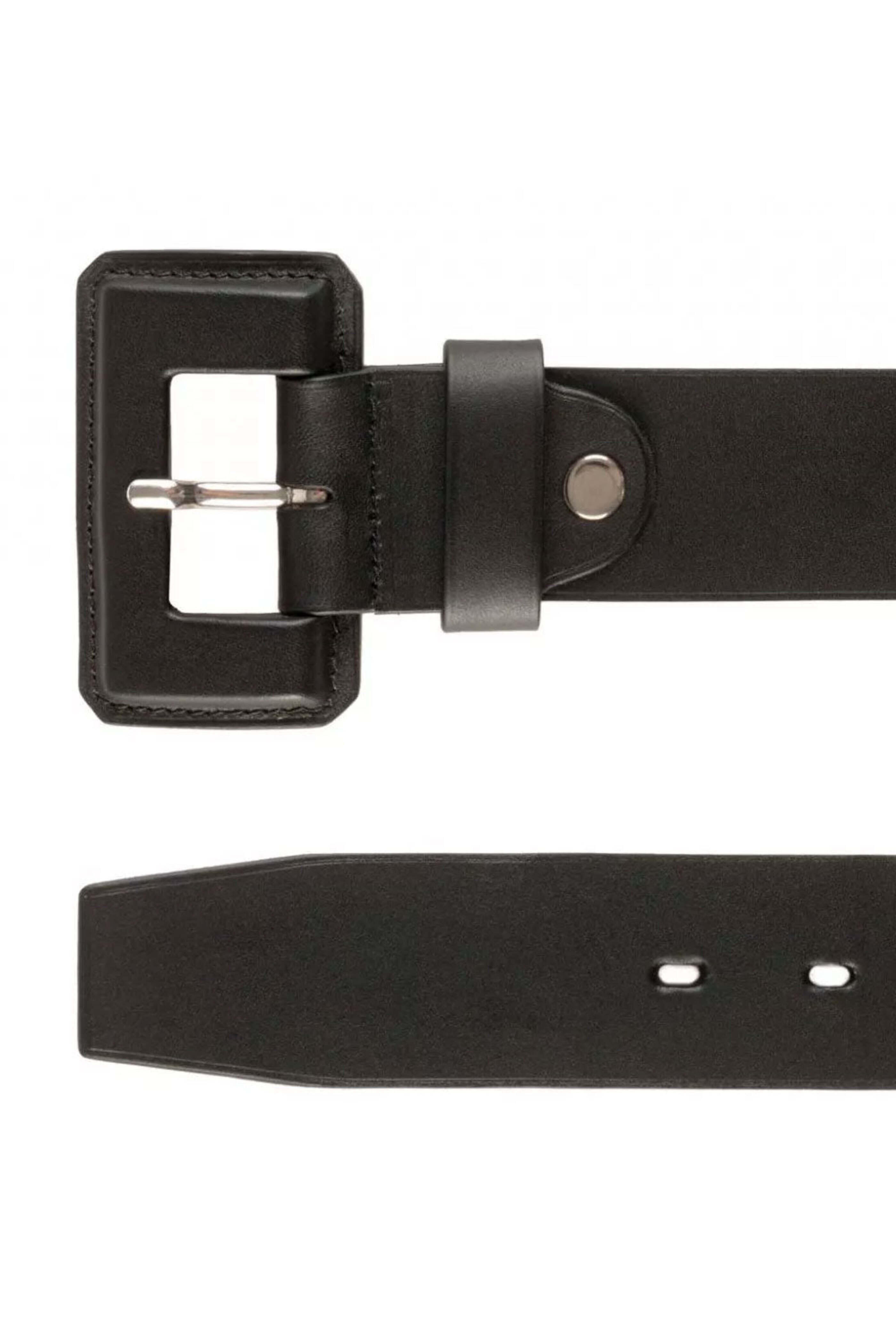 Maison Vaincourt La Petite Merveilleuse Belt in Black. Square tip. Leather-covered brass buckle. Adjustable. Waist belt. Leather outer. Lining features vegetable tanning methods. 40mm wide. Made in France.