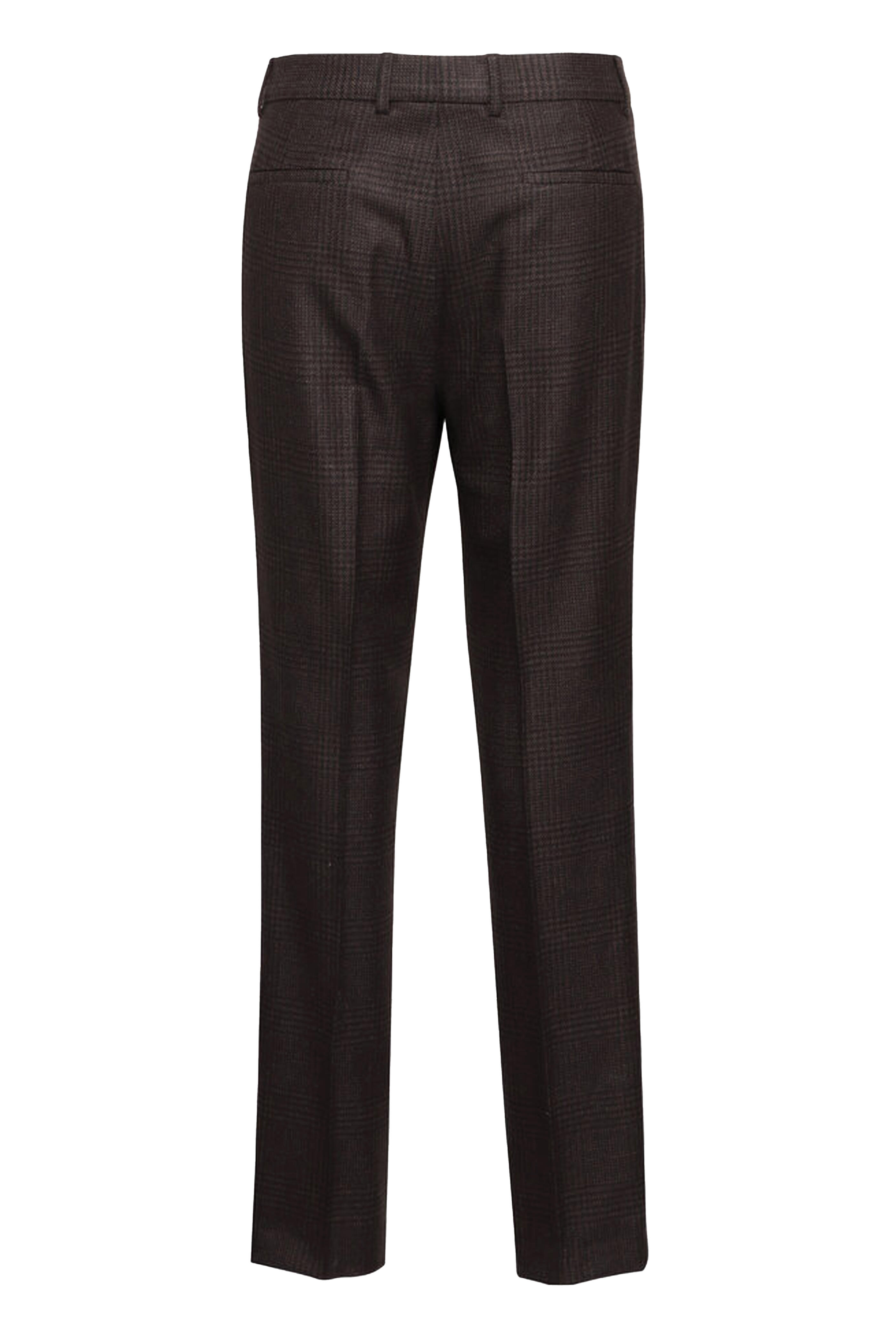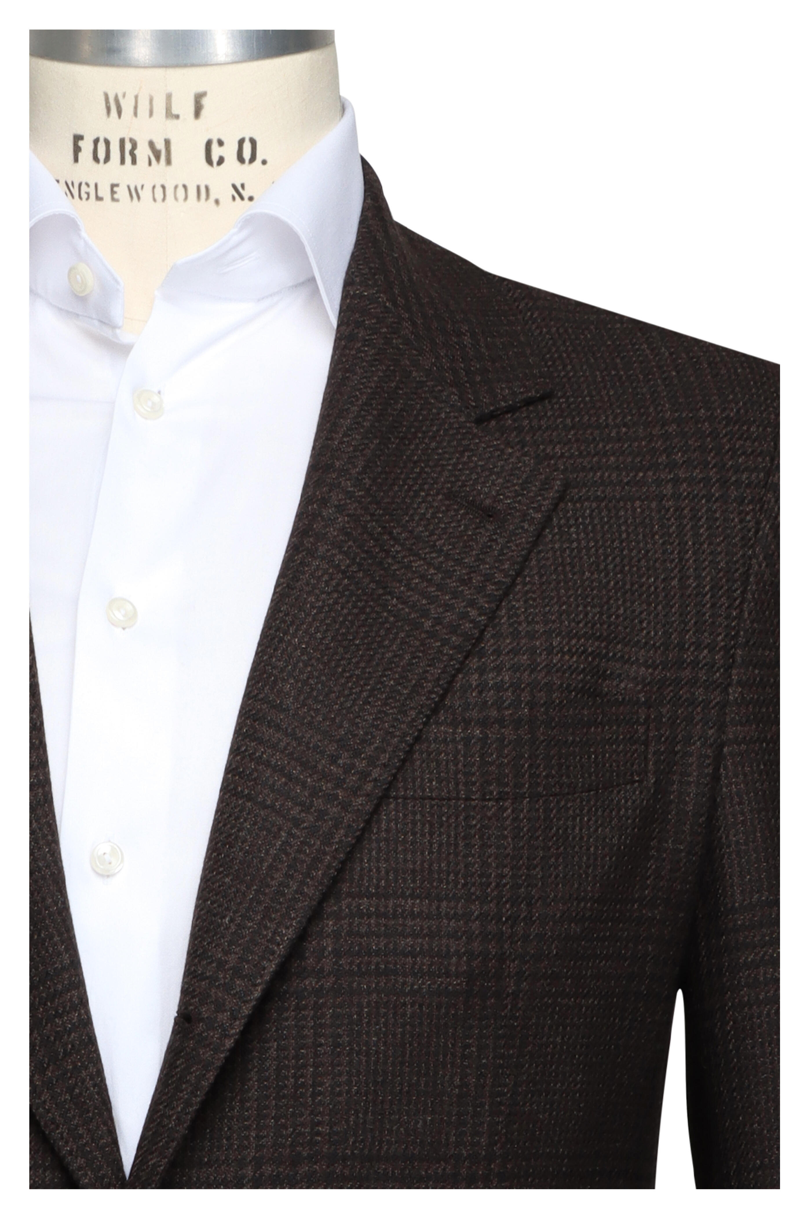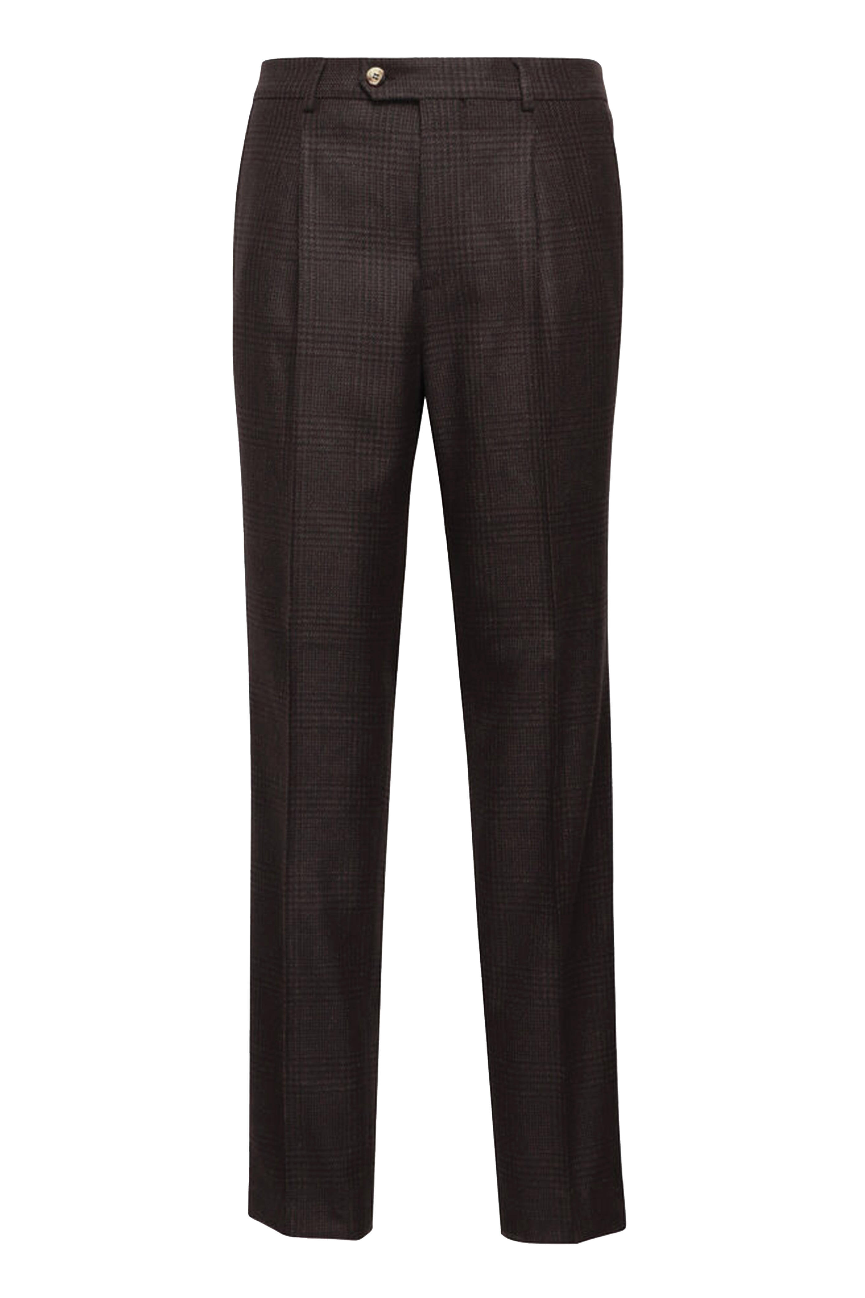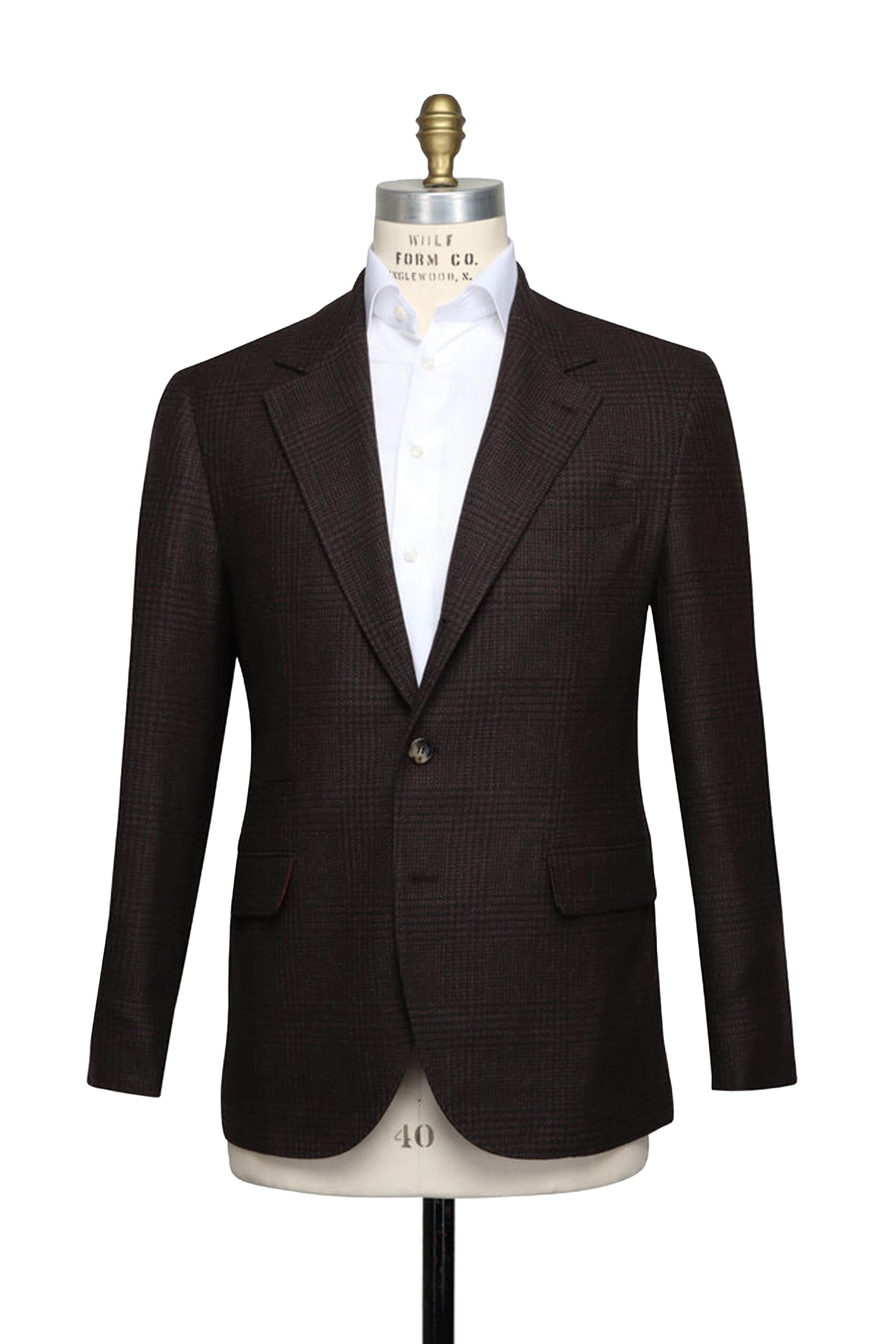 Made in Italy. Jacket: Notch lapels. Double button closure. Chest welt pocket; Lower waist flap pockets. Unfinished buttonholes. Double back vents. Pants: Banded waist; belt loops. Zip fly; extended button tab. Front slip pockets; coin pocket; back welt pockets. Unfinished hem. 95% wool, 3% cashmere, 2% silk; fully lined. Dry clean.