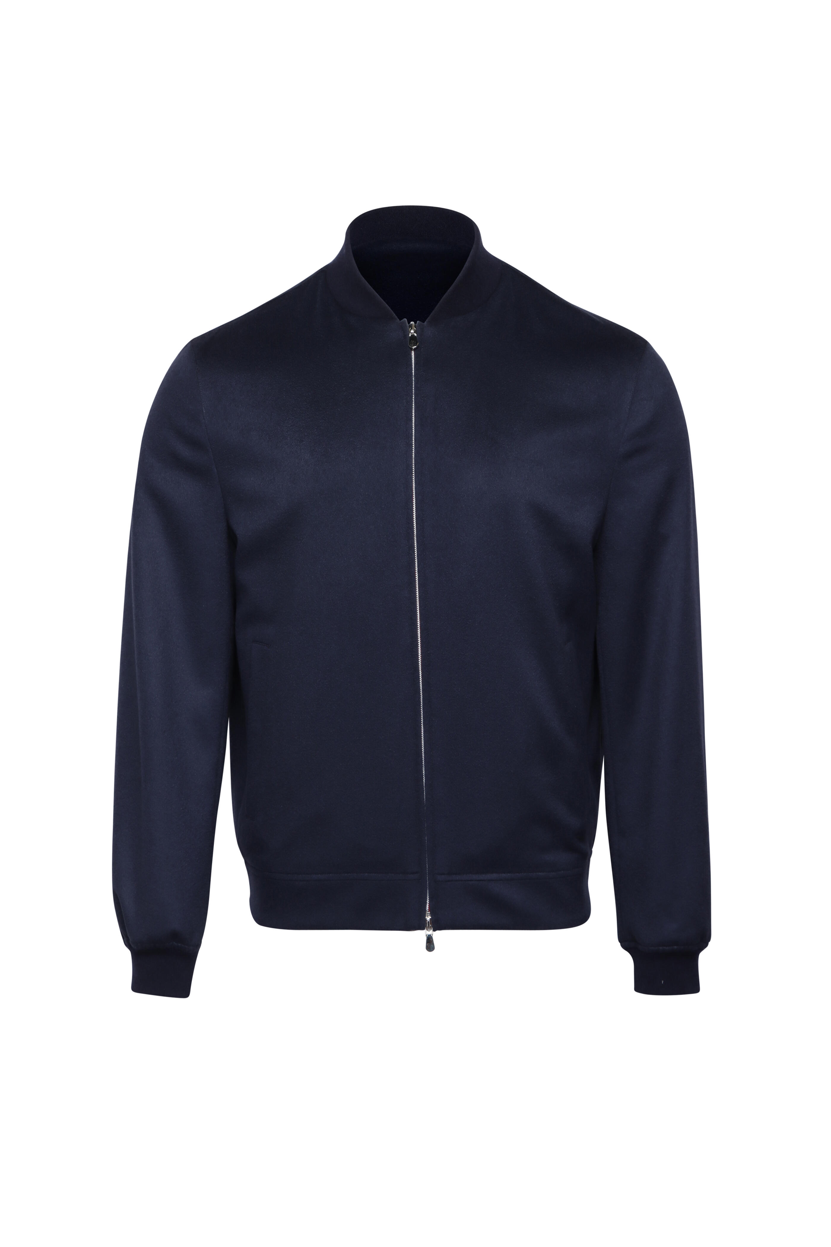 Rib knit collar. Two-way zip closure. Lower hand pockets. Ribbed cuffs and hem. Made in Italy. 100% cashmere. Dry clean.