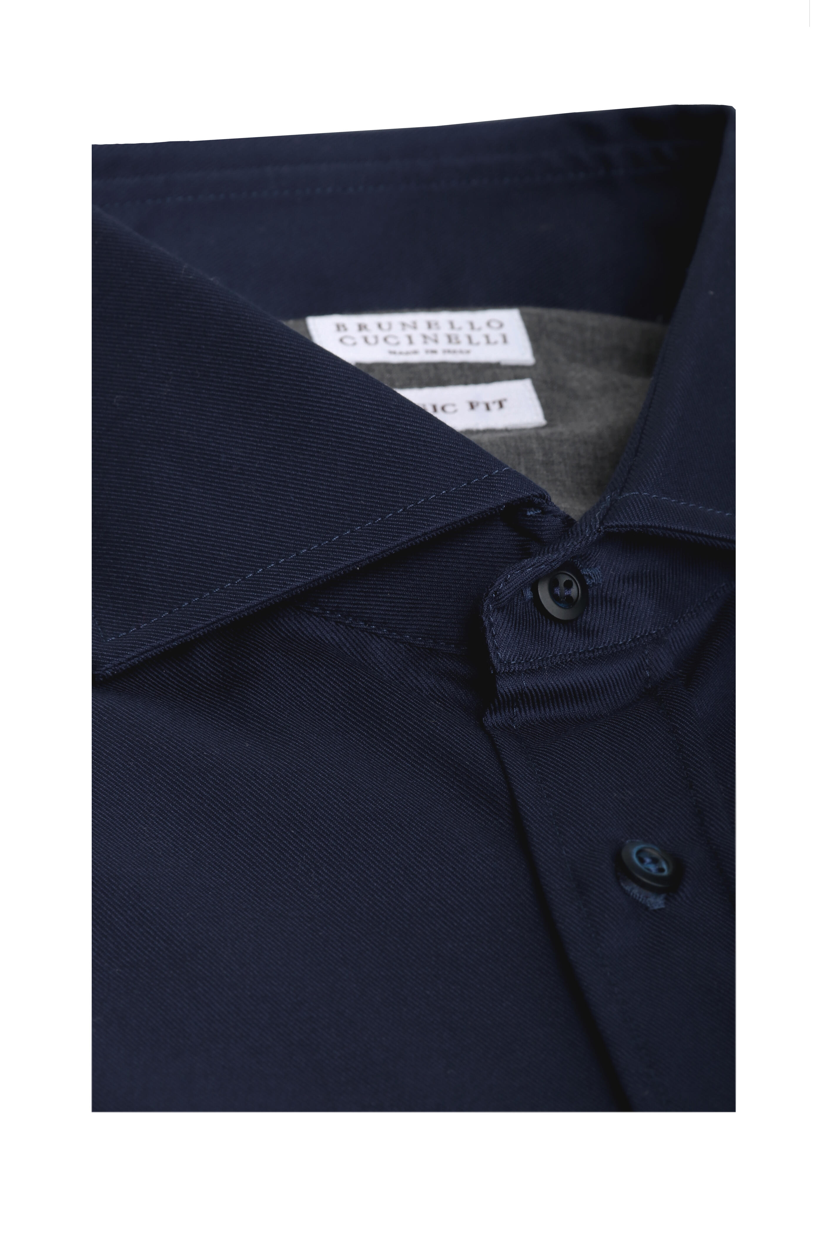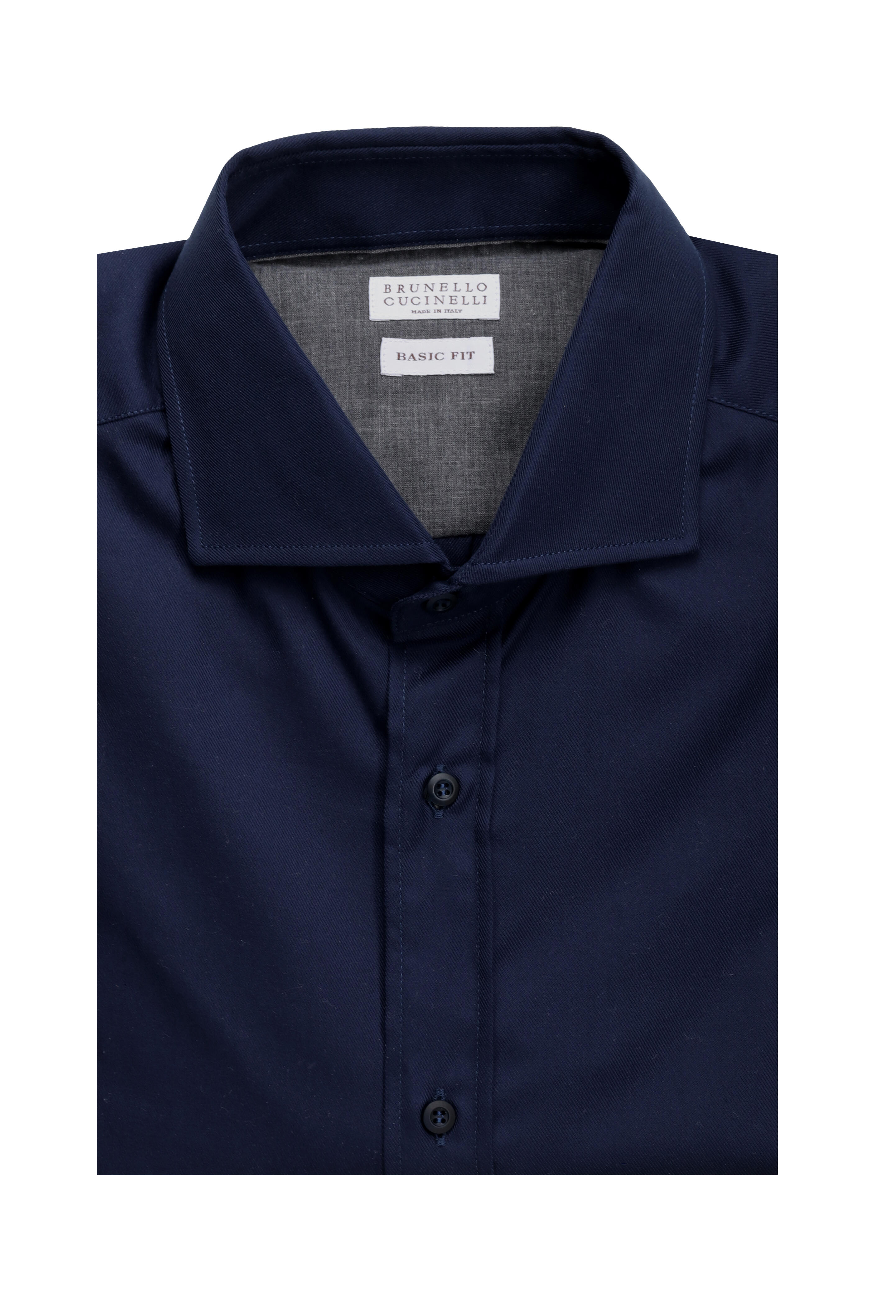 Spread collar. French front button placket. Single button barrel cuffs. Made in Italy. Basic Fit. 100% cotton. Dry clean.