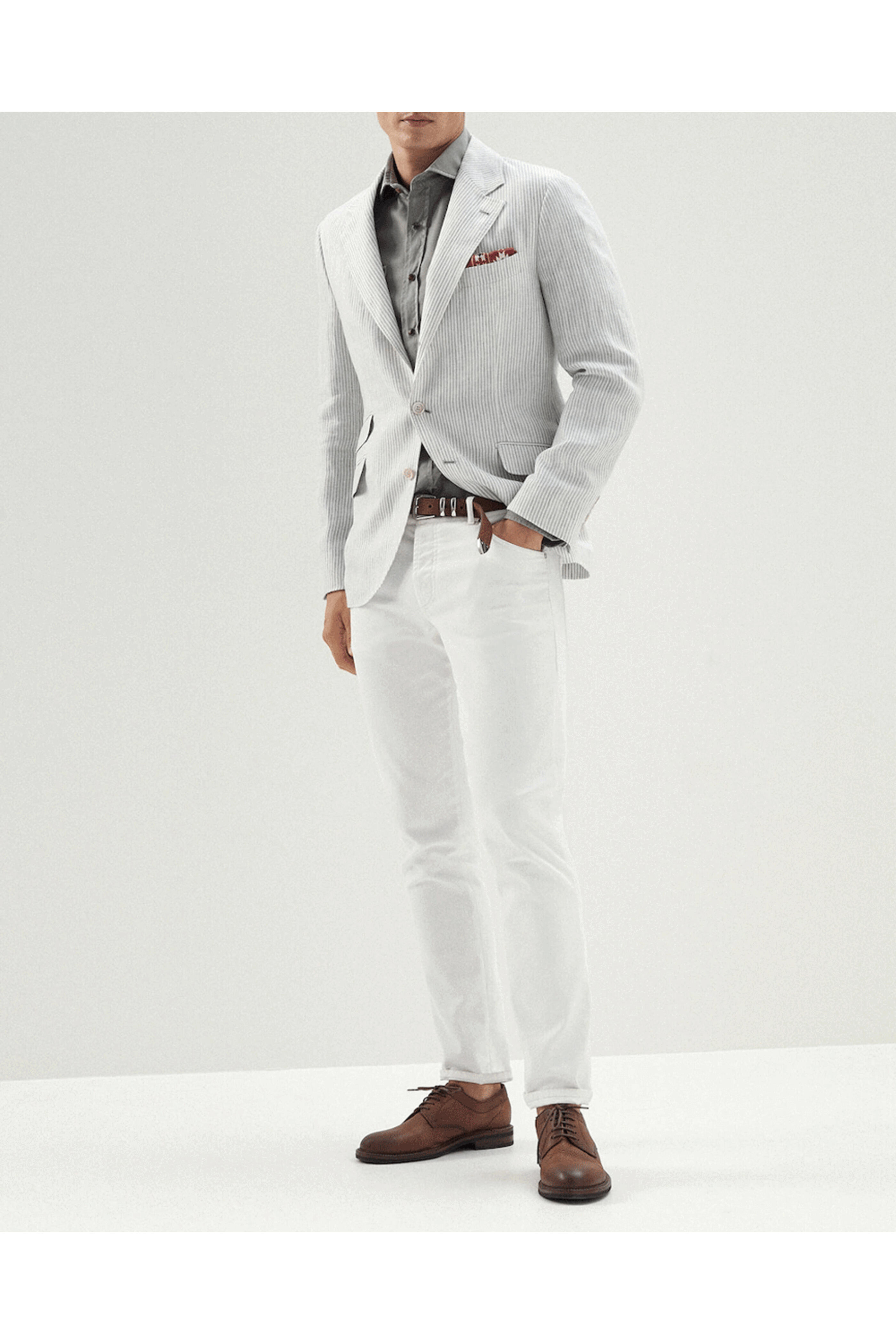 Brunello Cuccinelli Sage Green Western Snap Sportshirt. Spread collar. Button down front. Snap button closure. Two upper chest flap pockets with snap button closure. Western style yoke. Double button mitered cuffs. Tonal stitching. Curved hem. Easy fit. Made in Italy. 100% cotton.