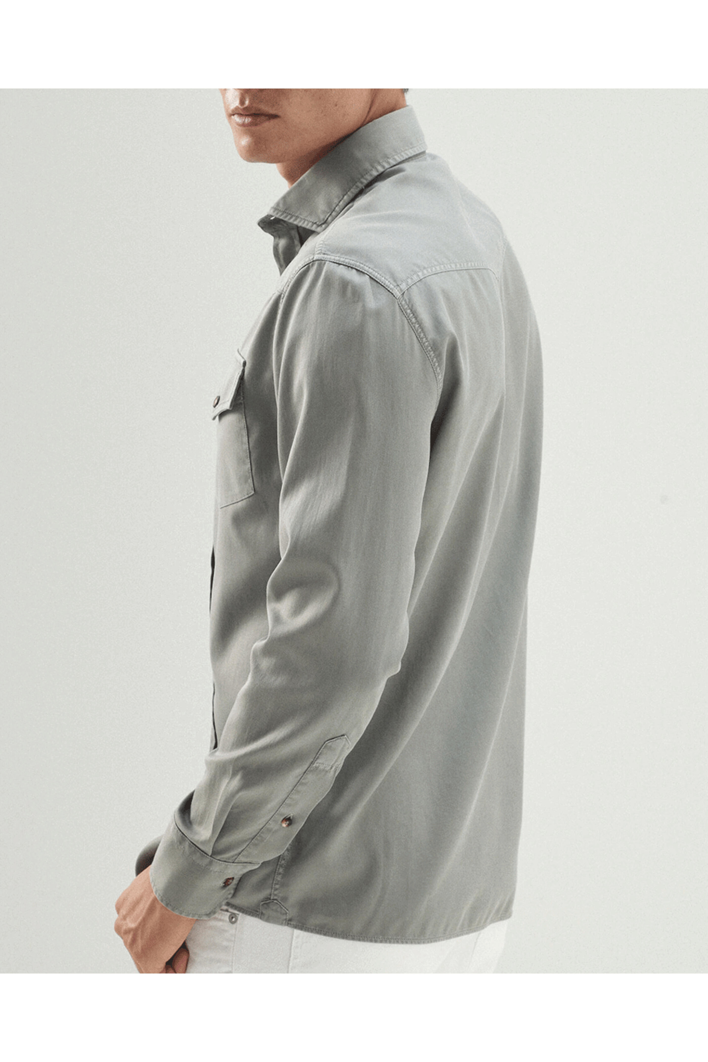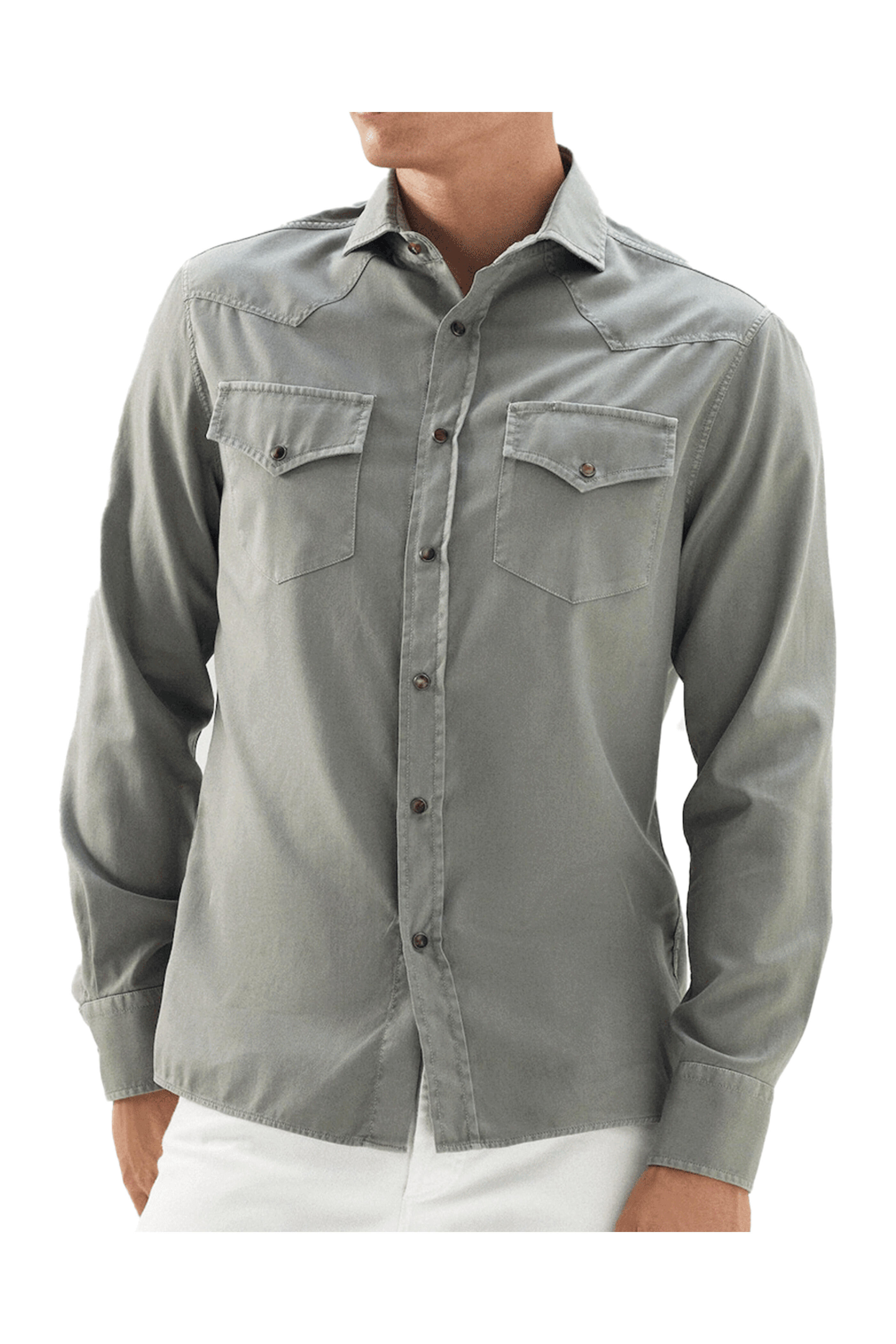 - Brunello Cuccinelli Sage Green Western Snap Sportshirt