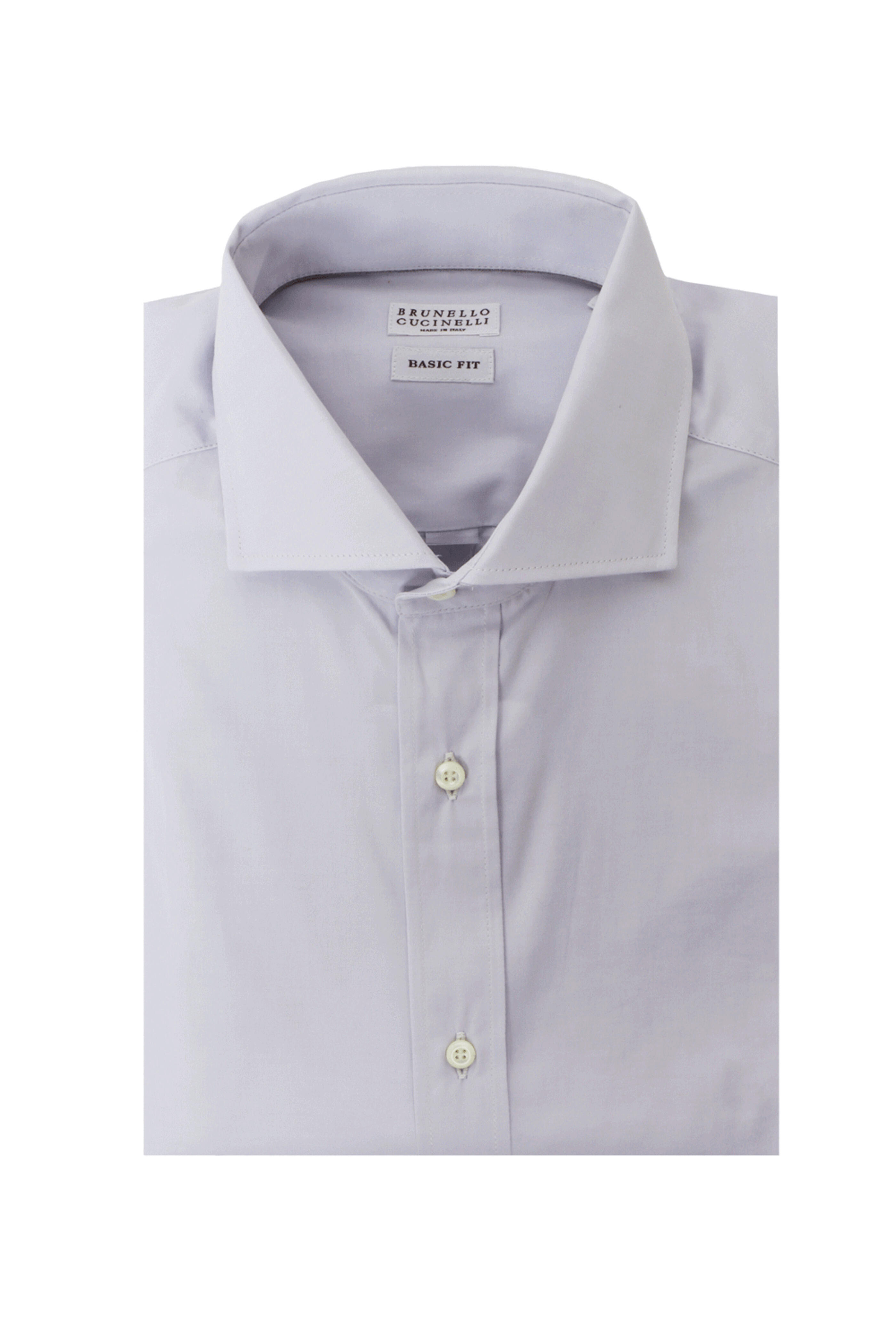 Brunello Cucinelli Lilac Sportshirt. Spread collar. Button down front closure. Long sleeves. Barrel mitered cuffs. Basic fit. Made in Italy . 100% cotton.