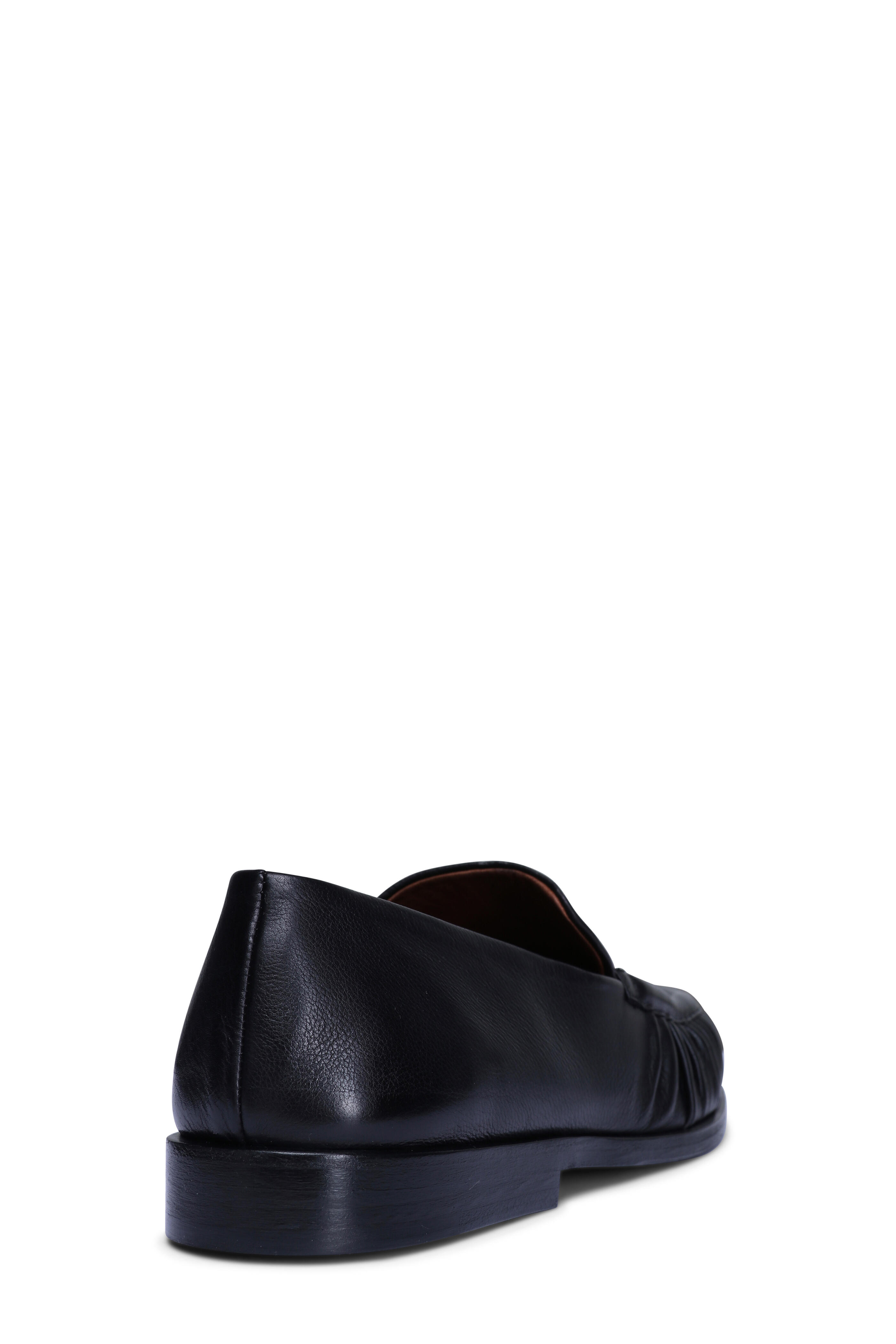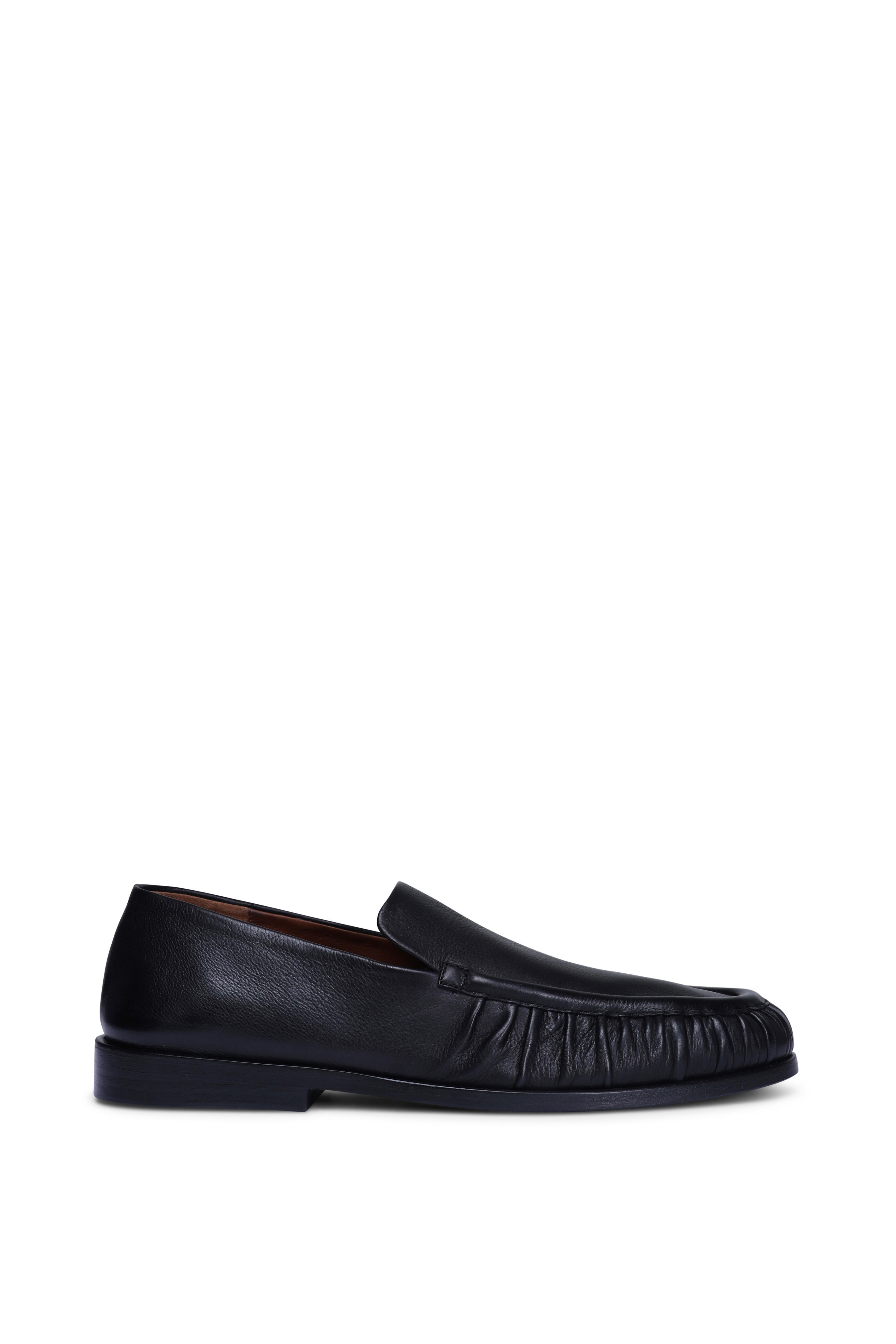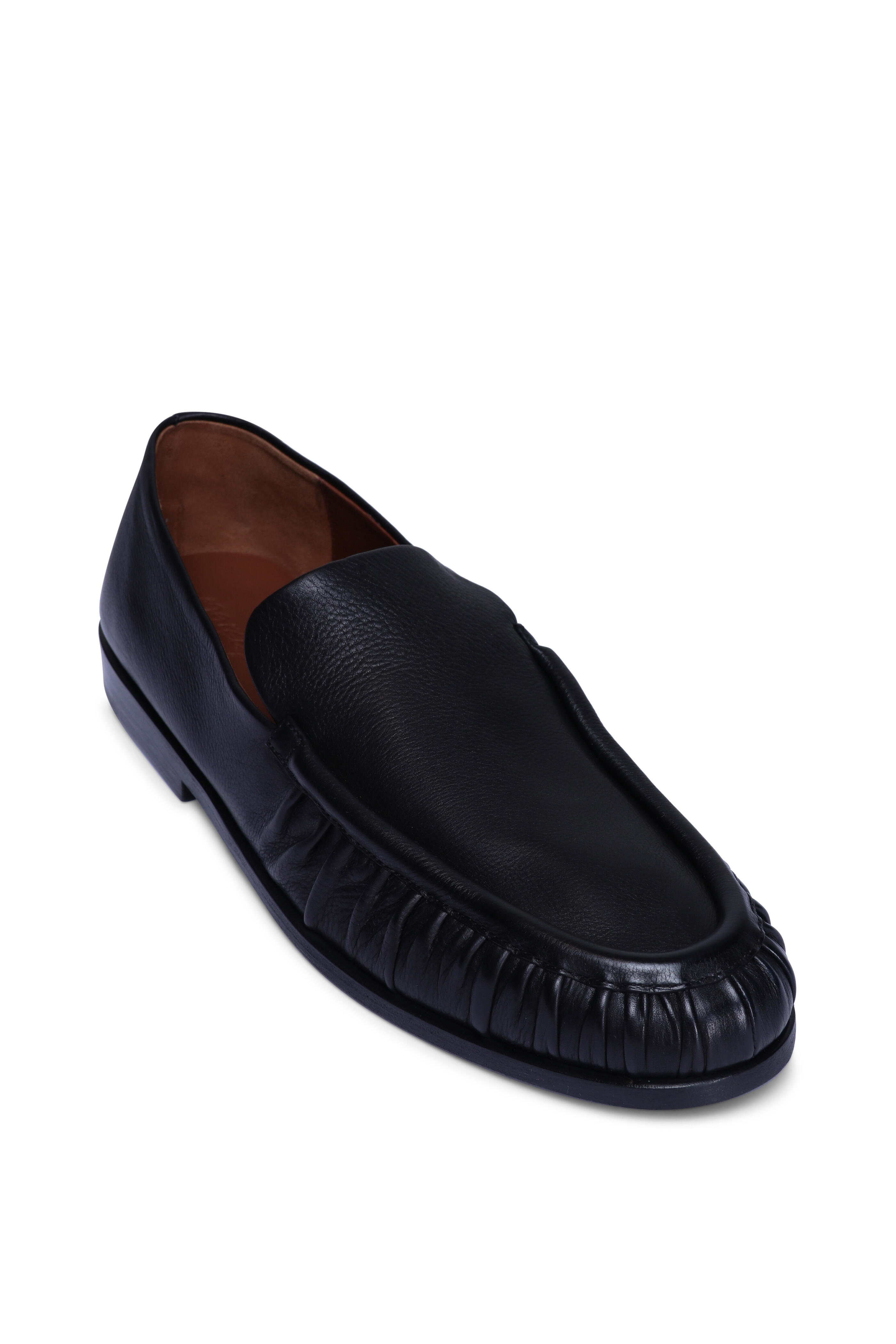 Smooth leather upper. Leather lining and sole. Round closed toe. Slip-on style. Tonal stitching. Low heel. Made in Italy.